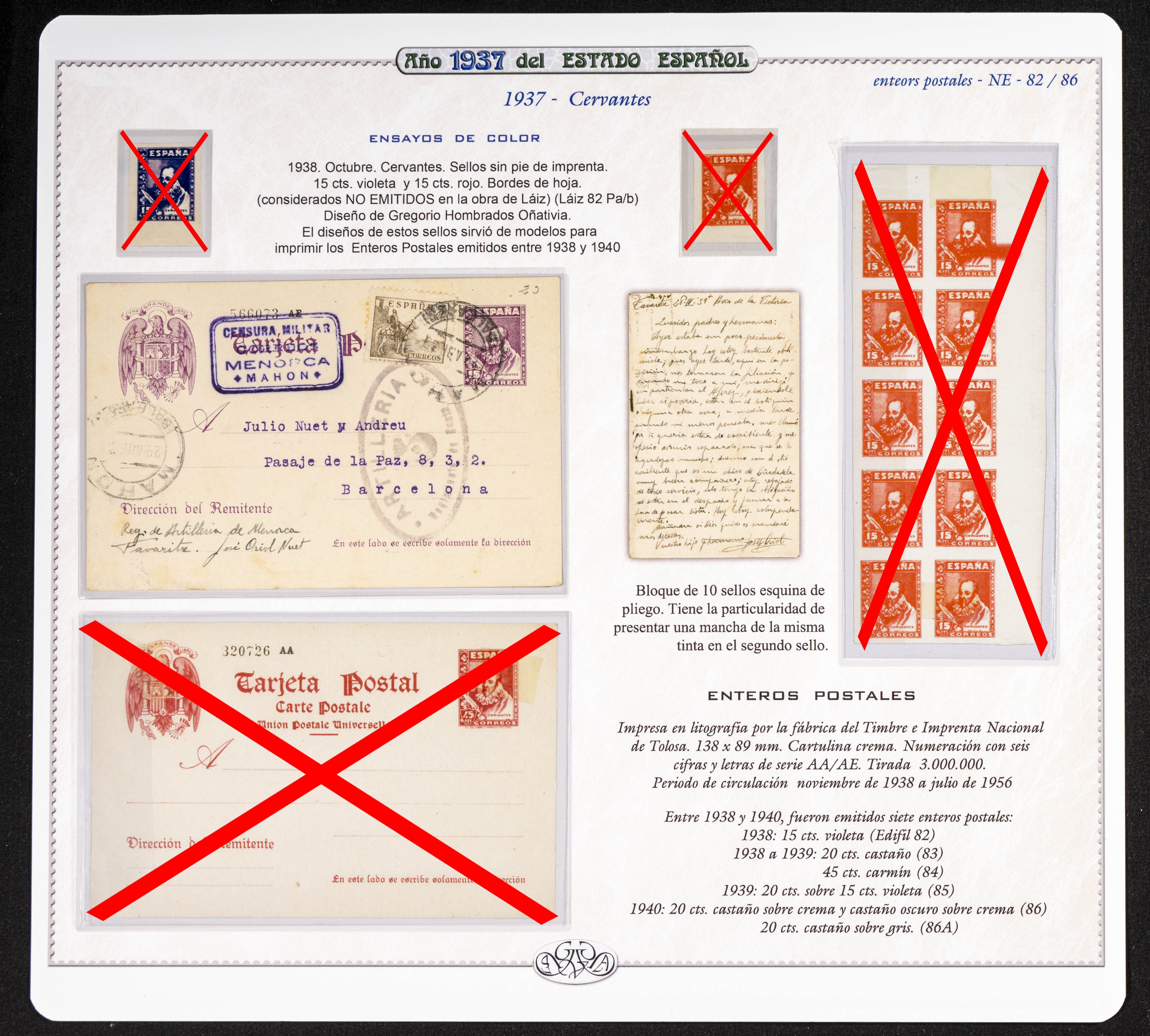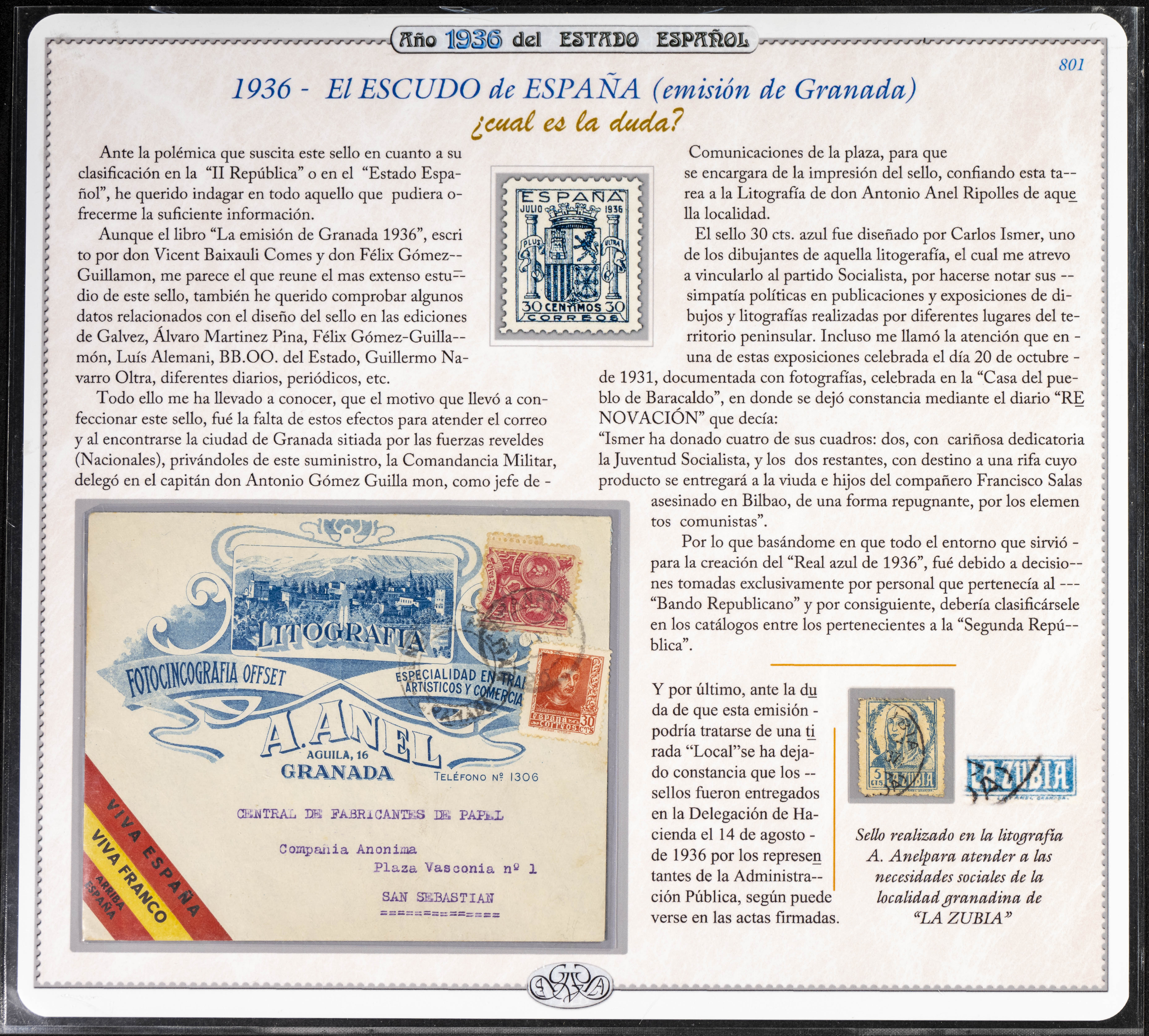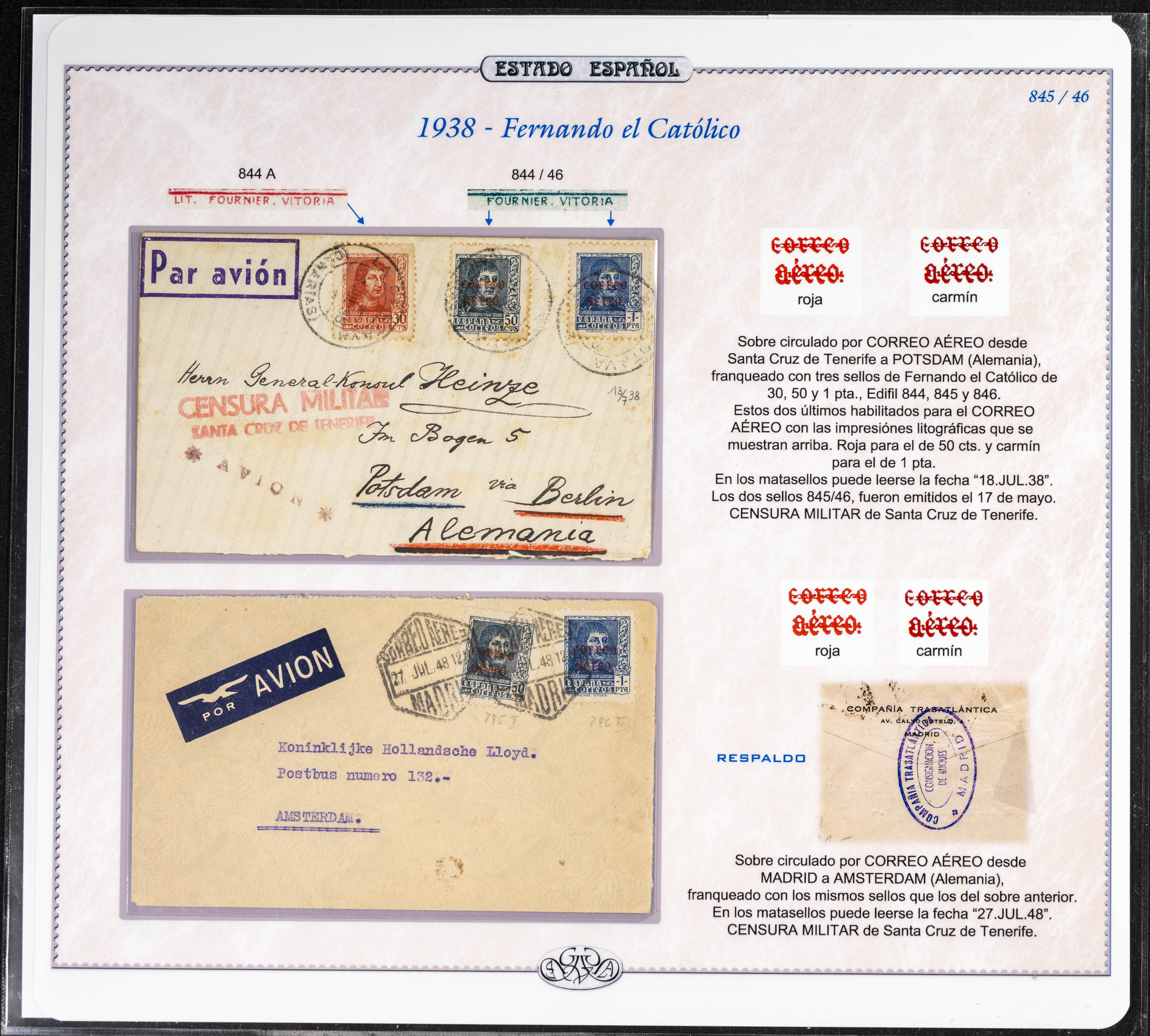 ★/(1936ca). Interesantísimo resto de colección del Estado Español entre 1936 y 1953, en nuevo y con numerosas series completas, variedades, hojas bloque y más de setenta cartas circuladas y Sobres de Primer Día (hemos señalado con aspas en rojo los sellos o cartas que no están en la colección para evitar confusiones). ALTISIMO VALOR DE CATALOGO. IMPRESCINDIBLE EXAMINAR.