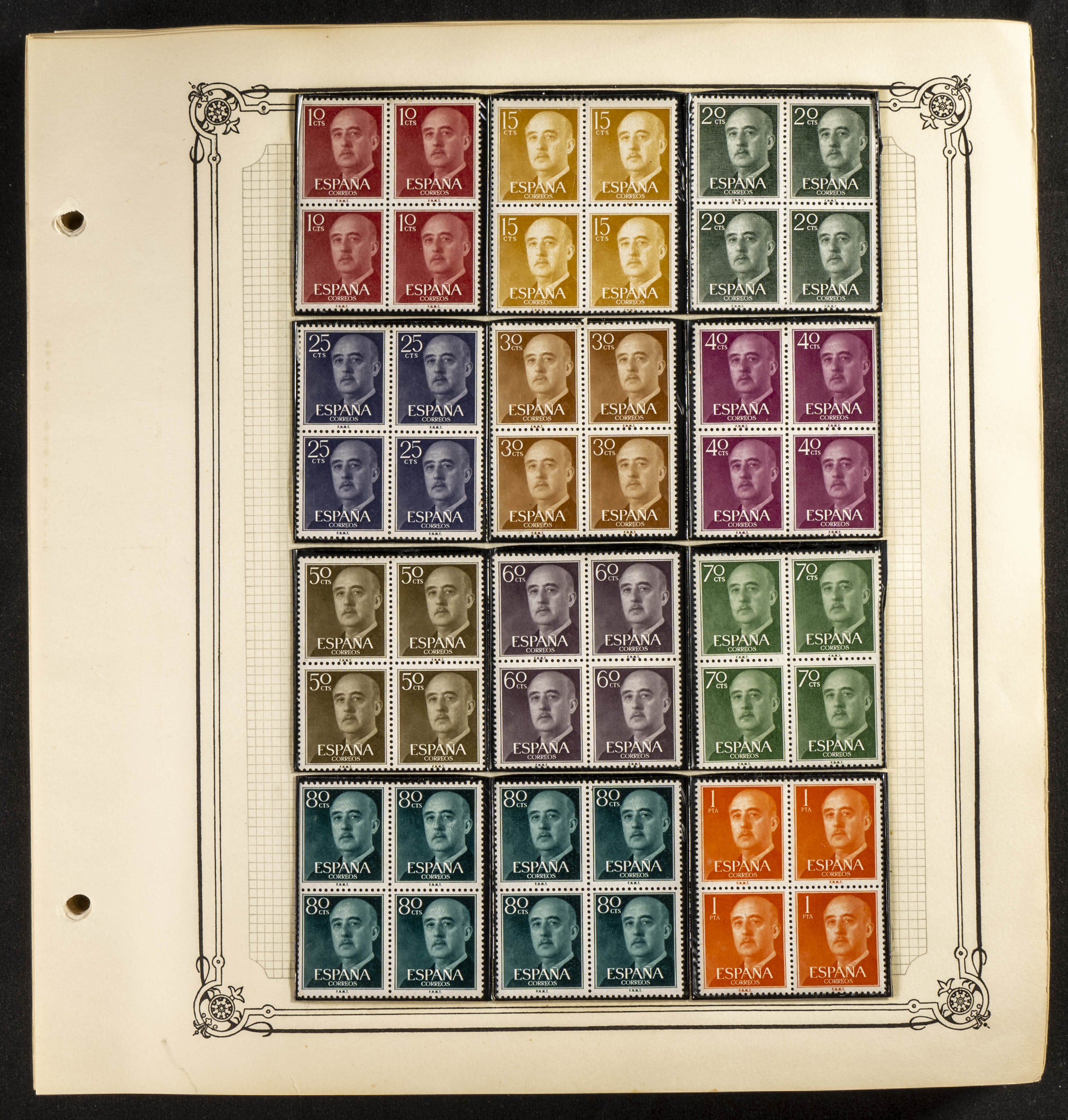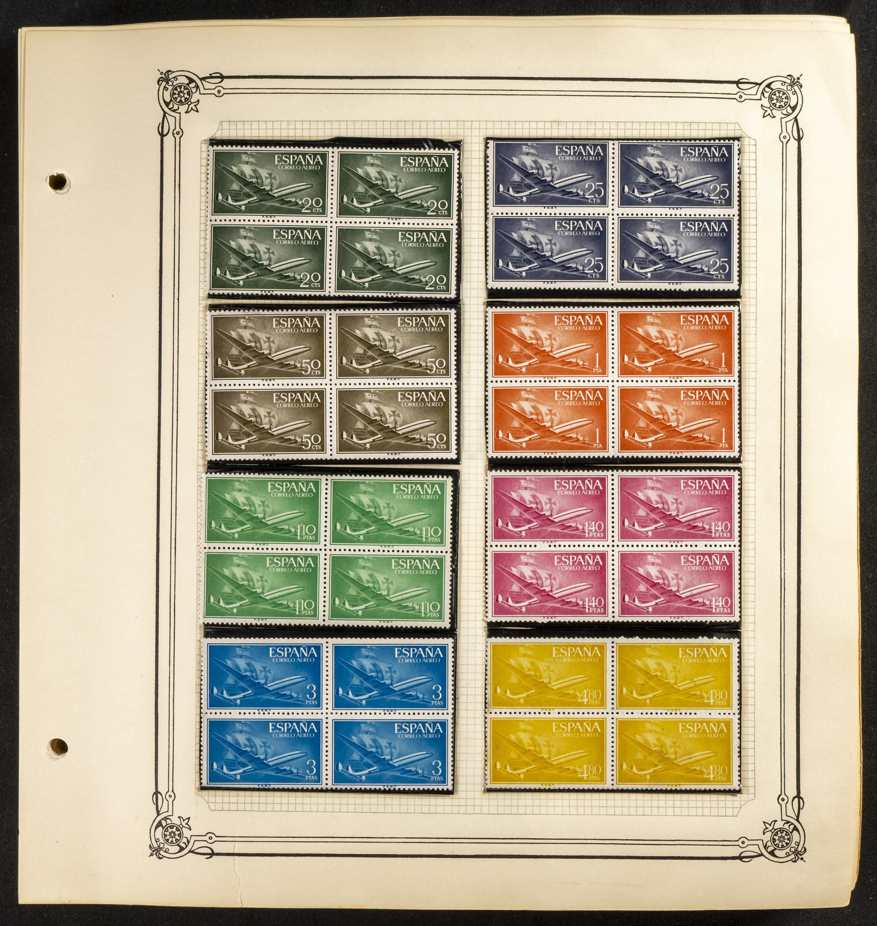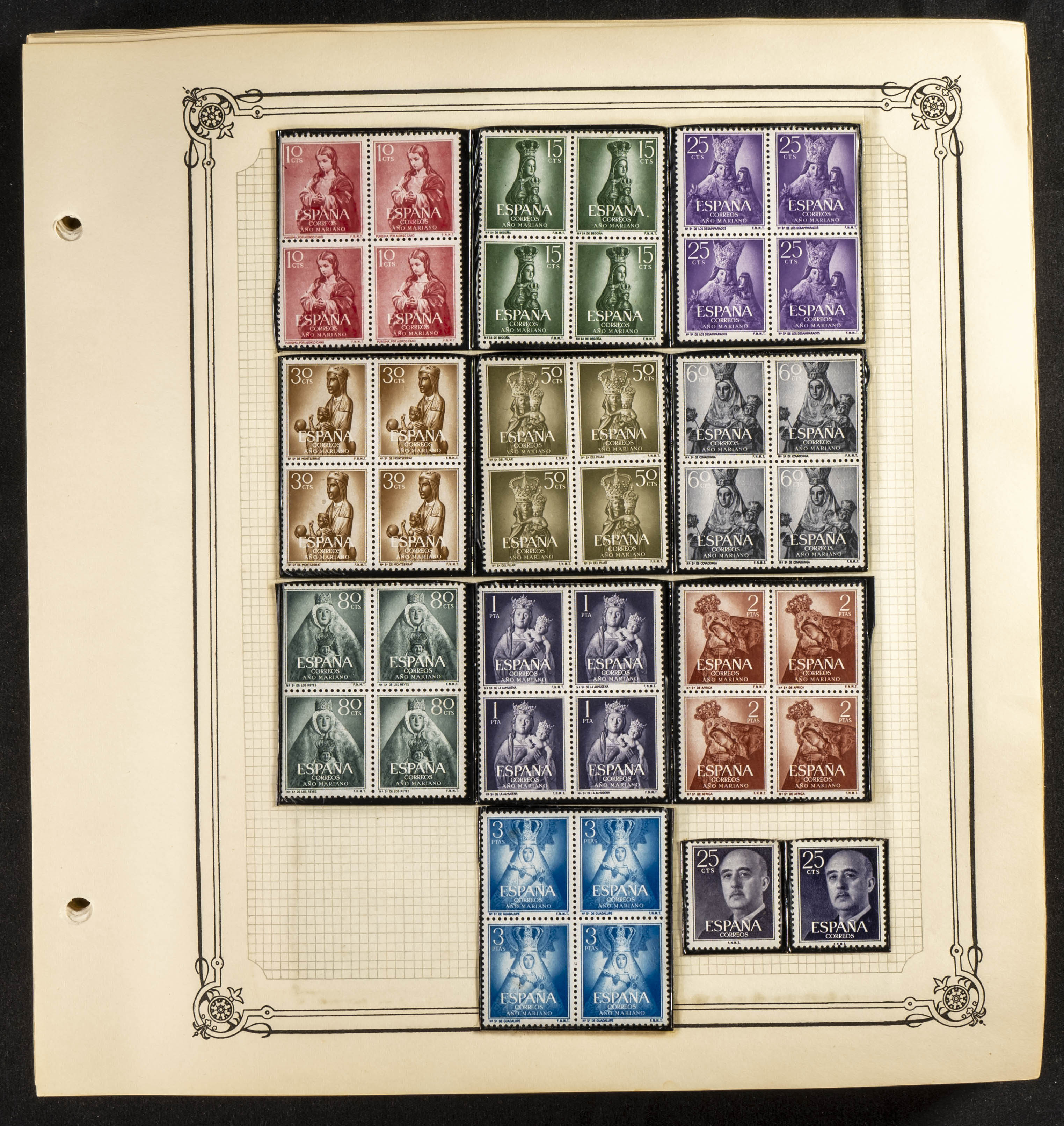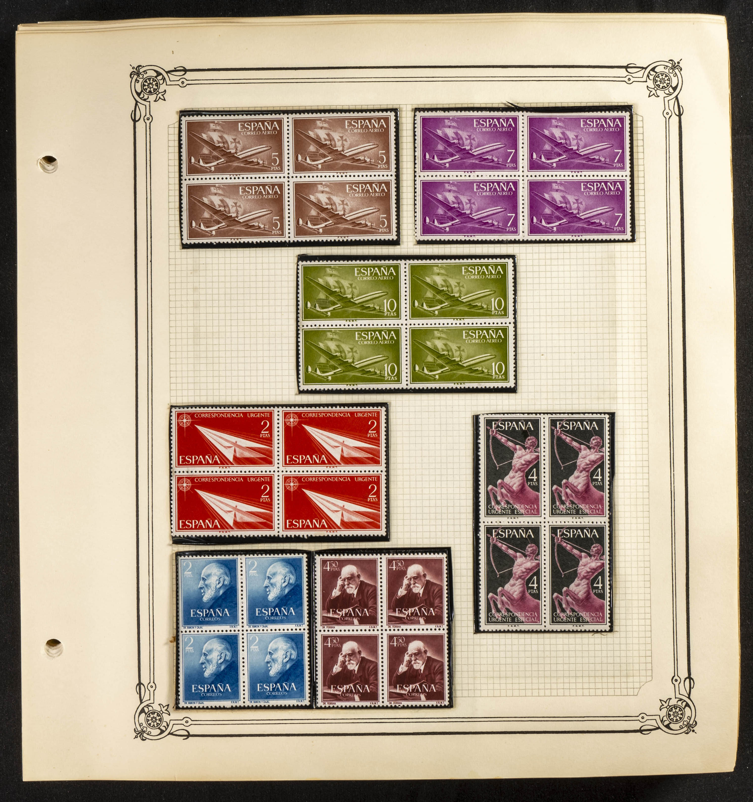 ★★/★(1951ca). Conjunto de series completas (algunos sellos sueltos) del 2º Centenario en bloques de cuatro entre 1951 y 1998, en nuevo y la mayoría sin fijasellos y buena calidad a pesar de estar la parte inicial montada con estuches Togall (hemos comprobado algunas series y no se aprecian manchas de los estuches). ALTO VALOR DE CATALOGO. A EXAMINAR.
