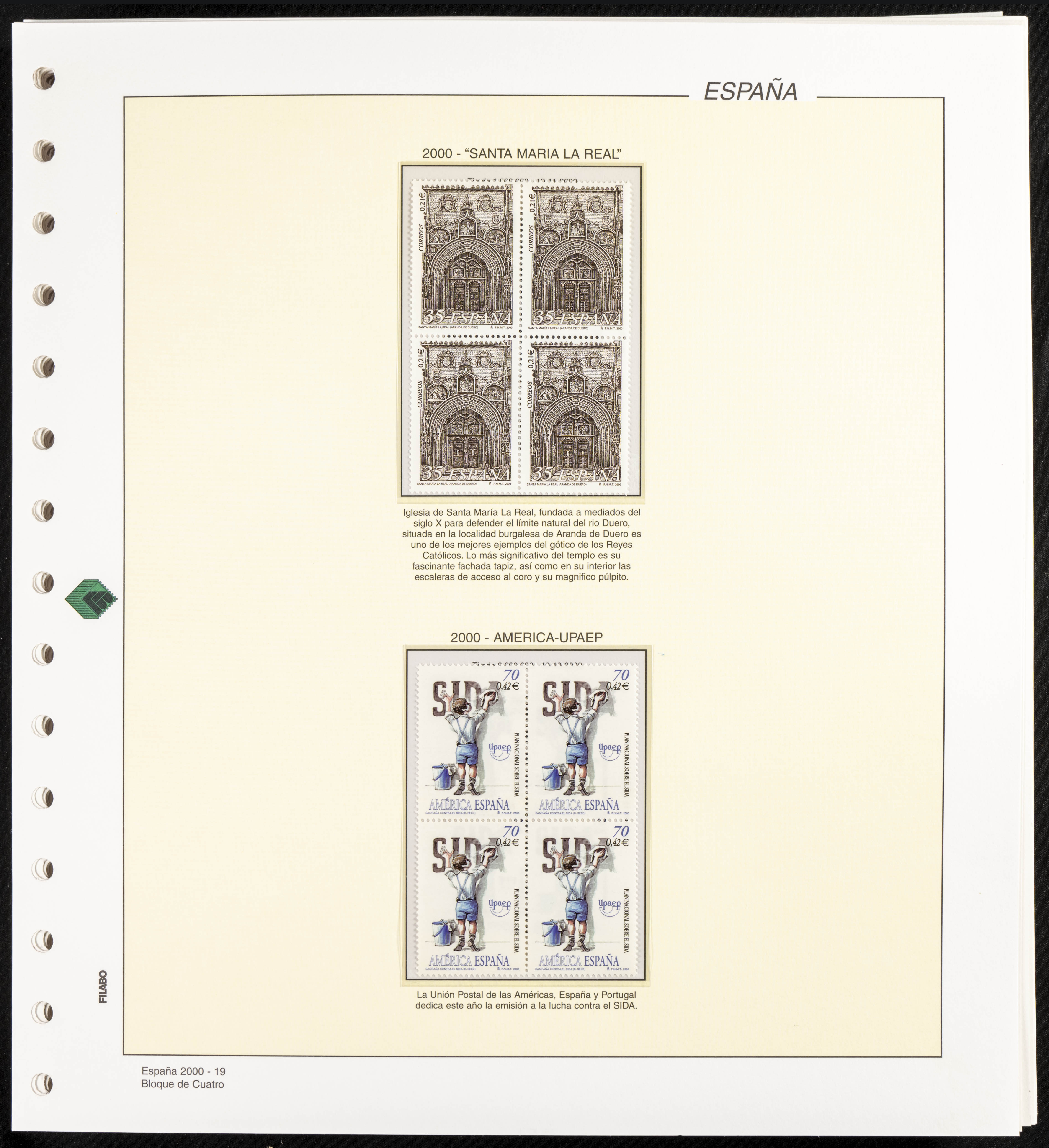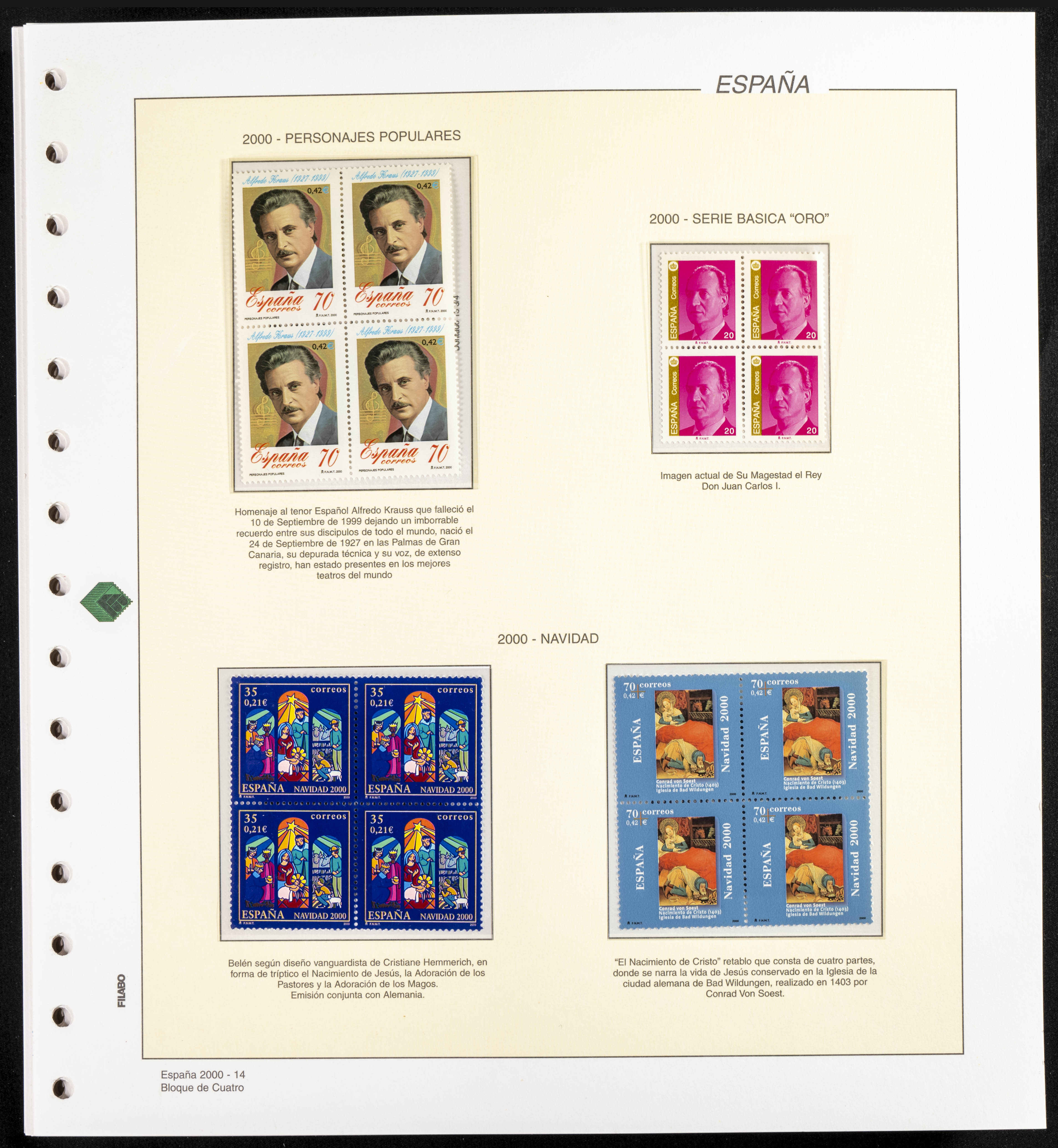 ★★(2000ca). Colección prácticamente completa entre 2000 y 2024, en bloque de cuatro incluyendo cuatro hojas bloque y carnets, el año 2018 parte en bloque de cuatro y desde la mitad del año hasta 2024 un sello de cada (montado en álbumes). (Facial: +6750 Euros). A EXAMINAR.