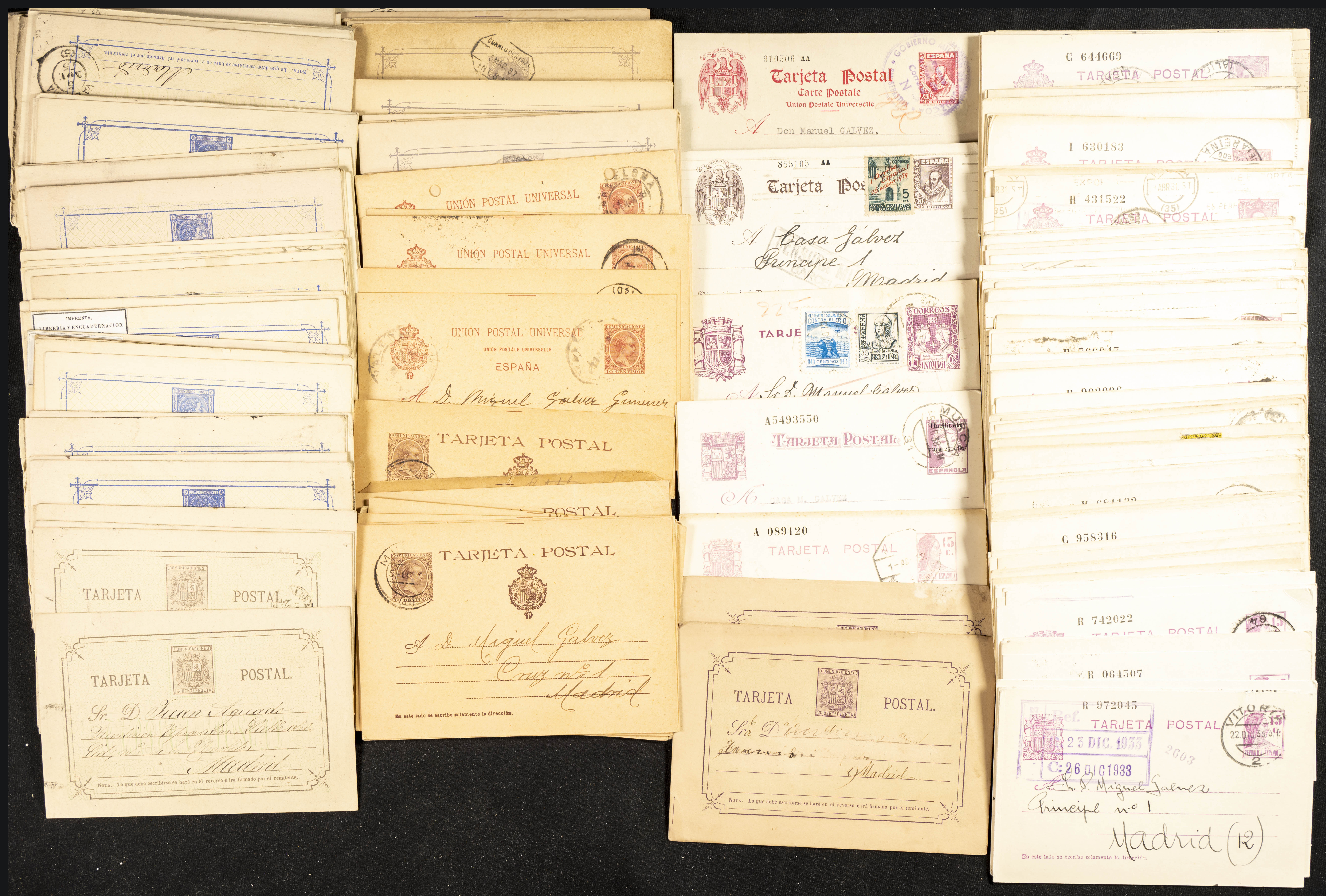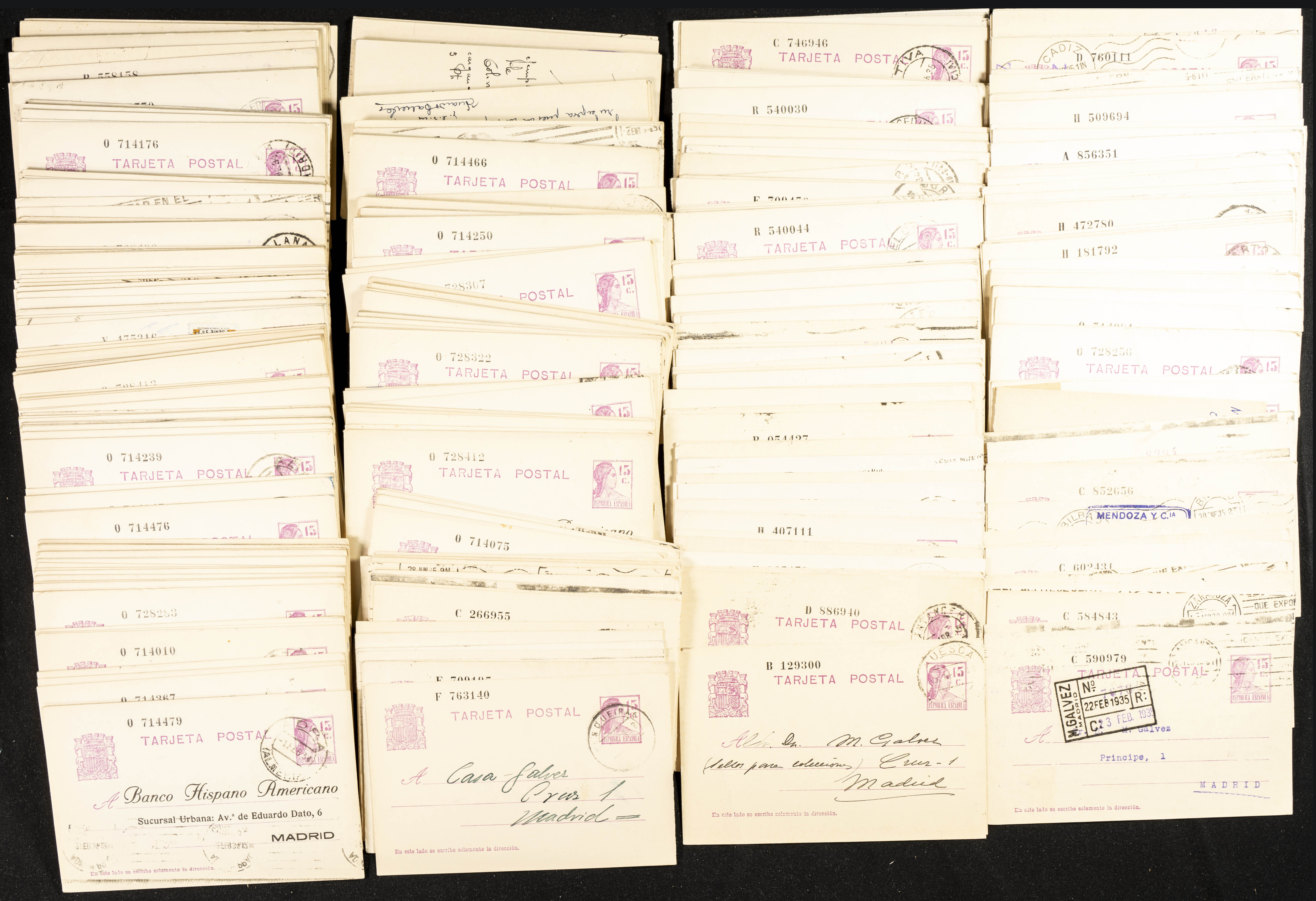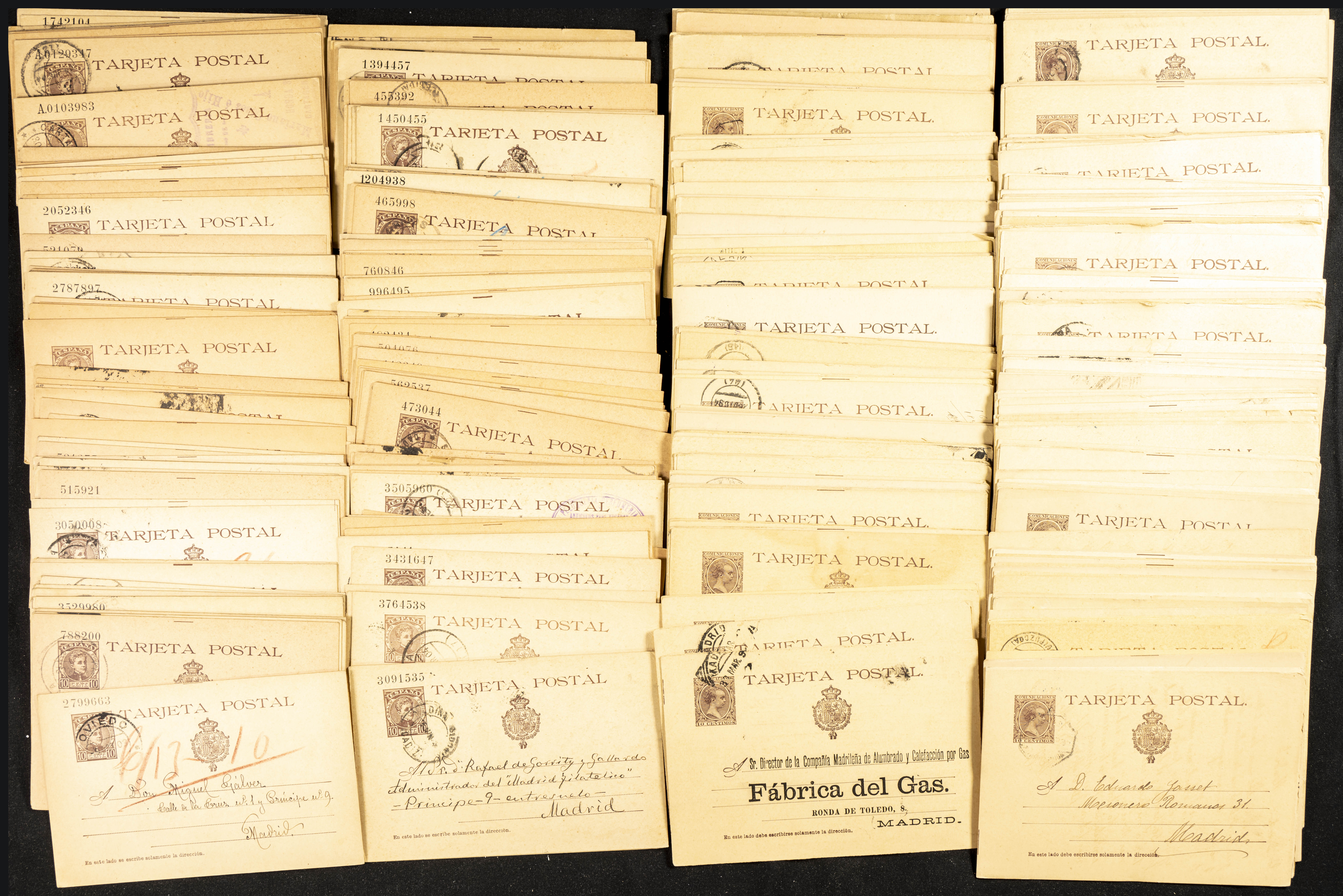 (1873ca). Espectacular e interesantísimo conjunto de cientos de Tarjetas Entero Postales circuladas entre 1873 y 1939, la mayoría del siglo XIX y II República, incluye alguna variedad y franqueos complementarios. ALTISIMO VALOR DE CATALOGO. IMPRESCINDIBLE EXAMINAR.