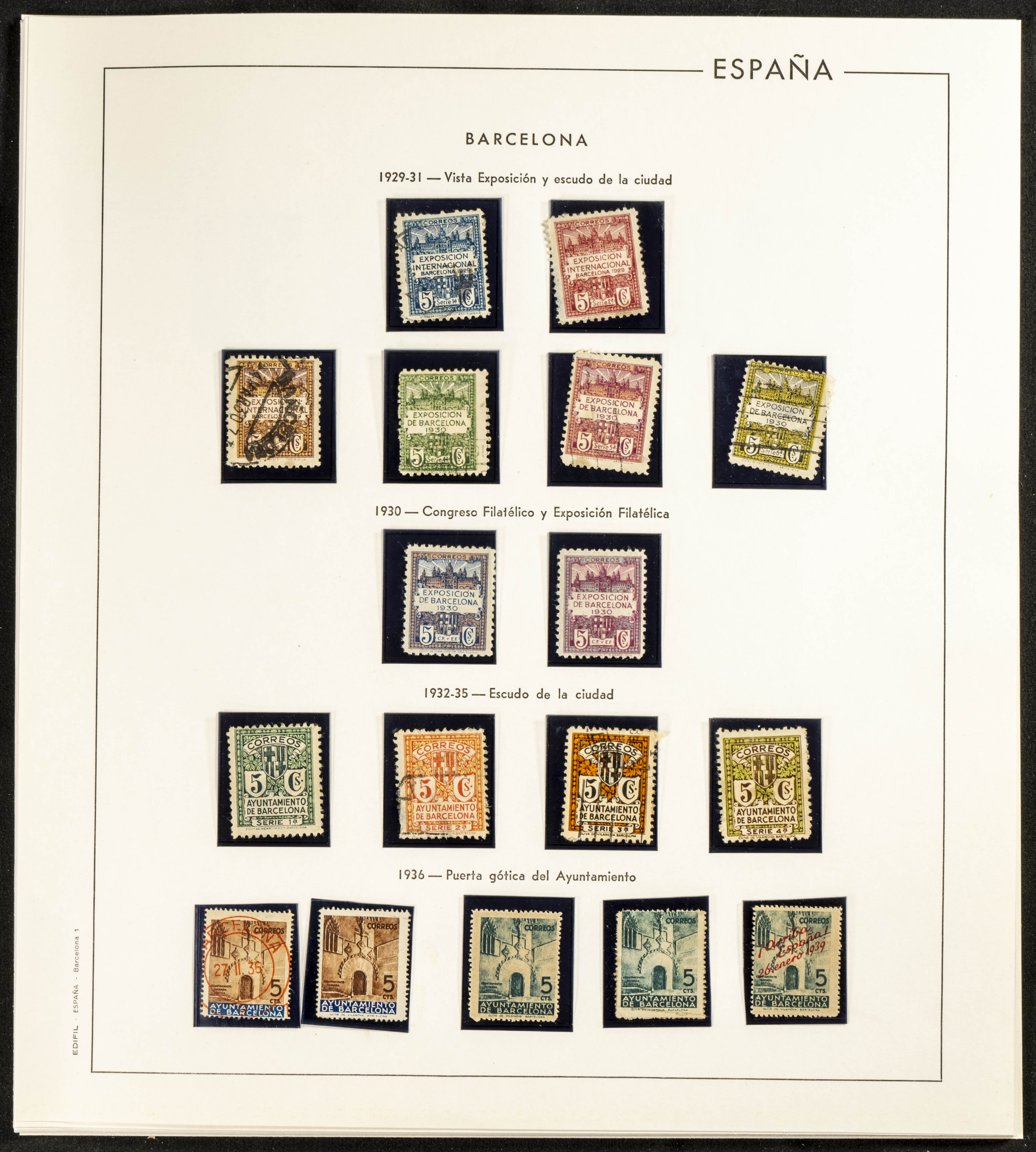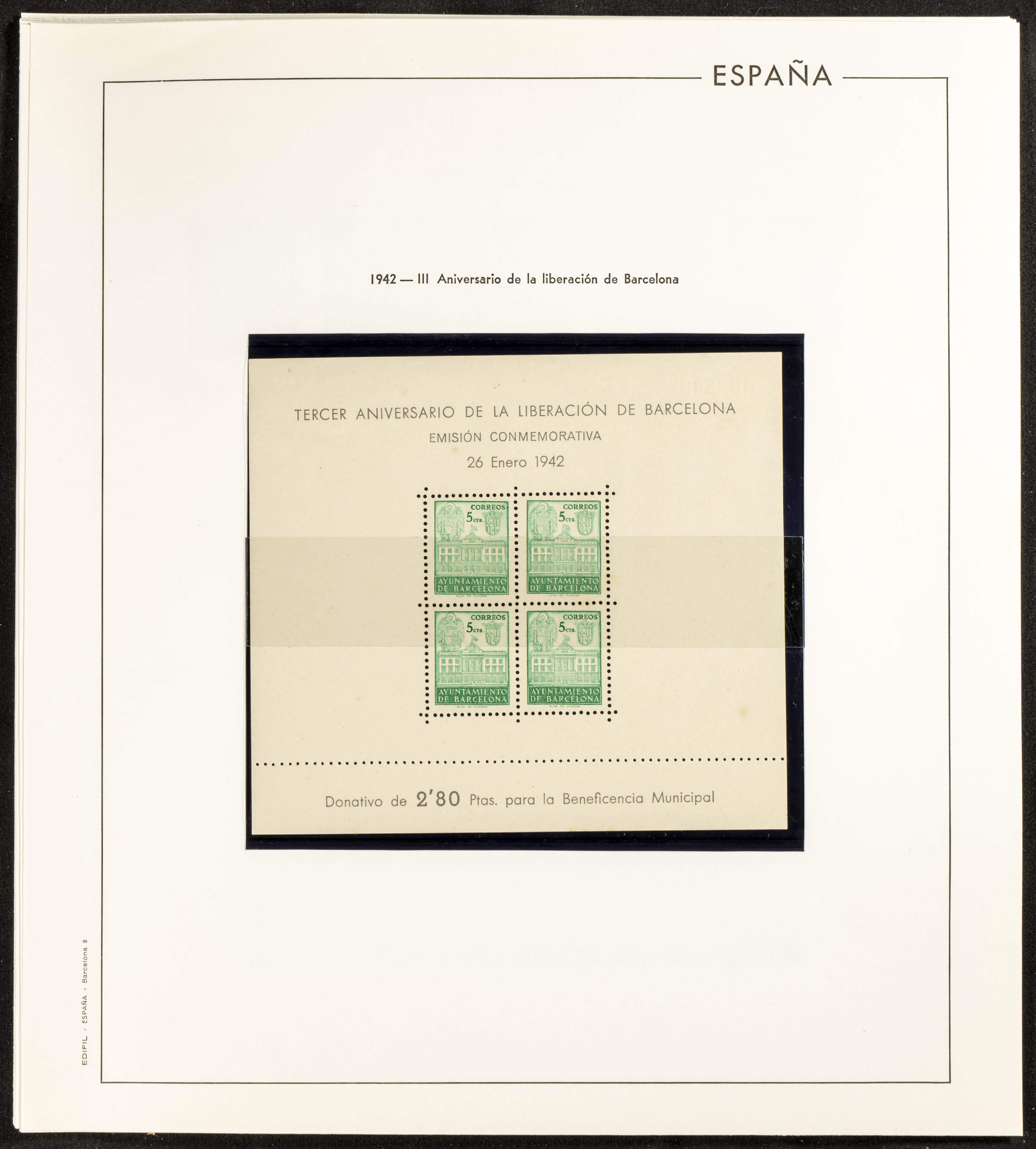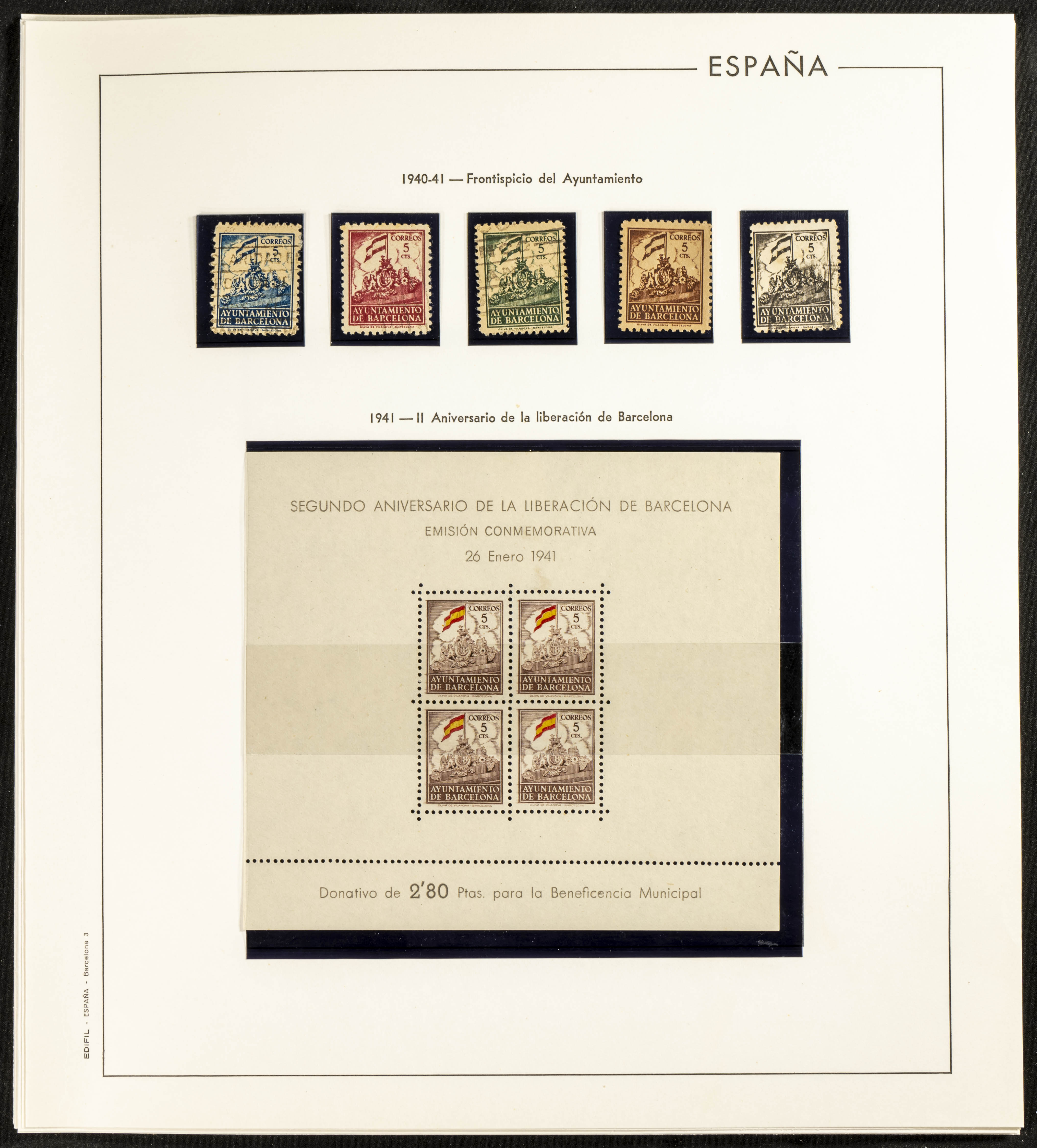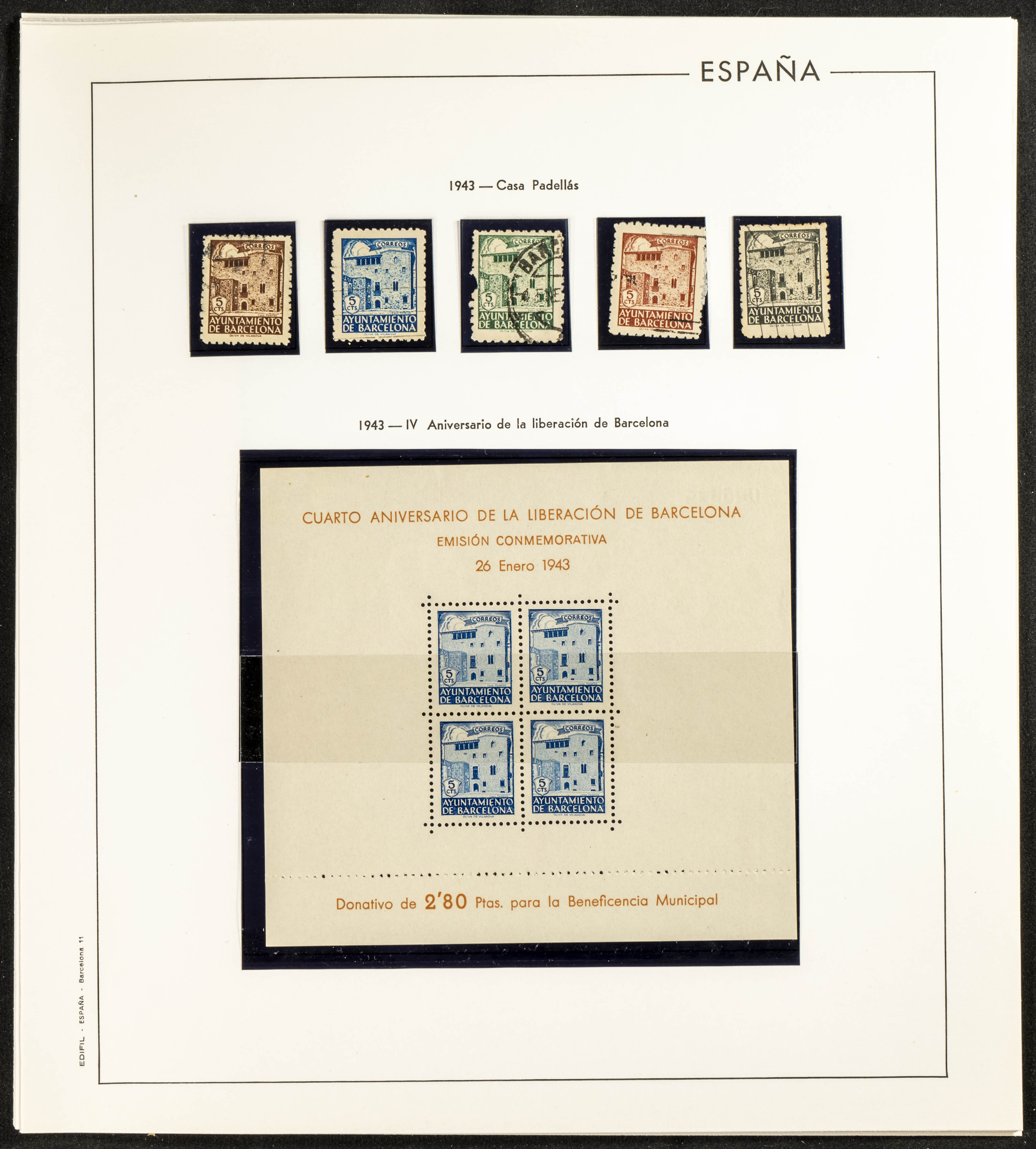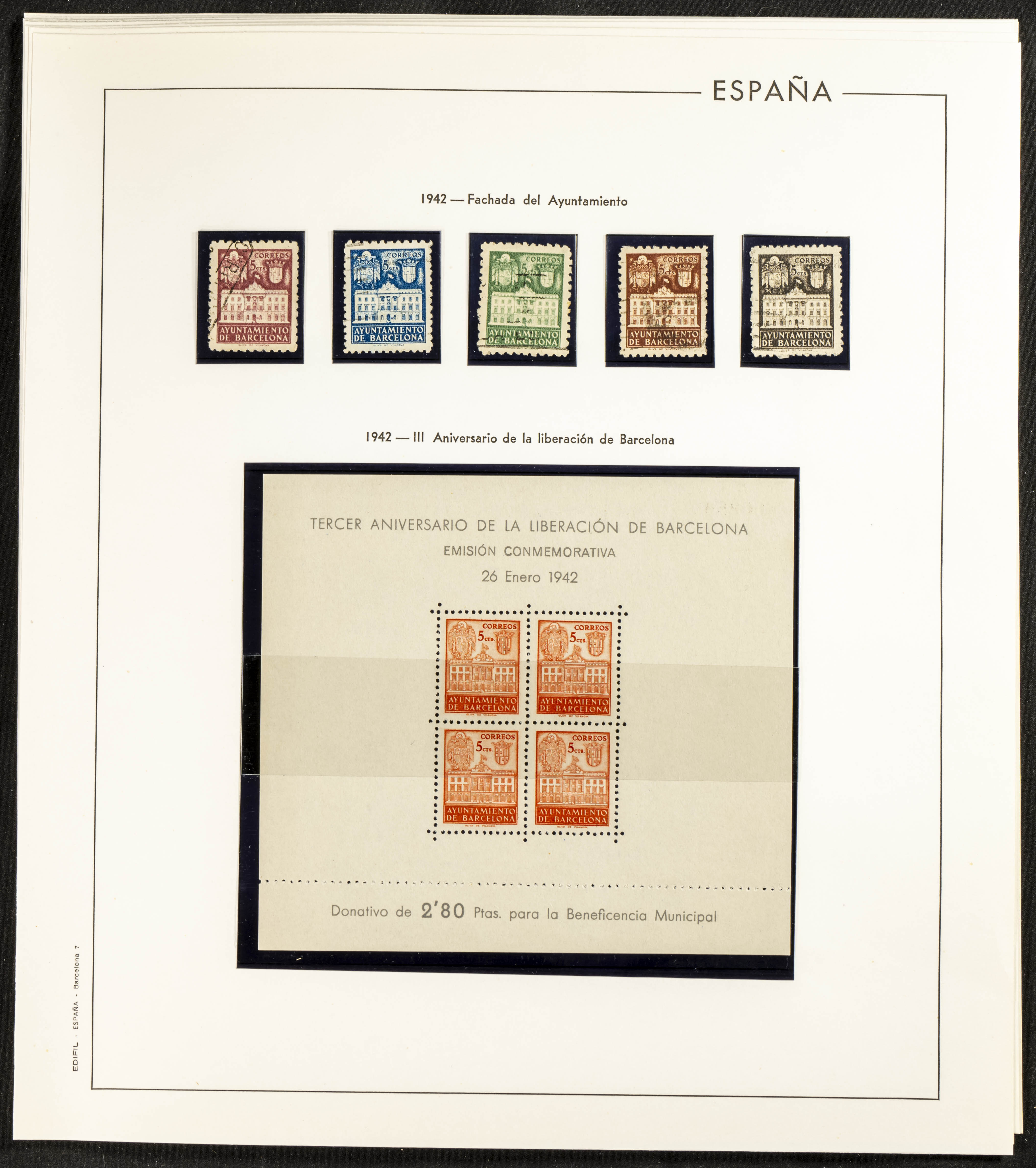★/(1929ca). Conjunto de series completas, sellos sueltos y hojas bloque del Ayuntamiento de Barcelona, en nuevo y usado e incluyendo las hojas bloque de 1941, 1942 y 1943, en nuevo. ALTO VALOR DE CATALOGO. A EXAMINAR.