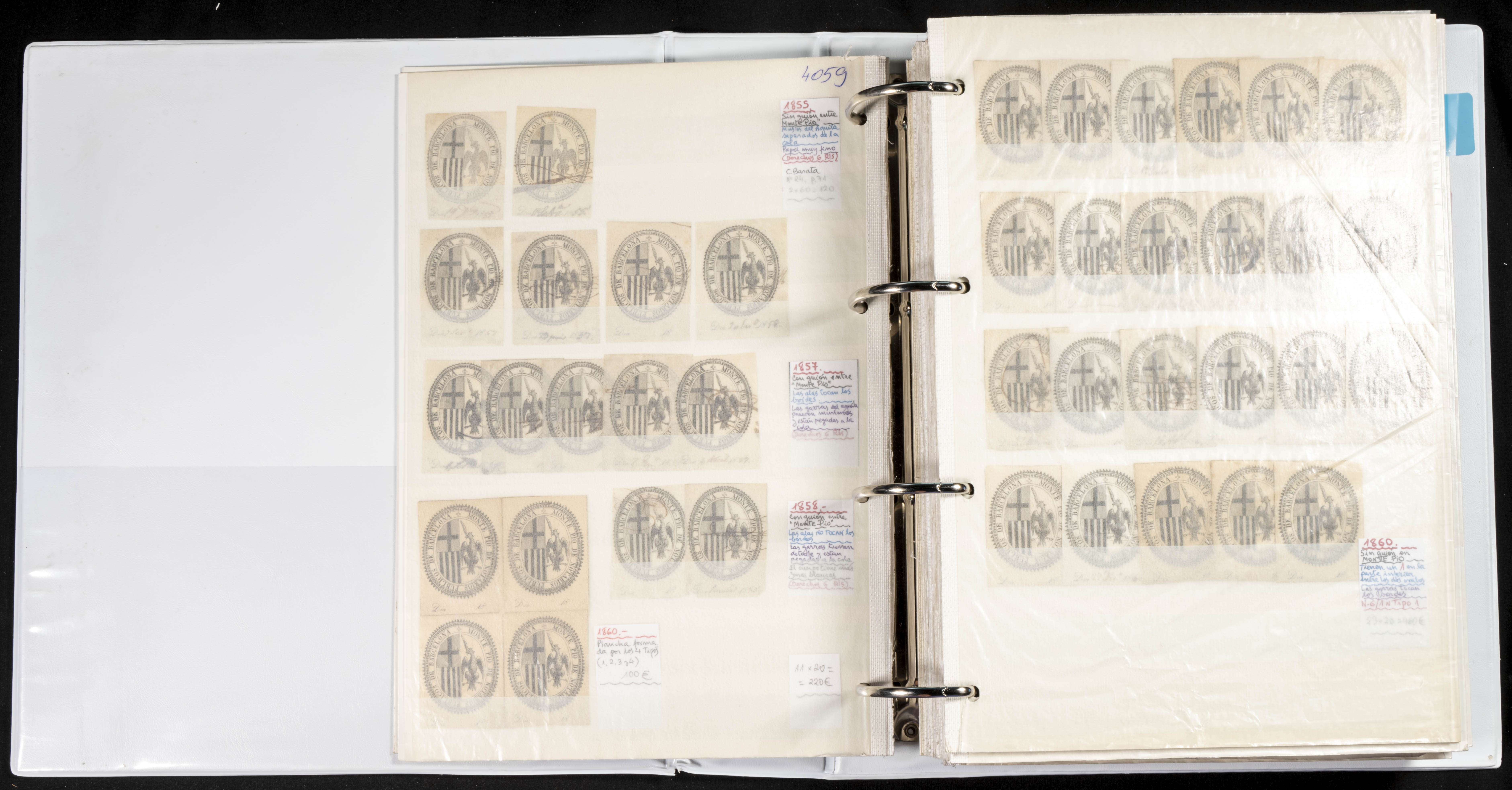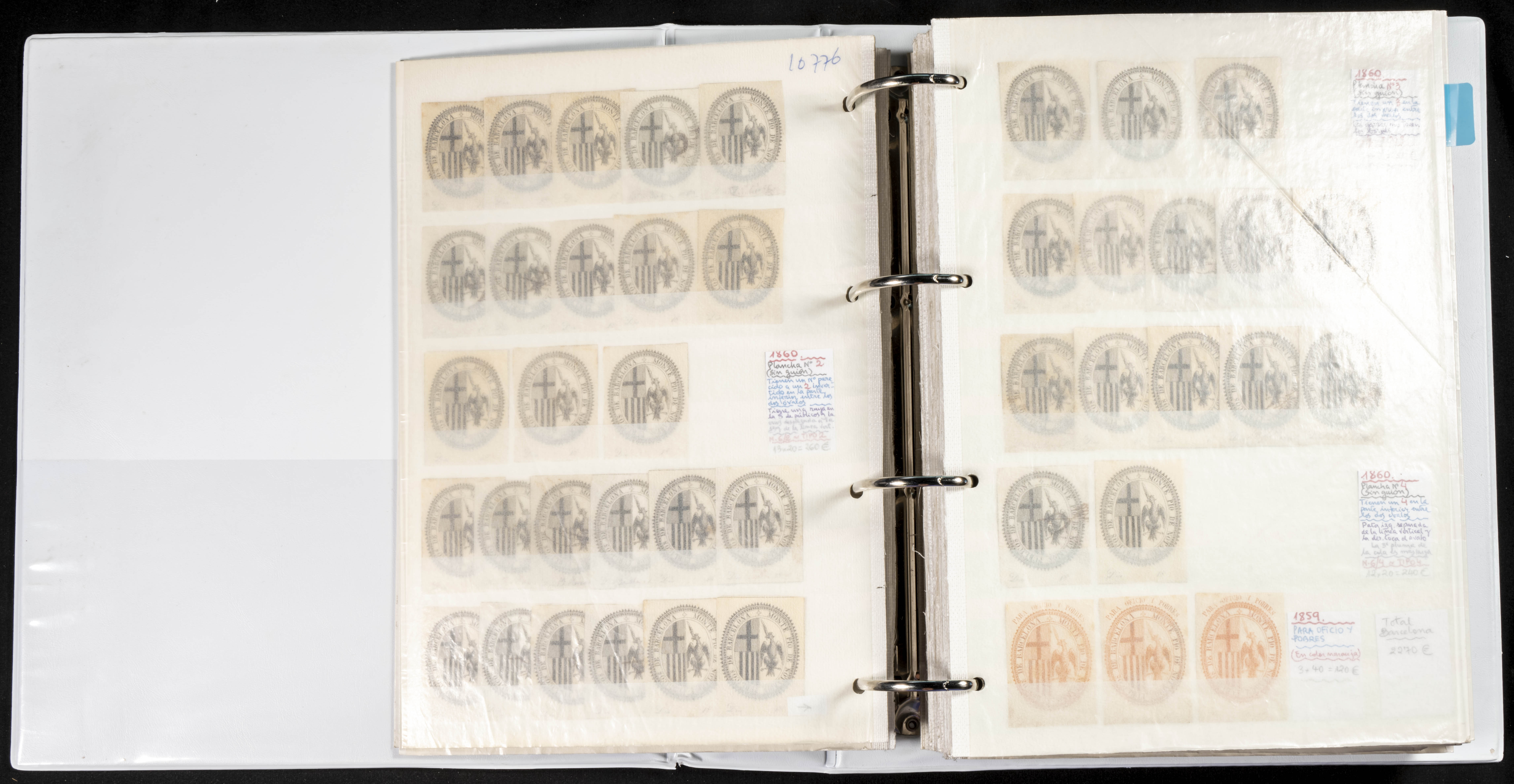 (1856ca). Espectacular conjunto de más de mil trescientos documentos de Escribanos, Abogados y Procuradores entre 1856 y 1911 de diversas provincias, algunos repetidos, incluye en muchos casos variedades, sin firmas y tipos diferentes y alguno de Cuba y México. IMPRESCINDIBLE EXAMINAR.