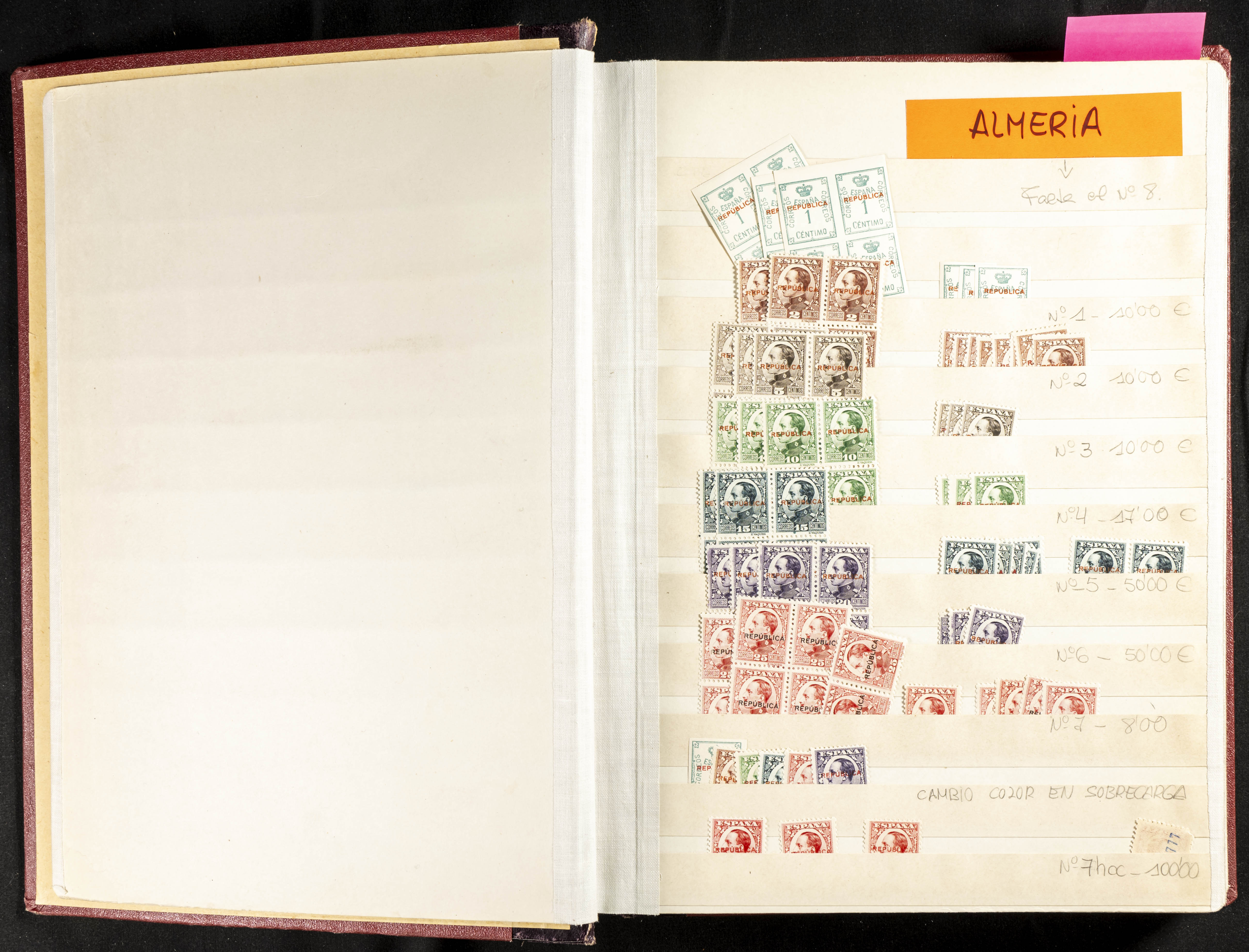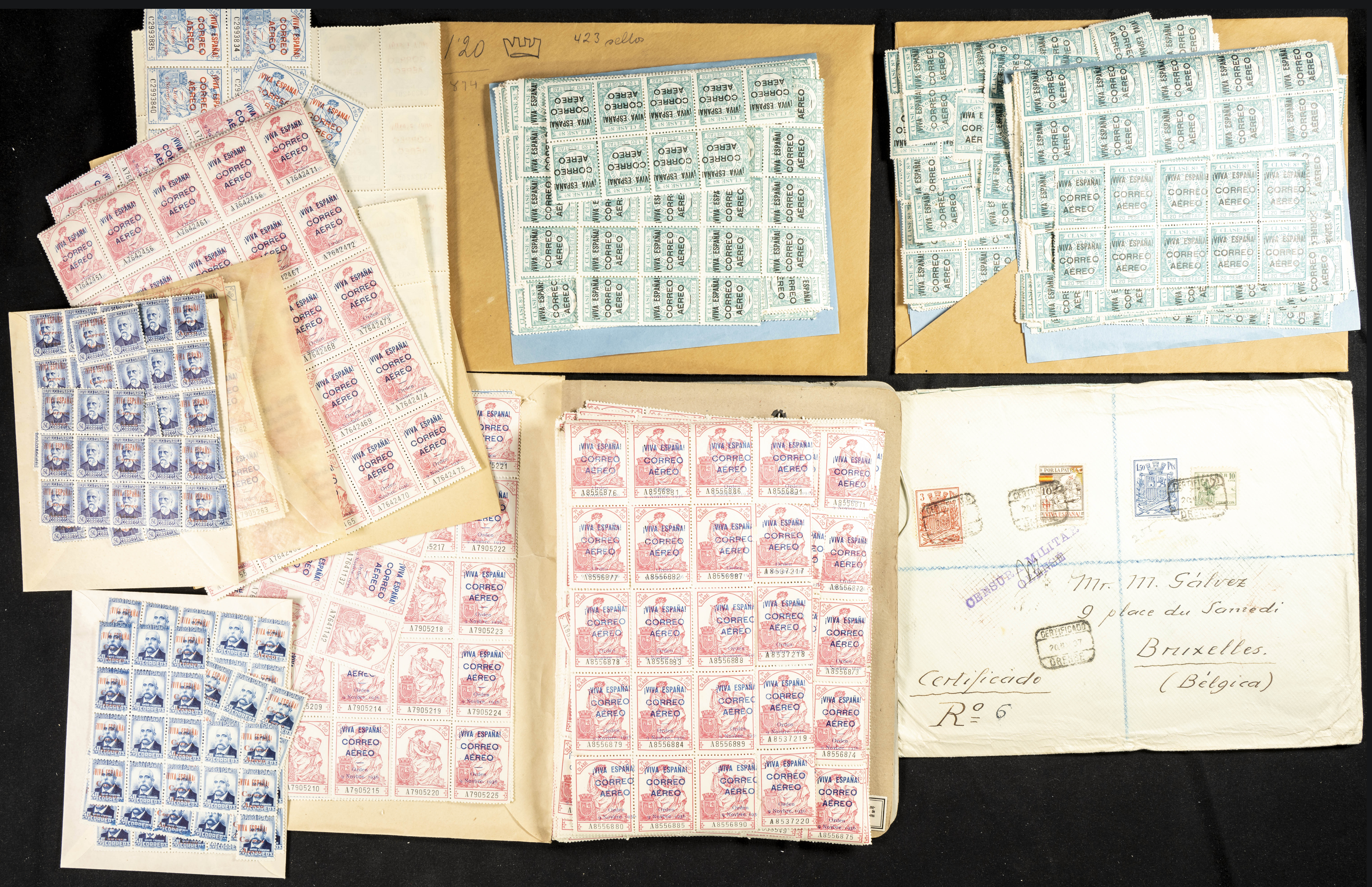 ★★/★(1936ca). Espectacular conjunto-stock de comerciante de miles de sellos sueltos y series completas de Emisiones Locales Republicanas y Patrióticas, organizado en sobres por provincias y valores, incluye variedades y grandes bloques (la mayoría doblados para adaptarlos a sobres pequeños), ideales para estudio. ALTISIMO VALOR DE CATALOGO. IMPRESCINDIBLE EXAMINAR.