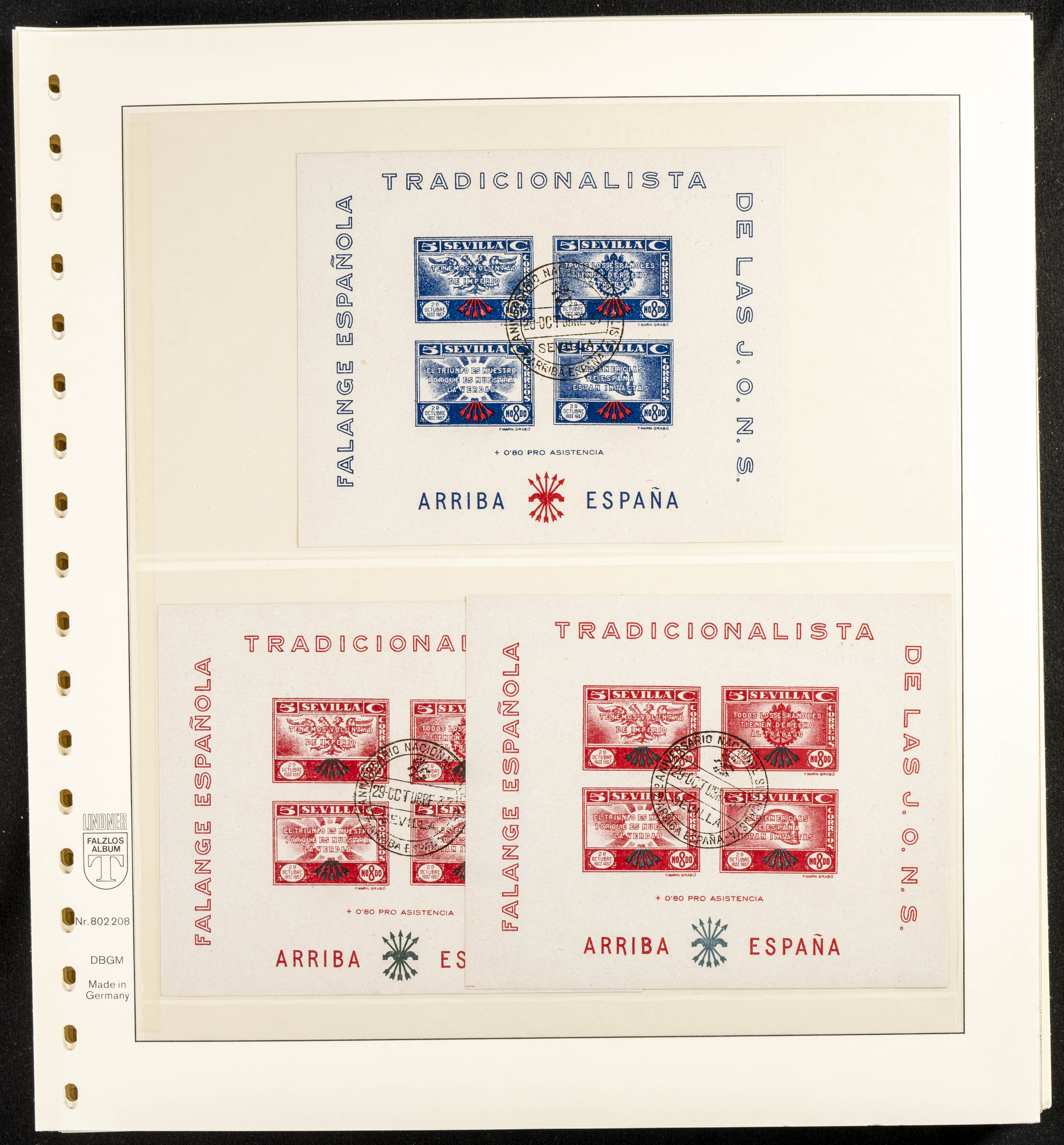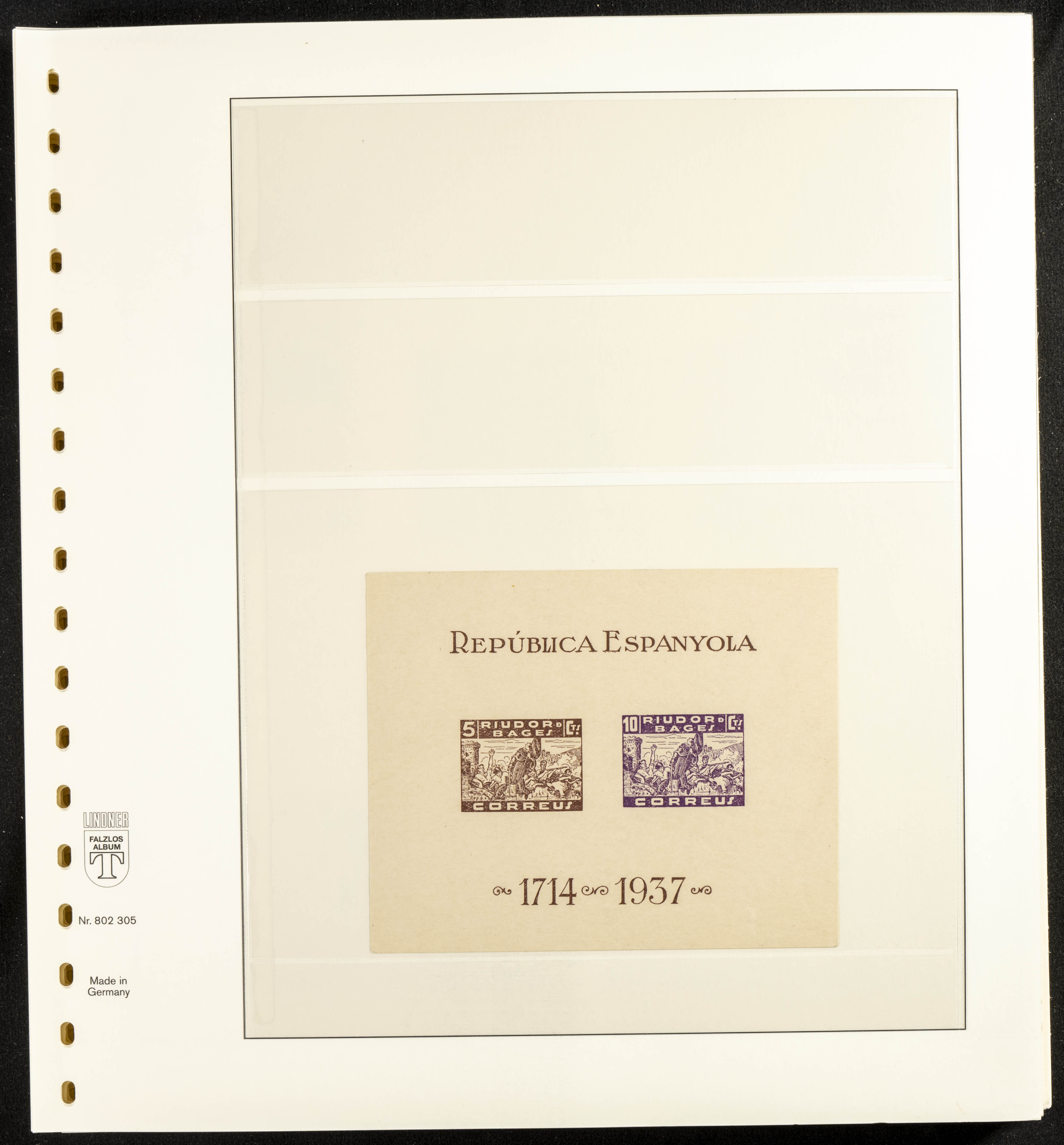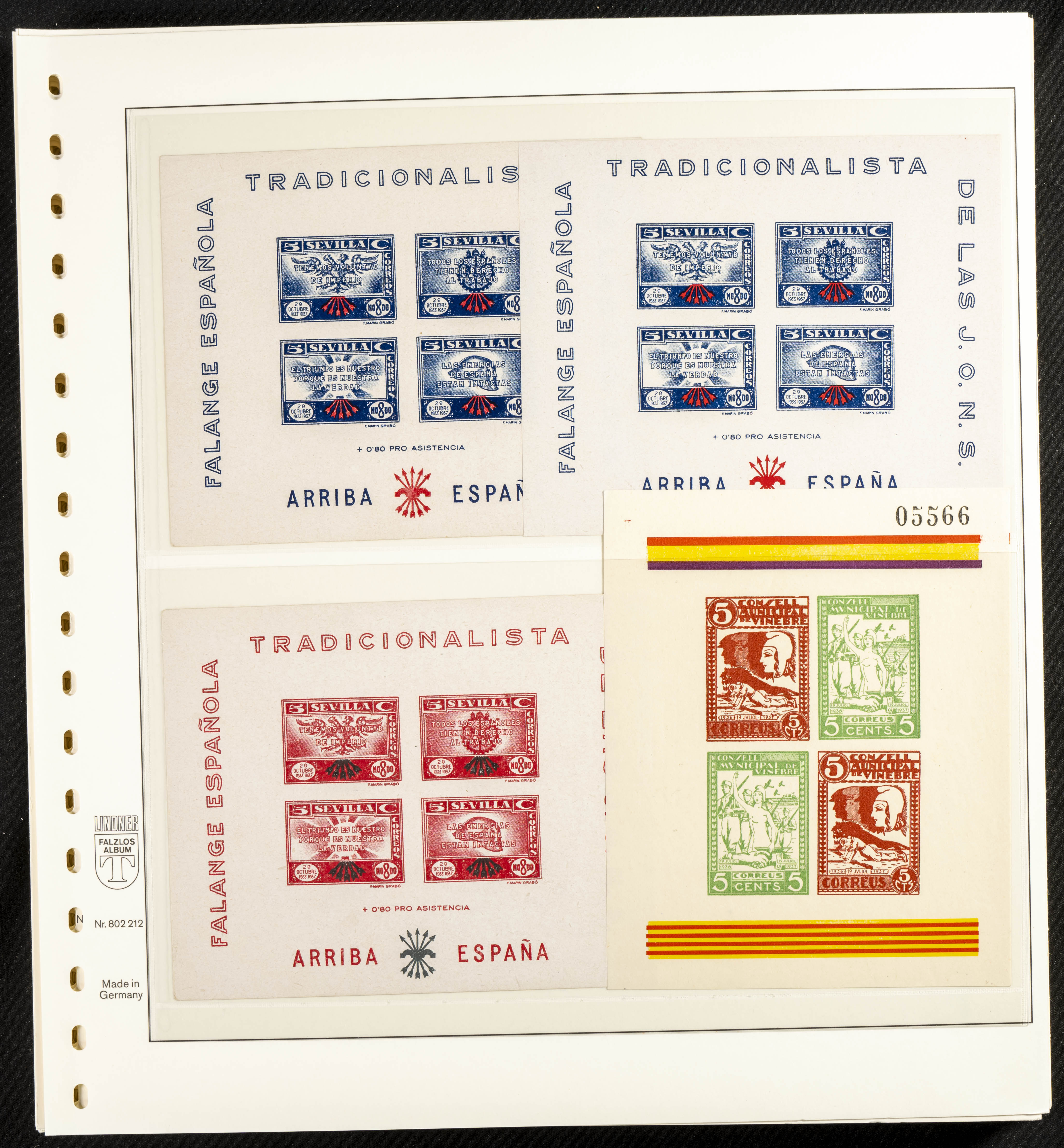 ★★/(1936ca). Interesante conjunto de hojas bloque de Emisiones Locales Benéficas, la mayoría emitidas durante la Guerra Civil, en nuevo y usado y destacando las hojas en bloques de cuatro sin cortar de Vinebre, Pro-Requetés de 1939 (dentada y sin dentar). A EXAMIAR.