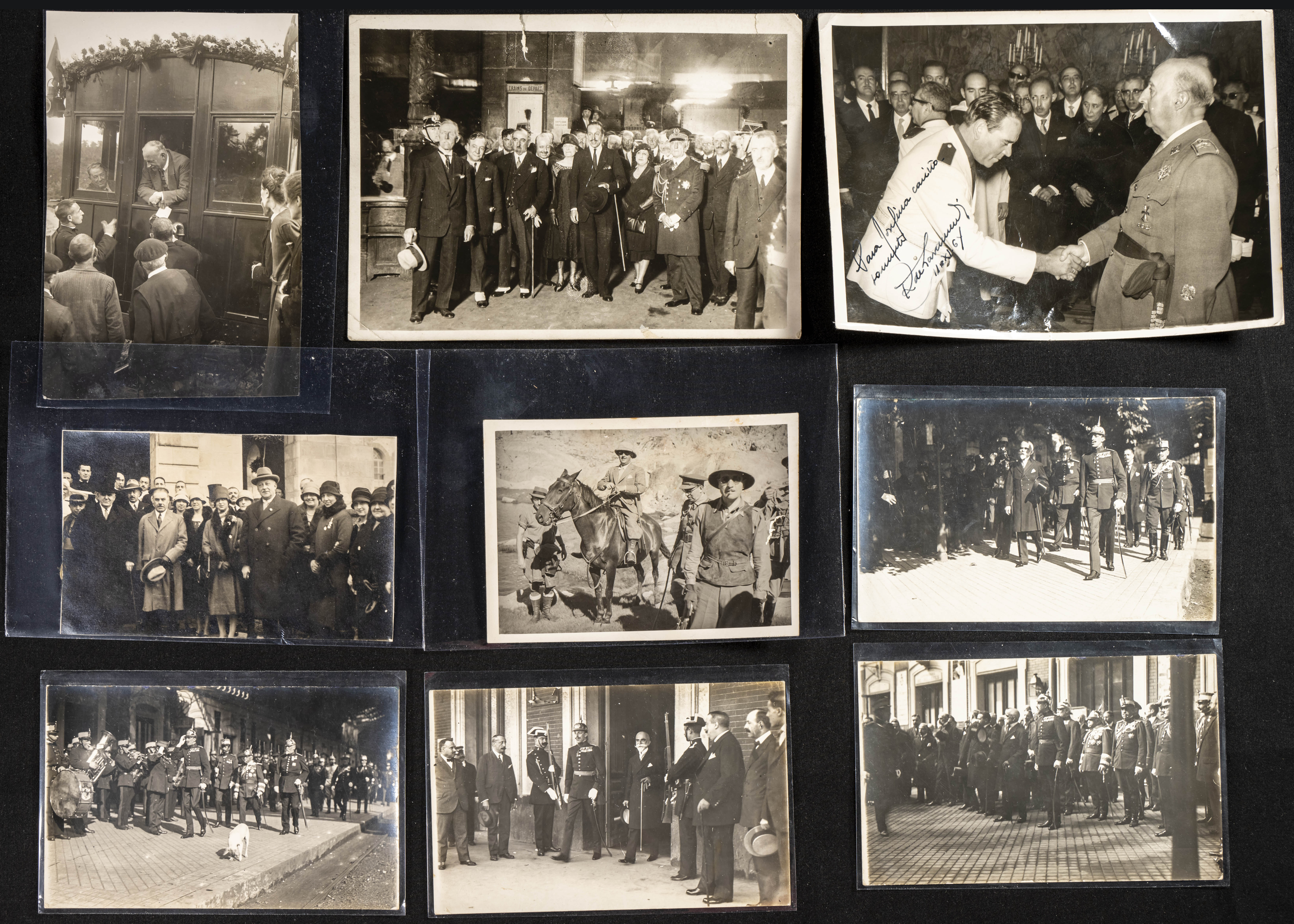 (1930ca). Conjunto de nueve fotografías de Alfonso XIII (cinco), Primo de Rivera (dos) y Francisco Franco (dos). A EXAMINAR.