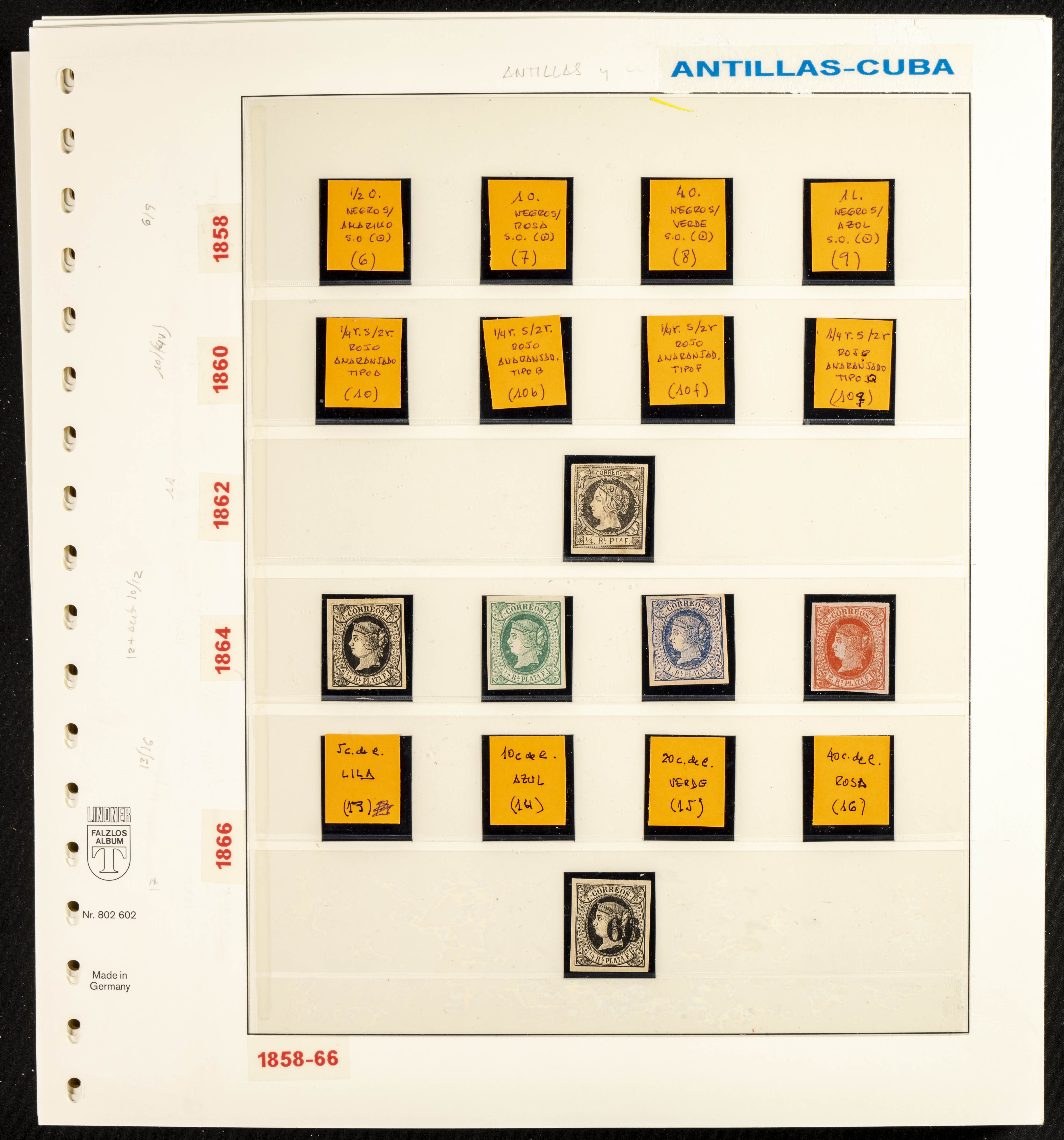 ★/(1854ca). Espectacular colección de Colonias Españolas de Ultramar (Cuba, Filipinas y Puerto Rico) entre 1854 y 1898, en nuevo y usado y con numerosas series completas y valores sueltos de alto valor, la mayoría nuevos, incluye las emisiones de Telégrafos, sobrecargas de habilitados (Filipinas y Puerto Rico) y alguna variedad. ALTISIMO VALOR DE CATALOGO. IMPRESCINDIBLE EXAMINAR.