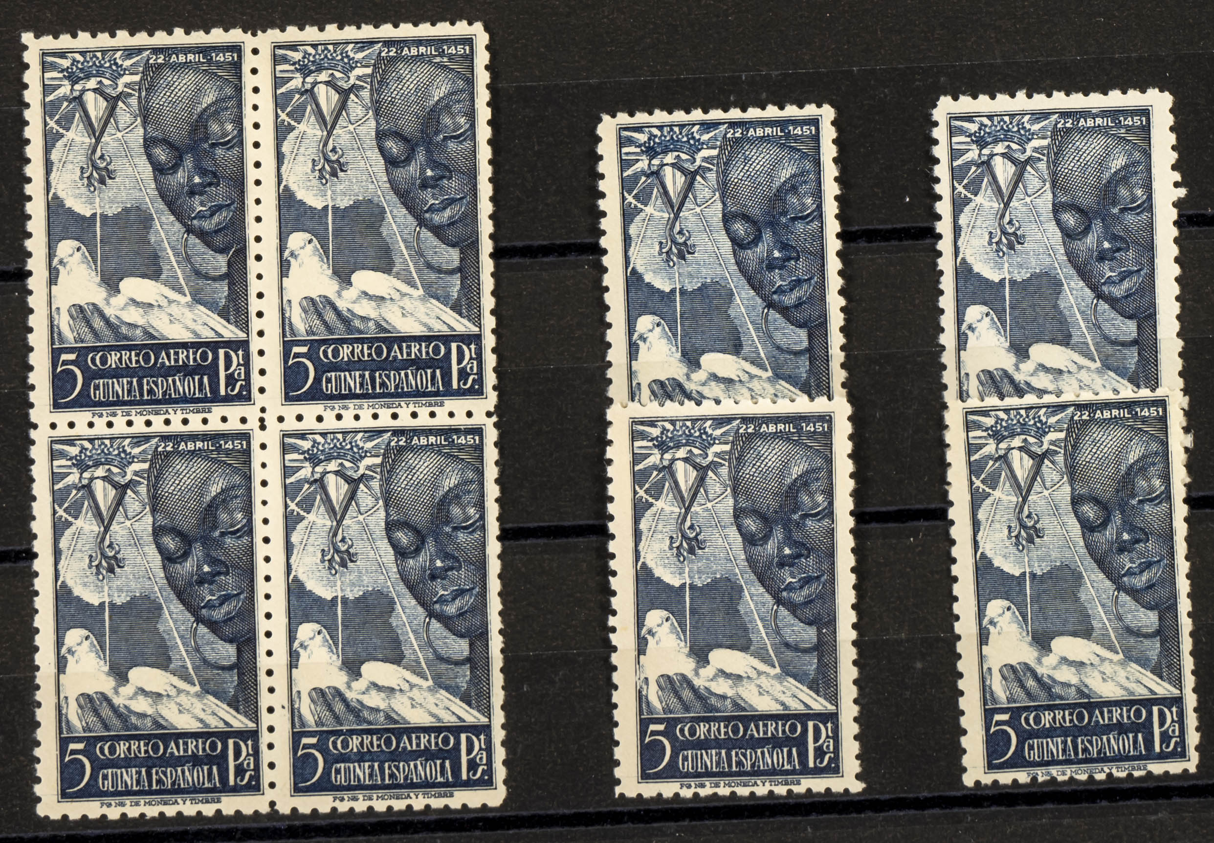 ★★ 305(8). 1951. 5 pts azul oscuro, ocho sellos. ISABEL LA CATOLICA (buena calidad en general). A EXAMINAR. Edifil 2025: 240 Euros