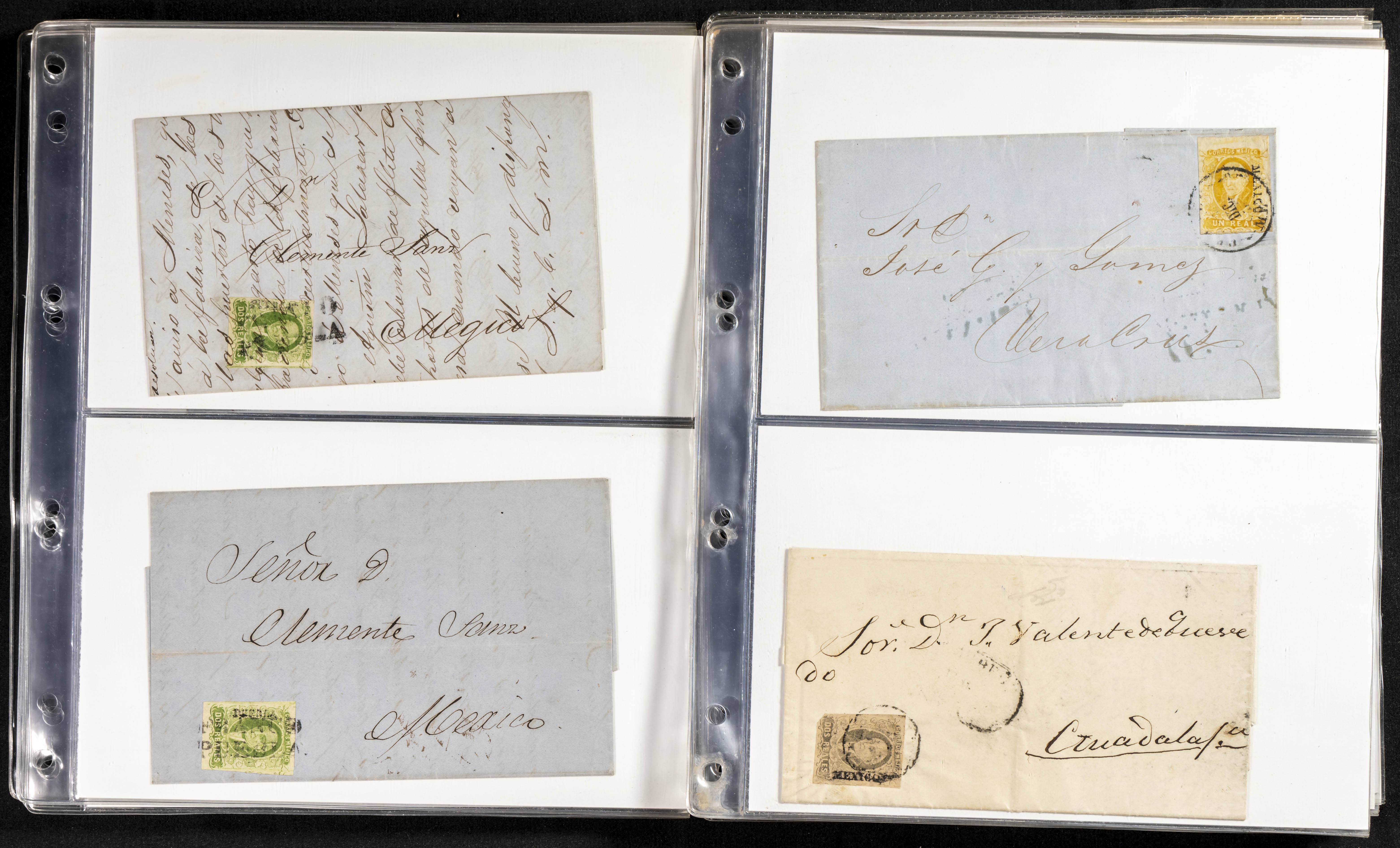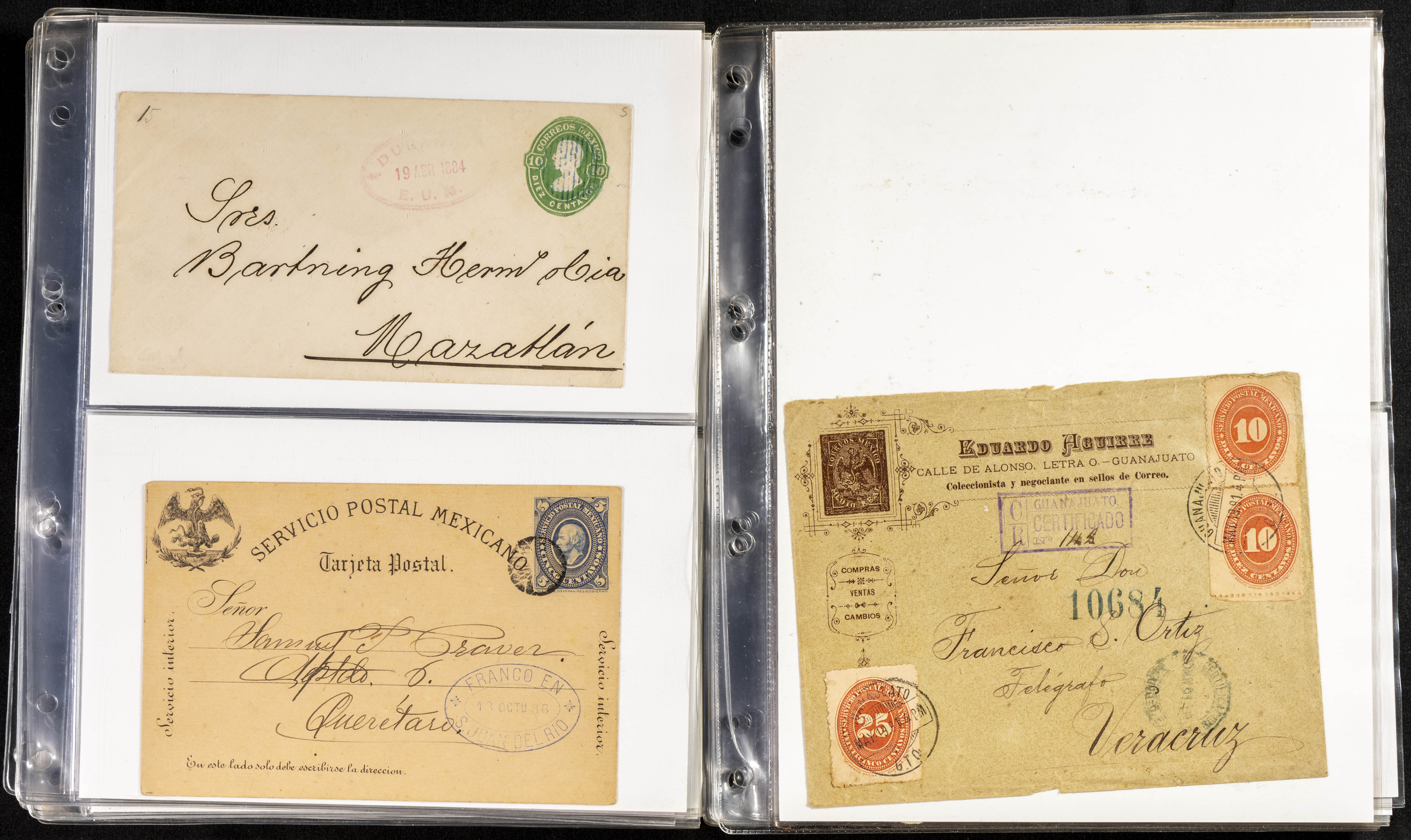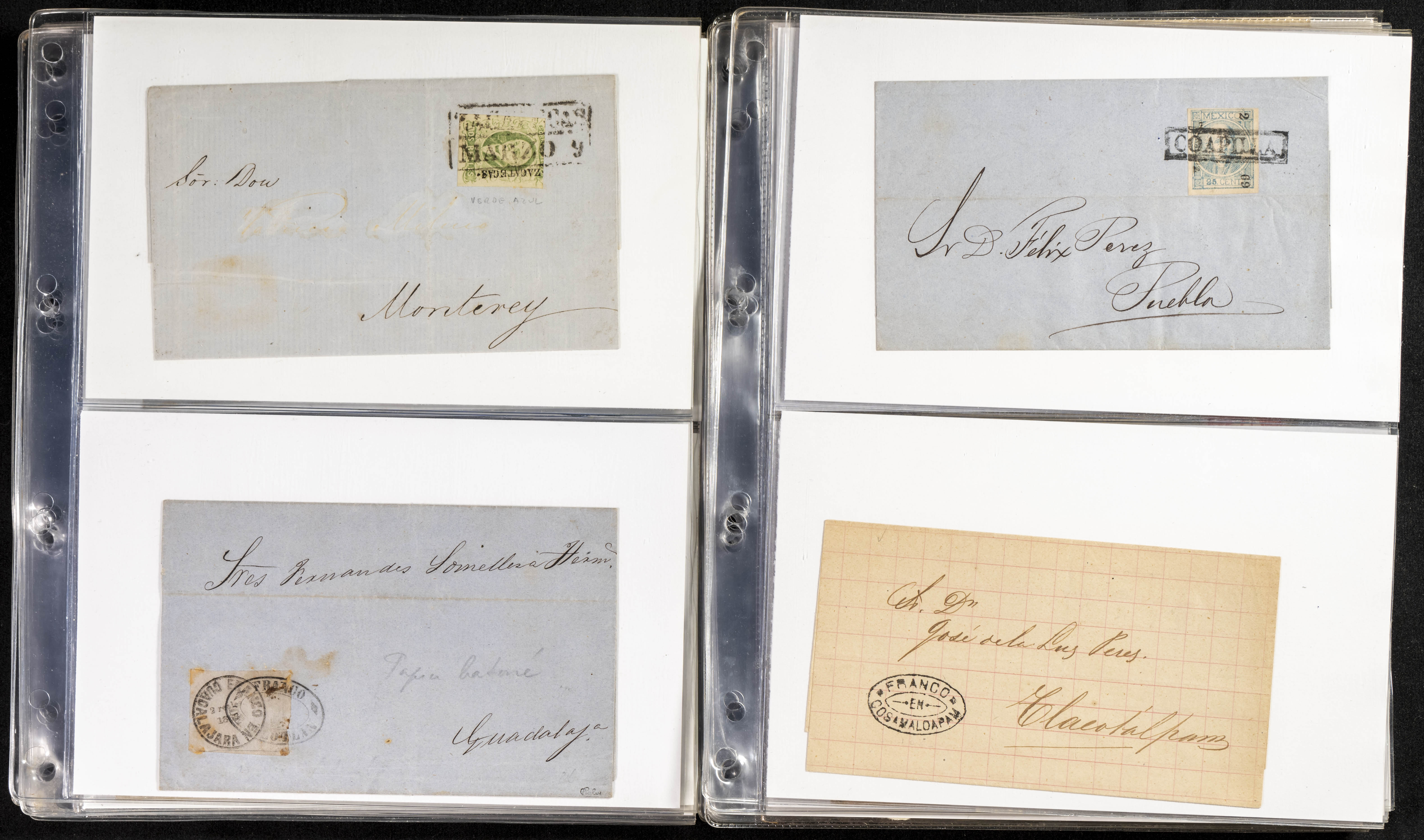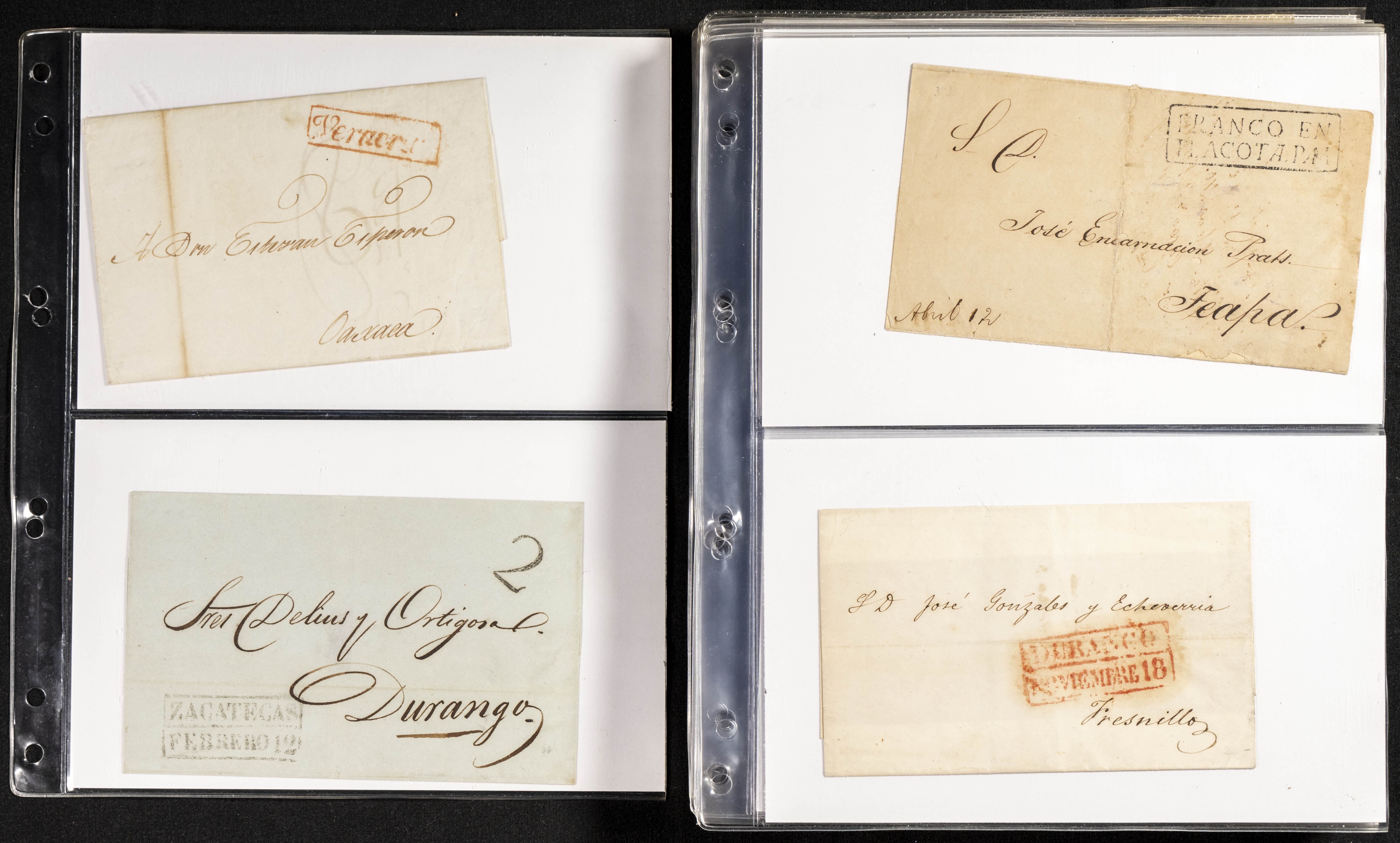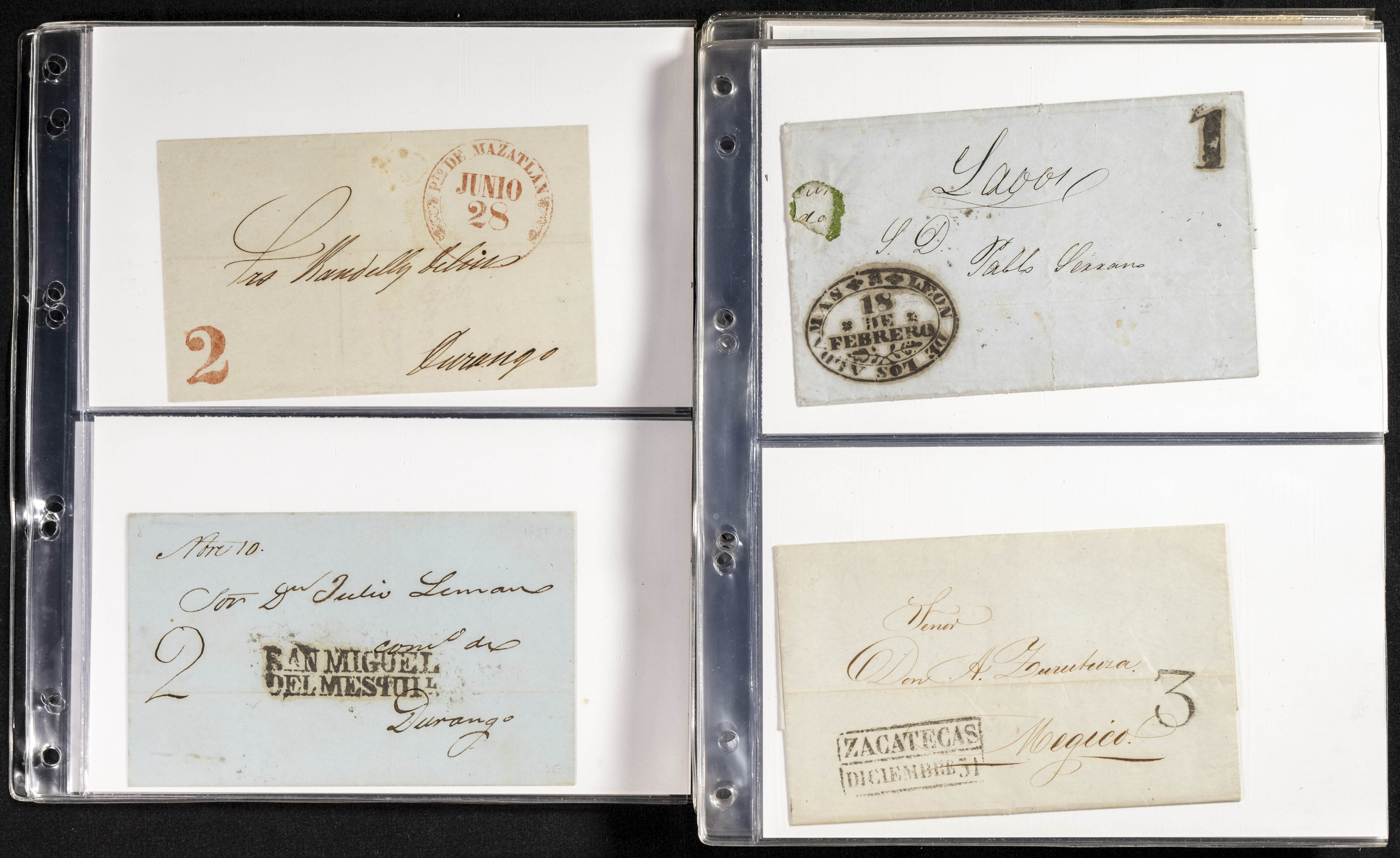 (1840ca). Espectacular conjunto de Historia Postal de México entre 1840 y 1929 con catorce cartas prefilatélicas, sesenta y una cartas circuladas con sellos, cuarenta Entero Postales circulados y más de cincuenta y cinco Tarjetas y Sobres Entero Postales nuevos con alguna variedad, destacan más de veinte cartas circuladas de las primeras emisiones, así como varias cartas de Sonora, certificadas y varios franqueos múltiples. IMPRESCINDIBLE EXAMINAR.