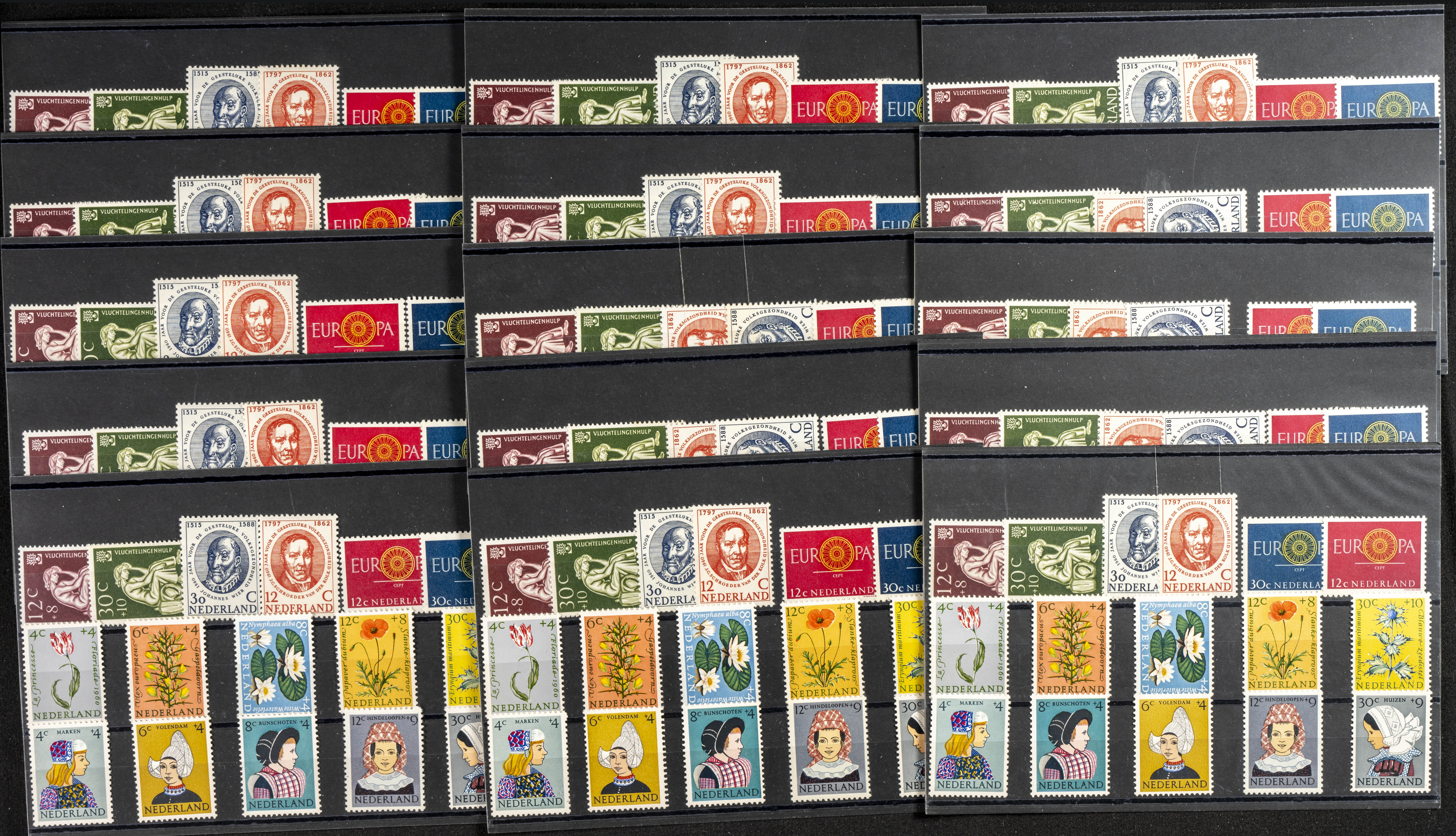 ★★Yvert 717/32(15). 1960. Conjunto de quince años completos de Países Bajos 1960, en nuevo (montados en fichas). A EXAMINAR. Yvert 2024: 922 Euros