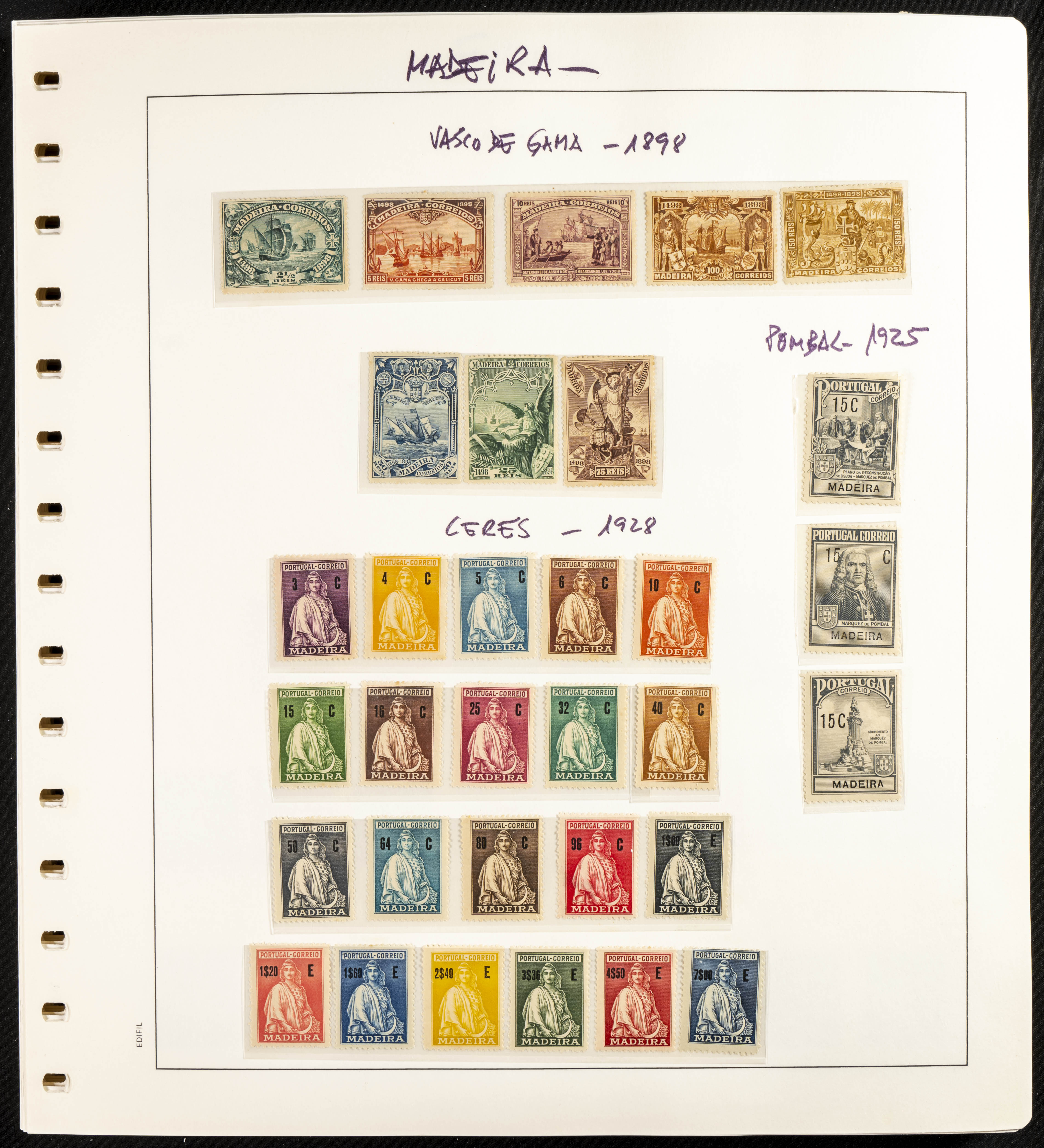 ★★/(1877ca). Interesante y muy bien representada colección de Colonias Portuguesas (Africa, India, Timor e Islas Atlántidas), en nuevo y usado y generalmente entre 1877 y 1956 con numerosas series de valor medio, algunas muy raras o difíciles de conseguir así como series cortas, sobrecargas especiales, varios fragmentos, etc. ALTISIMO VALOR DE CATALOGO. IMPRESCINDIBLE EXAMINAR.