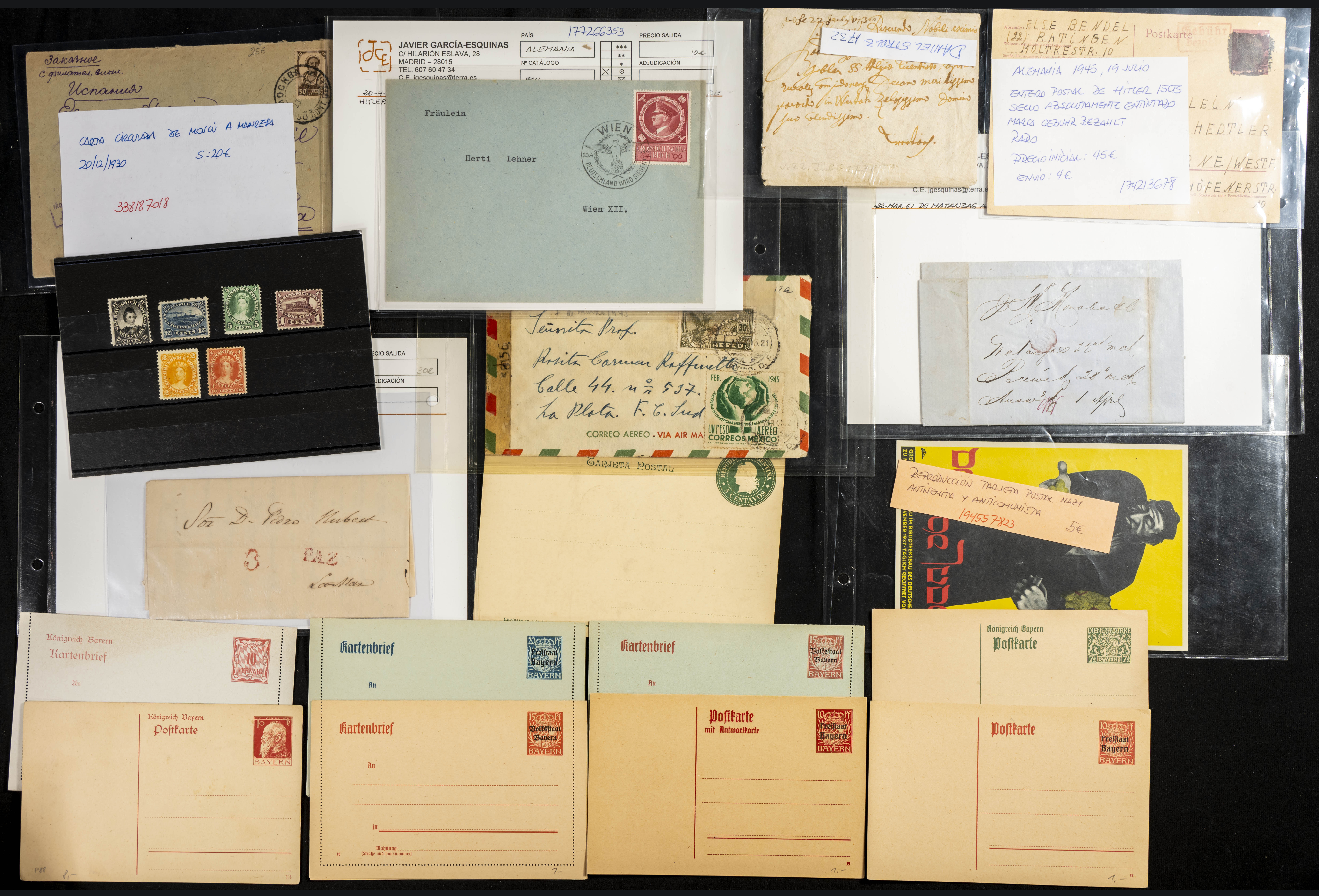 (1840ca). Interesante conjunto de más de sesenta cartas y tarjetas postales circuladas entre 1840 y 1970 y varias decenas de Tarjetas Entero Postales, en nuevo y todo de diversos países con algunas cartas prefilatélicas de Bolivia y Francia, cartas con clásicos de Francia y Alemania, vuelos especiales y Zeppelin, etc. A EXAMINAR.