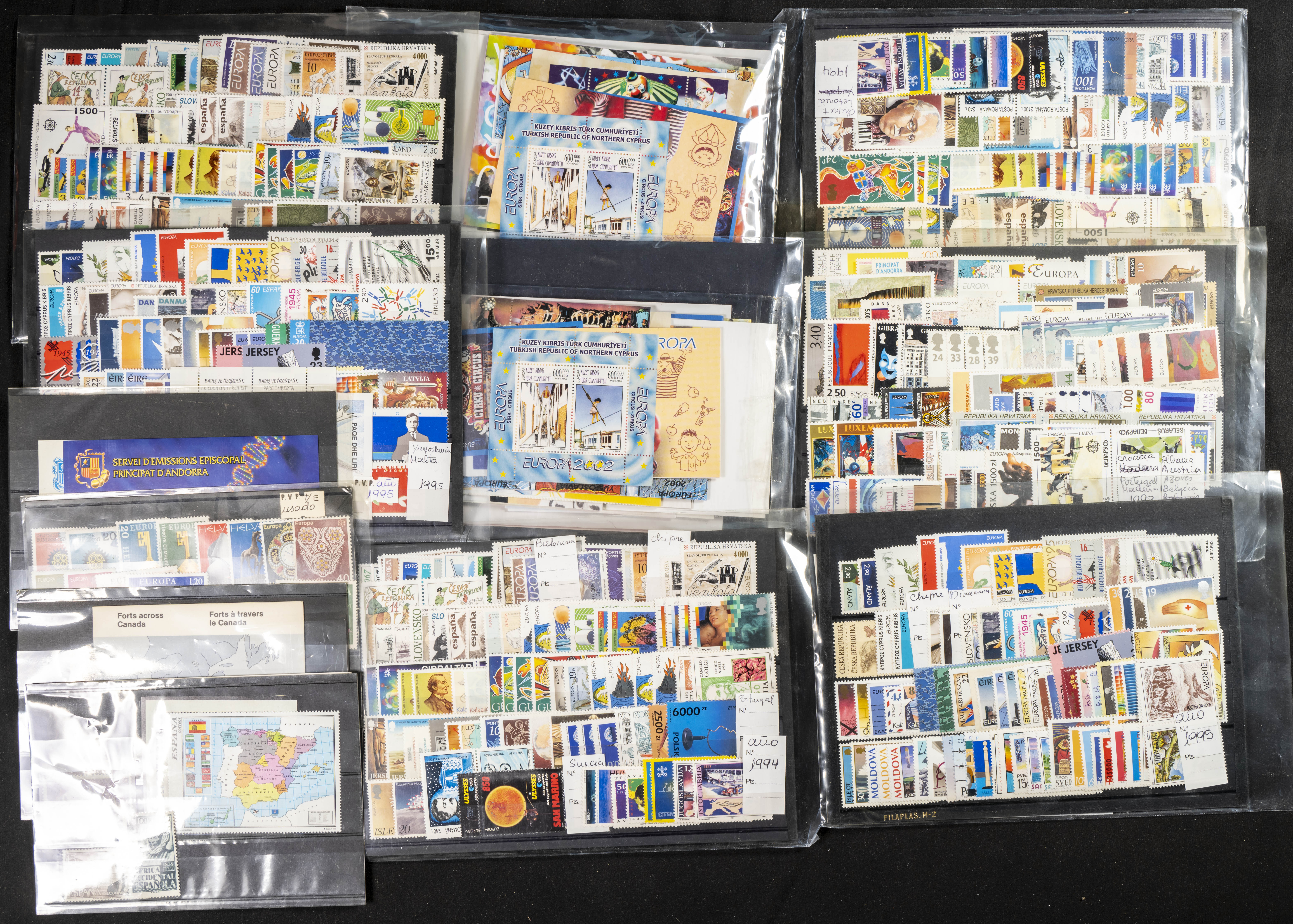 ★★(1980ca). Conjunto de series completas y hojas bloque de diversos países, la mayoría años ochenta y noventa, en nuevo. A EXAMINAR.