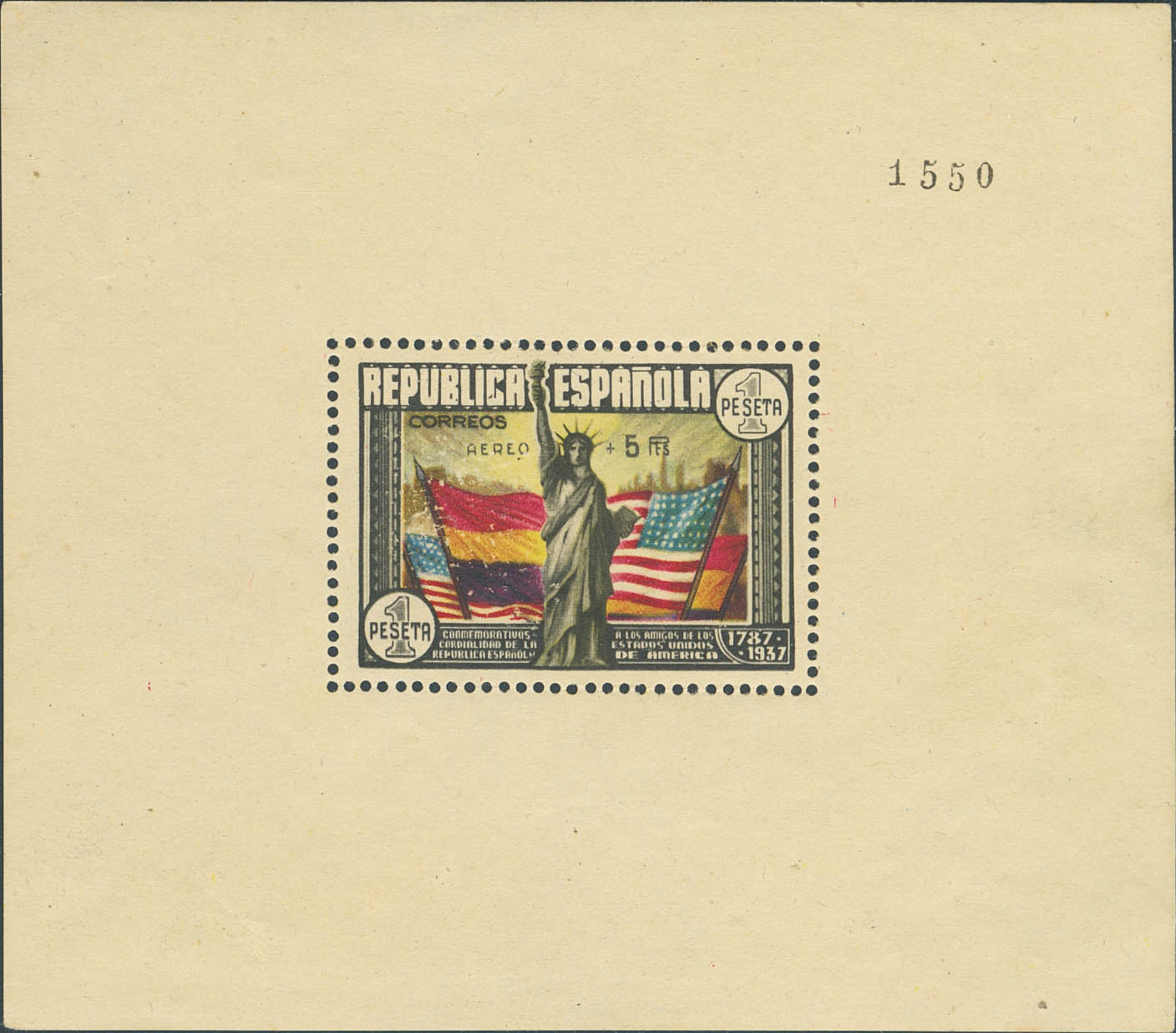 (★) 766. 1938. Hoja bloque (manchitas). AEREO+5 PTS. BONITA. Cert. EXFIMA. Edifil 2025: 1.200 Euros