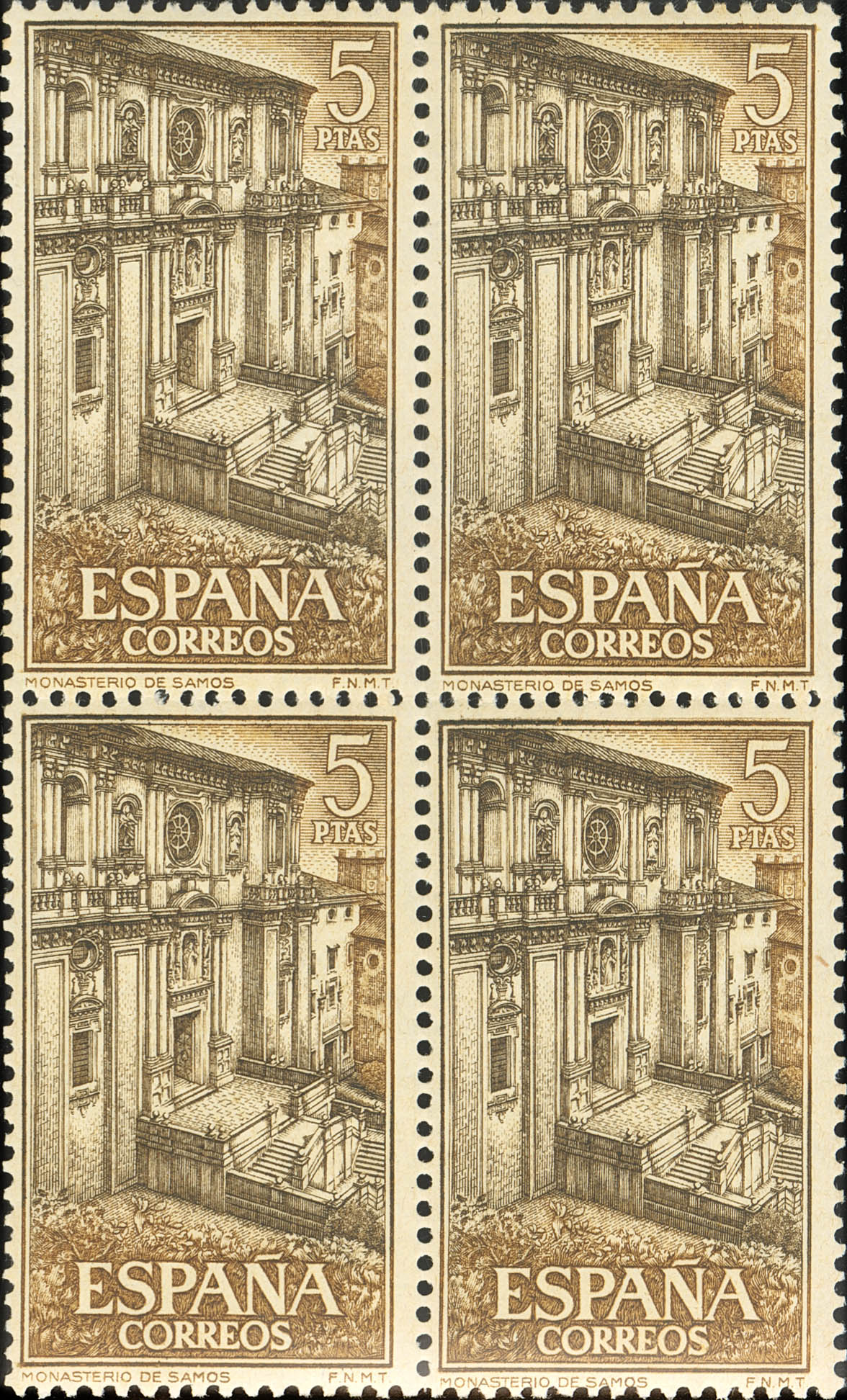 ★★ 1324ef(4). 1960. 5 pts castaño, bloque de cuatro. UNICOLOR. MAGNIFICO. Edifil 2021: +136 Euros