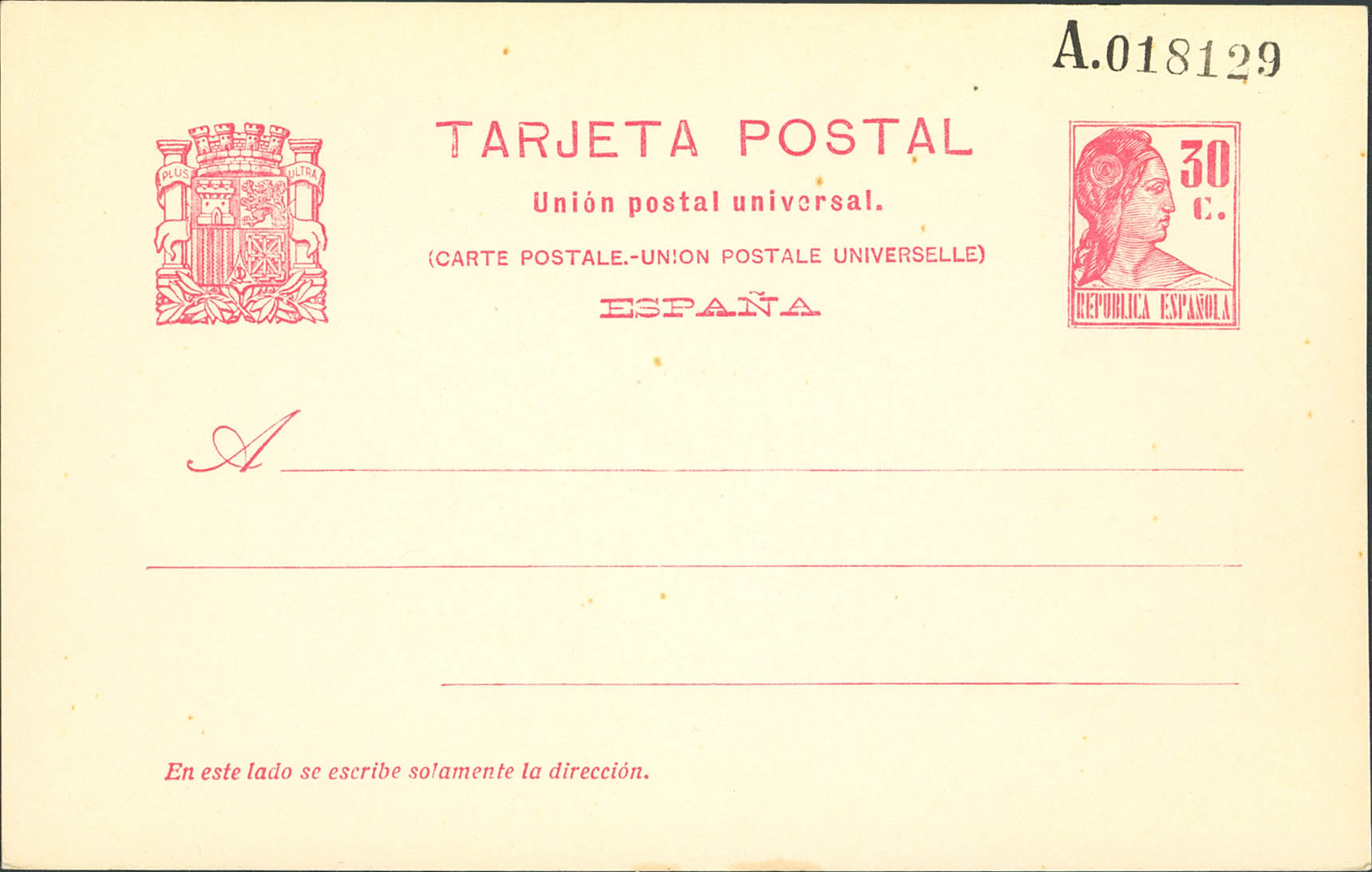 (★) EP72. 1934. 30 cts rosa carmín sobre Tarjeta Entero Postal. MAGNIFICA. Edifil 2025: 112 Euros