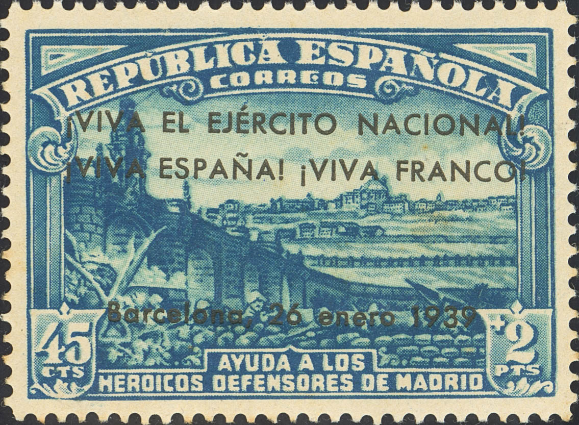 ★★ 23. 1939. 45 cts+2 pts azul. MAGNIFICO Y MUY RARO.
