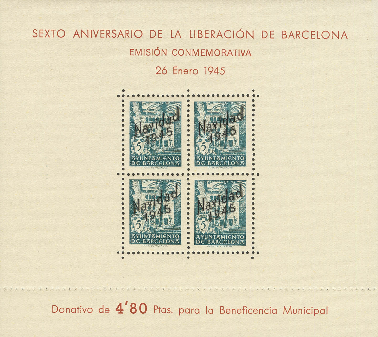 ★★ NE29/30. 1945. Hojas bloque. NO EMITIDAS. MAGNIFICAS. Edifil 2025: 520 Euros