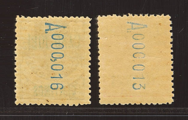 ★★ 1FNhz, 3AFNhz. 1916. 5 cts sobre 4 pts rosa y 15 cts sobre 50 cts castaño. SIN CIFRA DEL VALOR. MAGNIFICOS Y RARISIMOS. Edifil 2018: 610 Euros