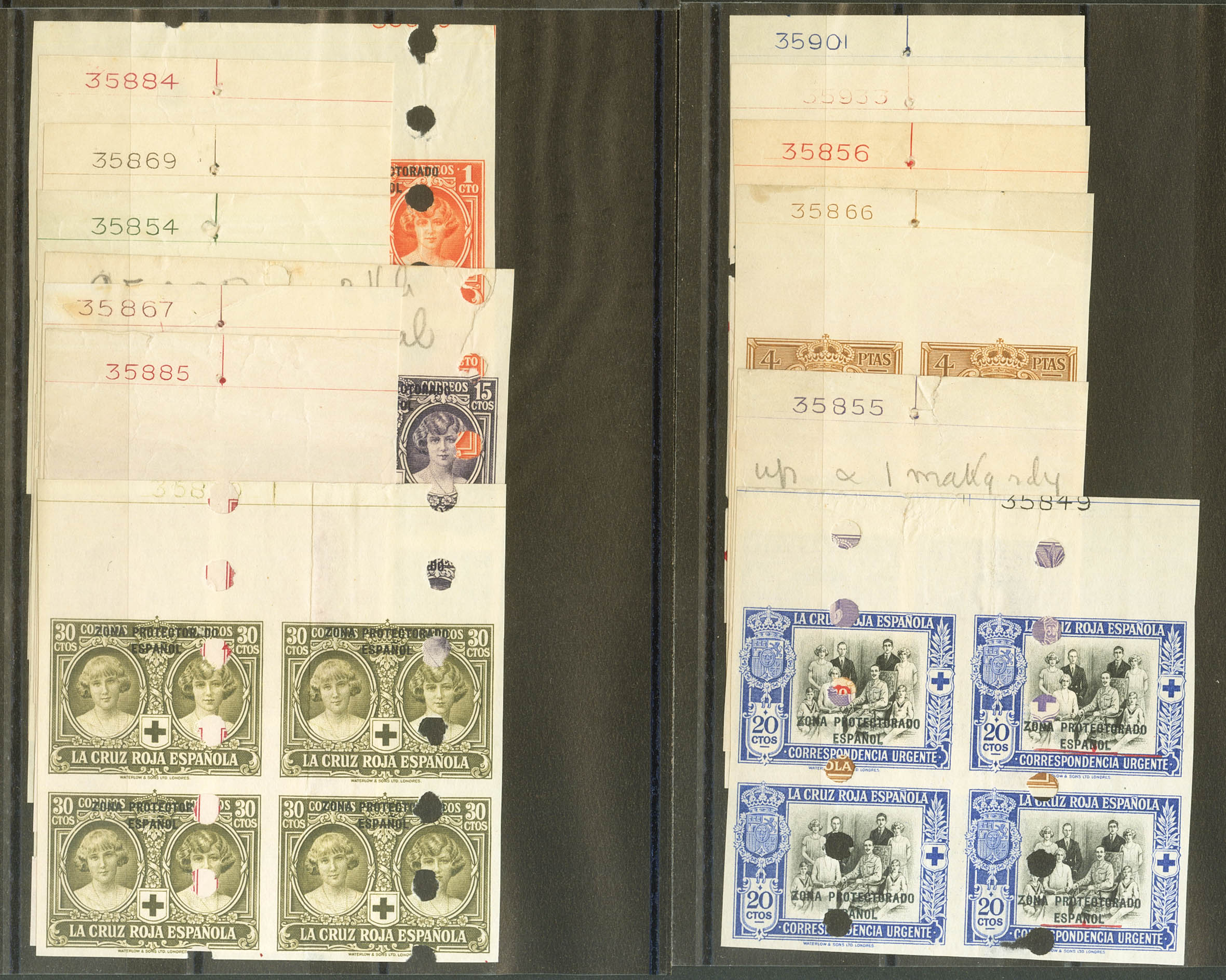 (★) 91/04MTs. 1926. Serie completa, en bloque de cuatro y borde de hoja (10 pts sólo una pareja). SIN DENTAR y con TALADRADOS. MAGNIFICA Y RARA. (a efectos del valor de catálogo sólo se valoran dos series completas) Edifil 2018: 720 Euros
