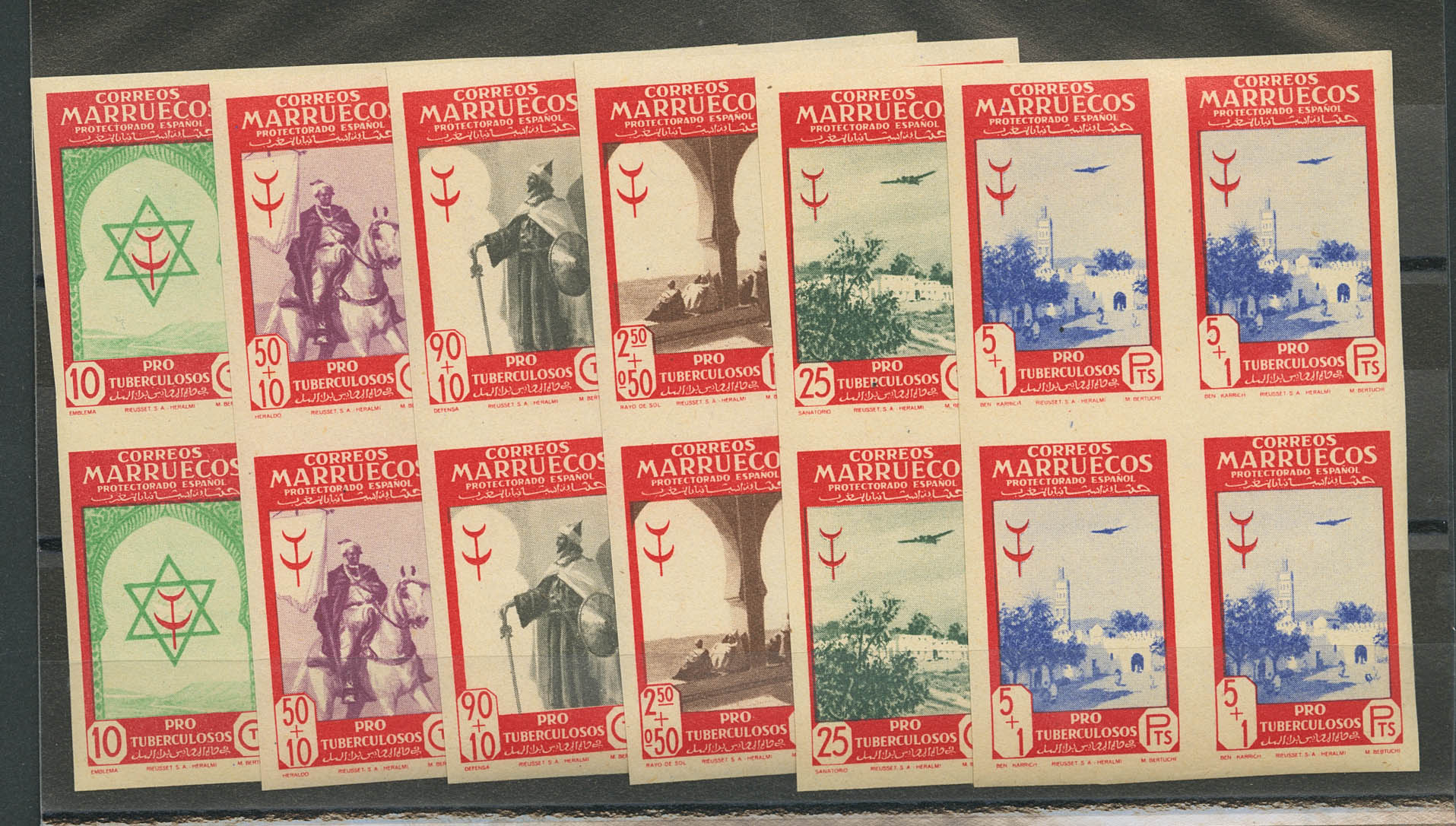 ★★ 291/96s(4). 1948. Serie completa, bloque de cuatro (conservación habitual). SIN DENTAR. BONITA. Edifil 2025: +400 Euros