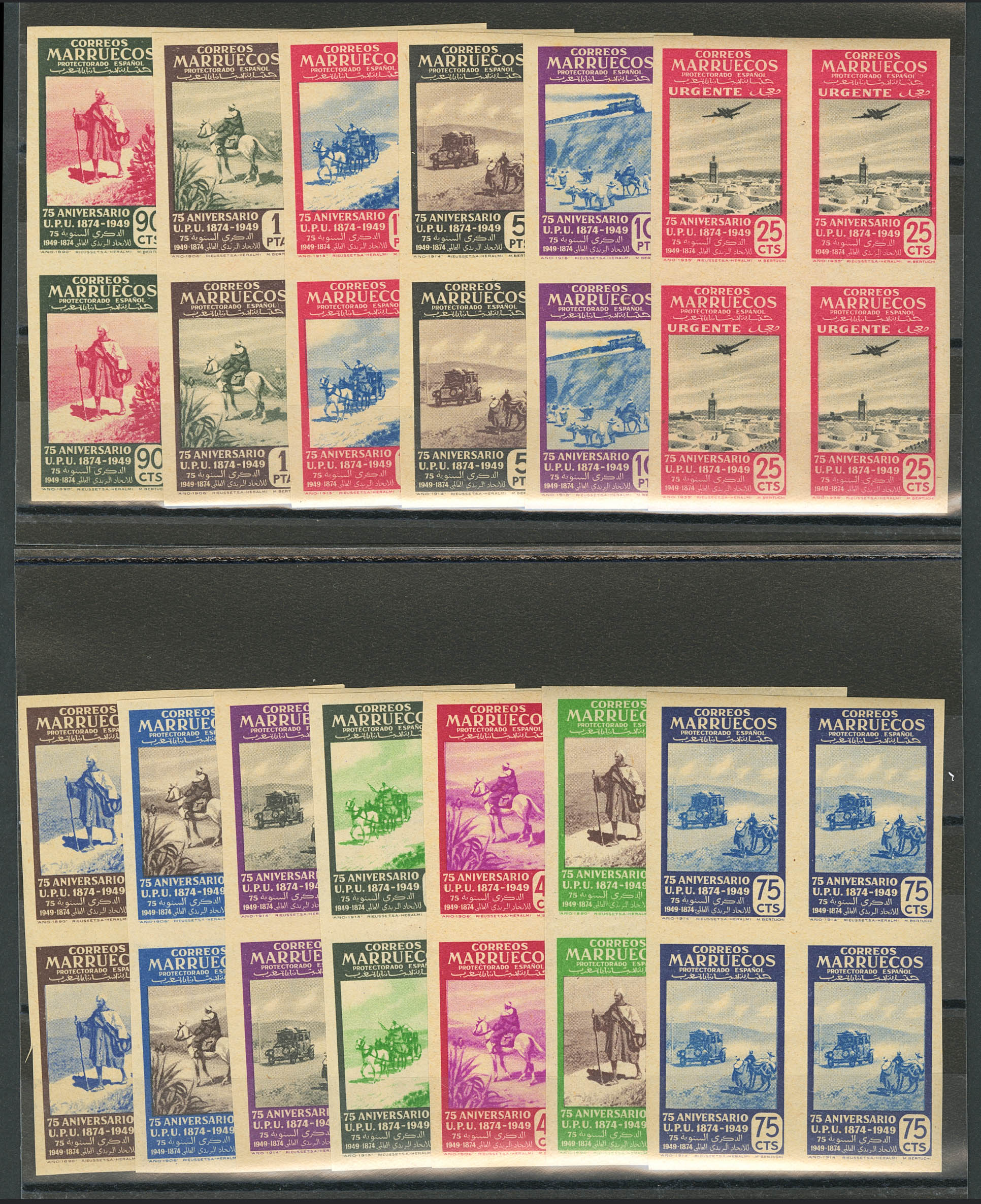 ★★ 312/24s(4). 1949. Serie completa, bloque de cuatro (10 pts conservación habitual). SIN DENTAR. BONITA Y RARISIMA. Edifil 2025: +2.500 Euros
