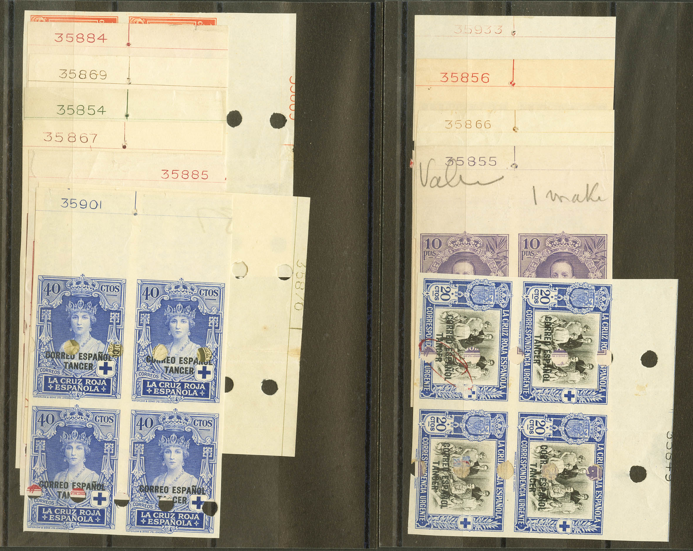 (★) 23/36MTs(4). 1926. Serie completa, en bloque de cuatro y borde de hoja. SIN DENTAR y con TALADRADOS. MAGNIFICA Y RARA. Edifil 2018: 1.380 Euros