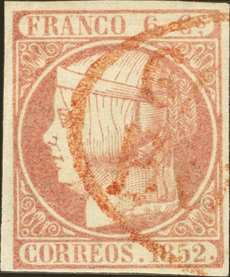 12. 1850. 6 cuartos rosa. Matasello prefilatélico GALICIA / BOIRO, en rojo. MAGNIFICO Y RARISIMO. Cert. COMEX. Ex-Alemany.