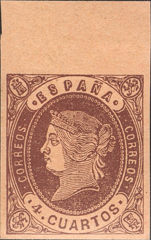 ★★ 58. 1862. 4 cuartos castaño, borde de hoja. MAGNIFICO Y ESPECTACULAR.