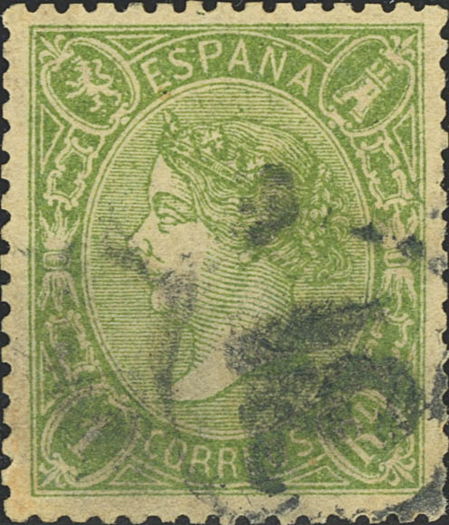 78. 1865. 1 real verde. FALSO SPERATI, al dorso firma de Jean Sperati y sin marca de la B.P.A. MAGNIFICO.