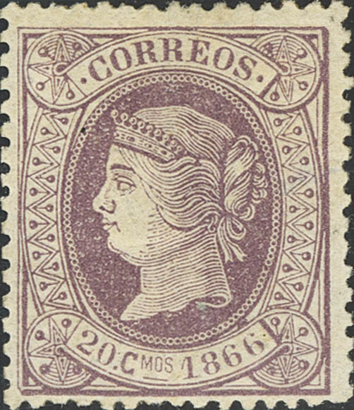 ★ 86. 1866. 20 cts lila (leve adelgazamiento). MAGNIFICO.