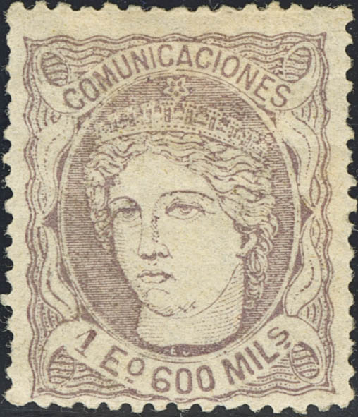 ★ 111. 1870. 1600 mils violeta (algún diente del margen inferior retocado). BONITO.
