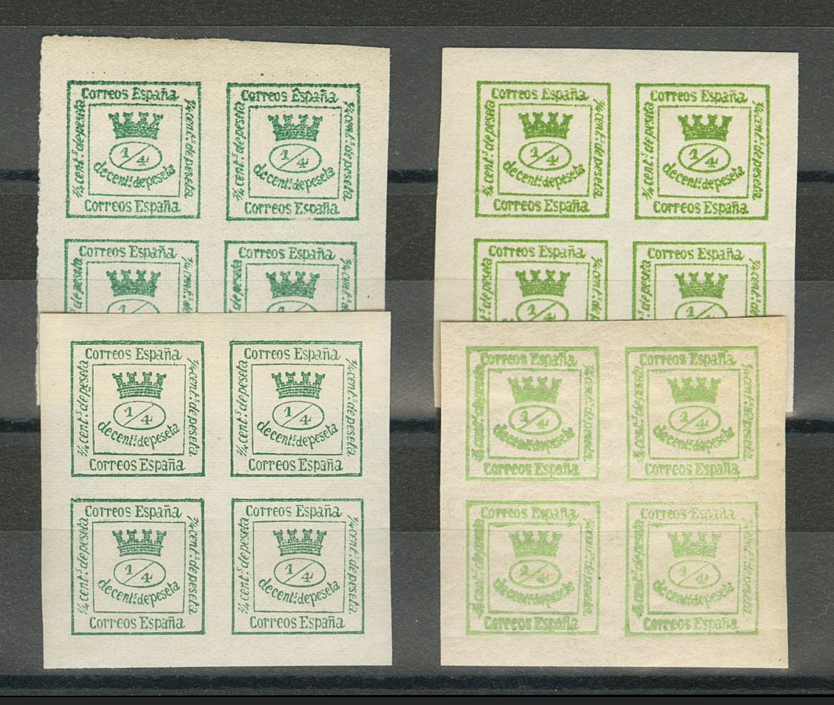★ 130(4). 1873. 4/4 cts verde, cuatro sellos con diferentes tonalidades. MAGNIFICOS E INUSUAL CONJUNTO.