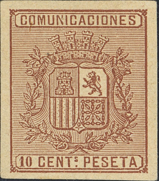 (★) 153s. 1874. 10 cts castaño. SIN DENTAR. MAGNIFICO. Edifil 2025: 117 Euros