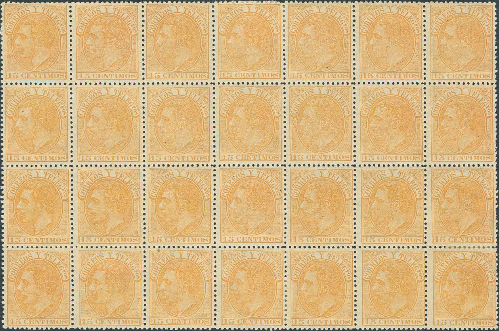 ★★/★ 210(28). 1882. 15 cts naranja, bloque de veintiocho. MAGNIFICO.
