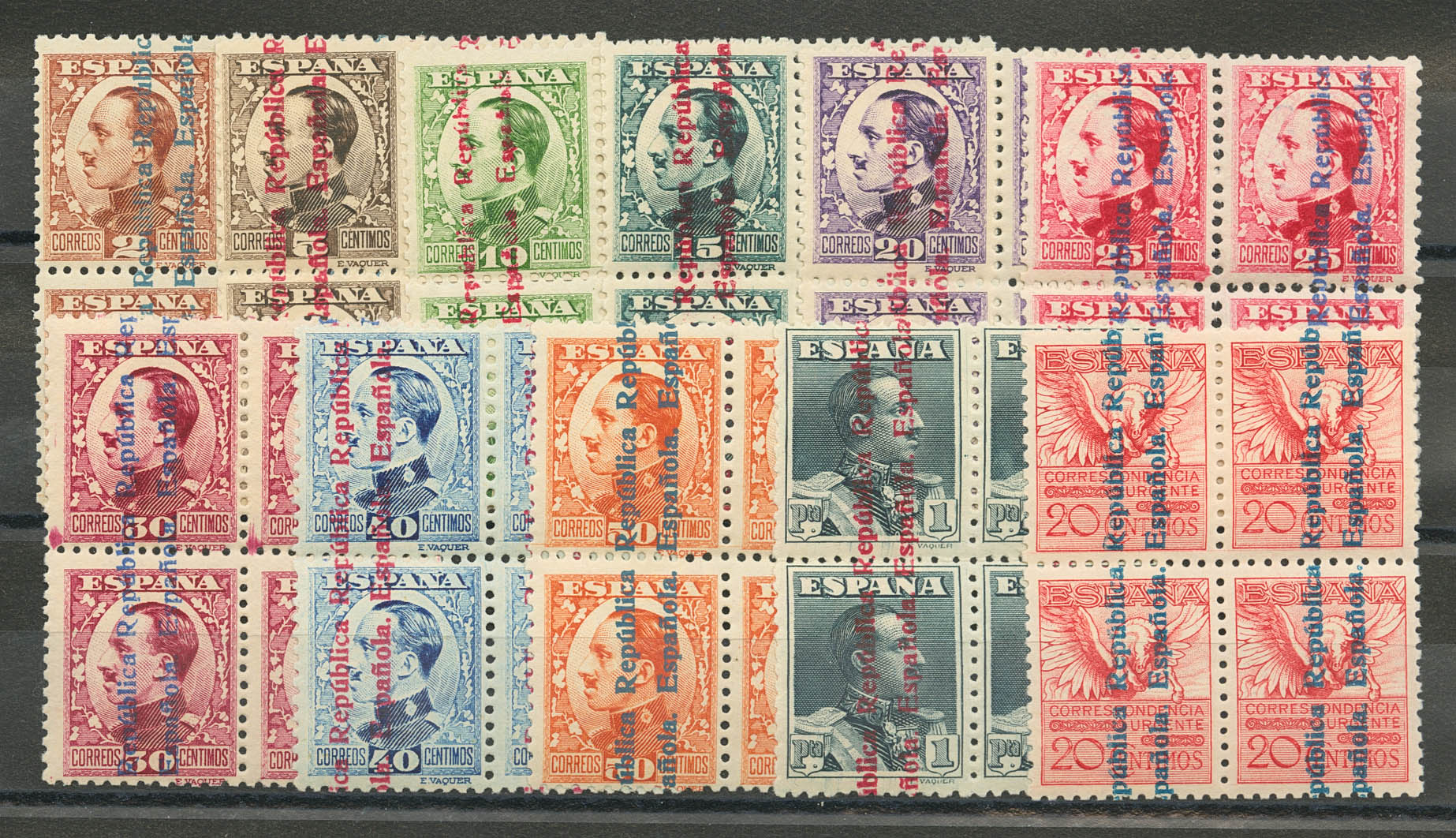 ★★ 593/03(4). 1931. Serie completa, bloque de cuatro. La mayoría de valores muy bien centrados. MAGNIFICA Y RARA. Edifil 2025: ++1.000 Euros