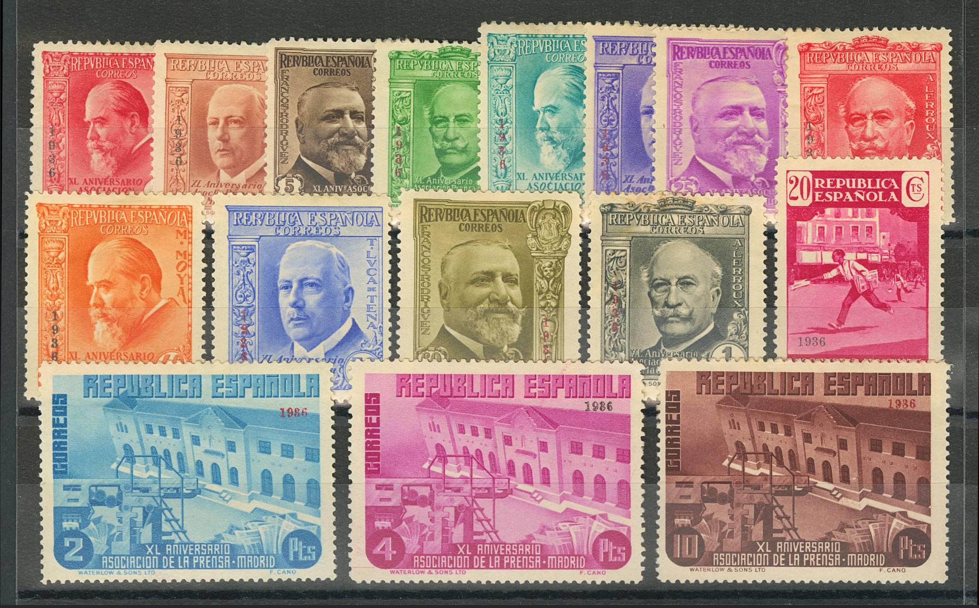 ★/(★) 695/10H. 1936. Serie completa. Sobrecarga "1936". MAGNIFICA. Edifil 2020: 184 Euros