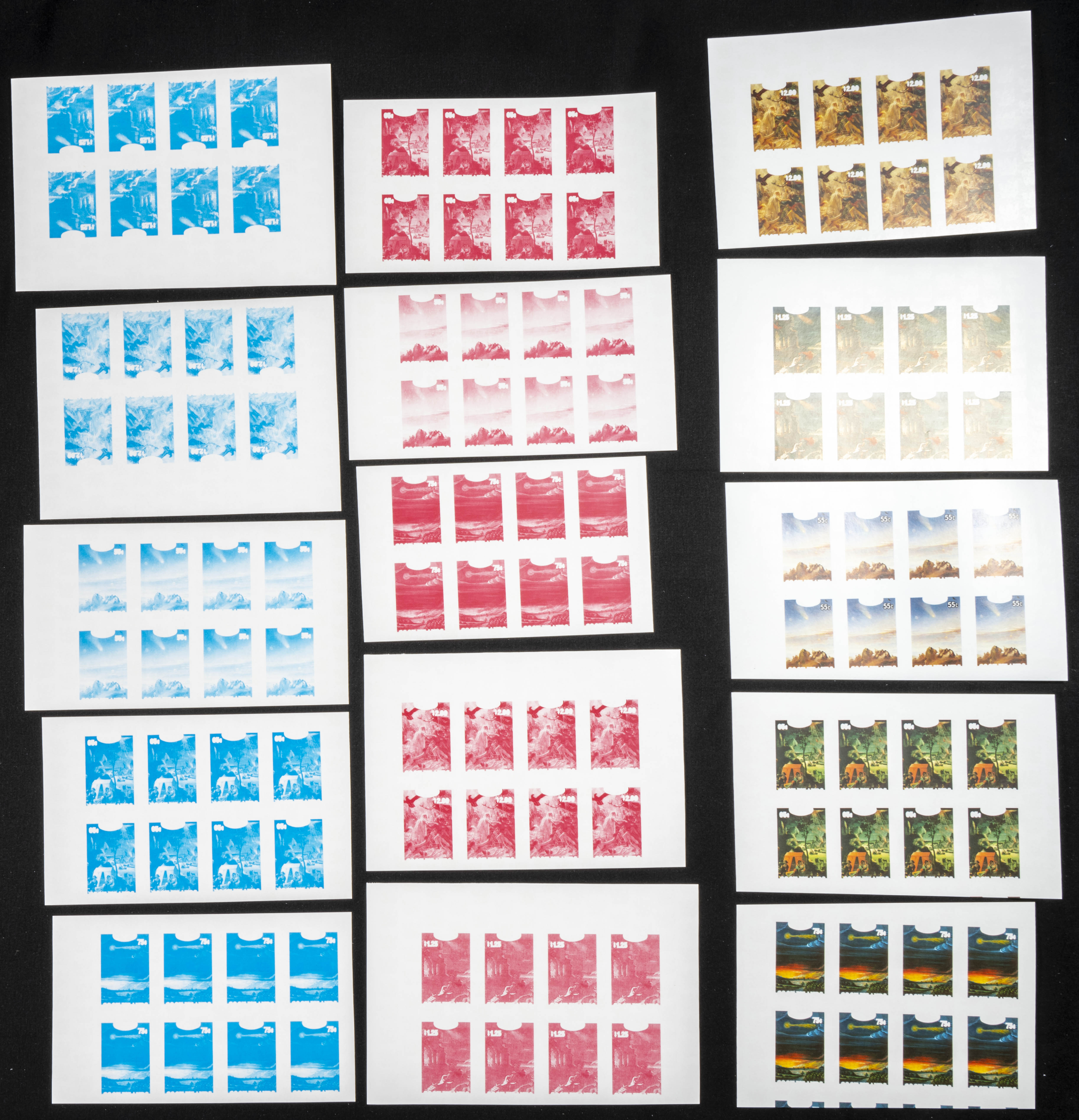 ★★Yvert 850/54. 1986. Halleys comet. Group of progressive plate proofs of the set. TO EXAM.