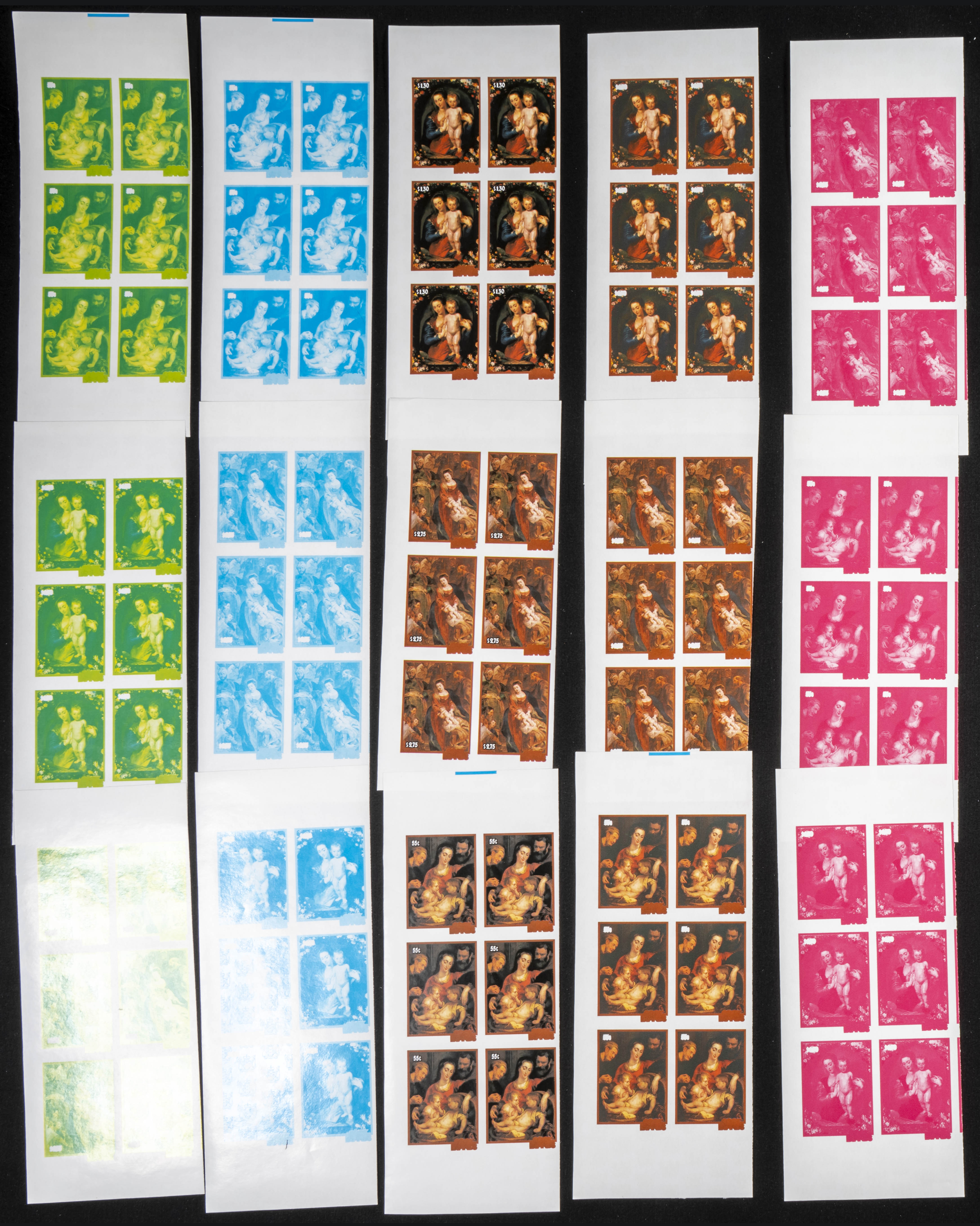 ★★Yvert 867/69. 1986. Christmas, Rubens. Group of progressive plate proofs of the set. TO EXAM.