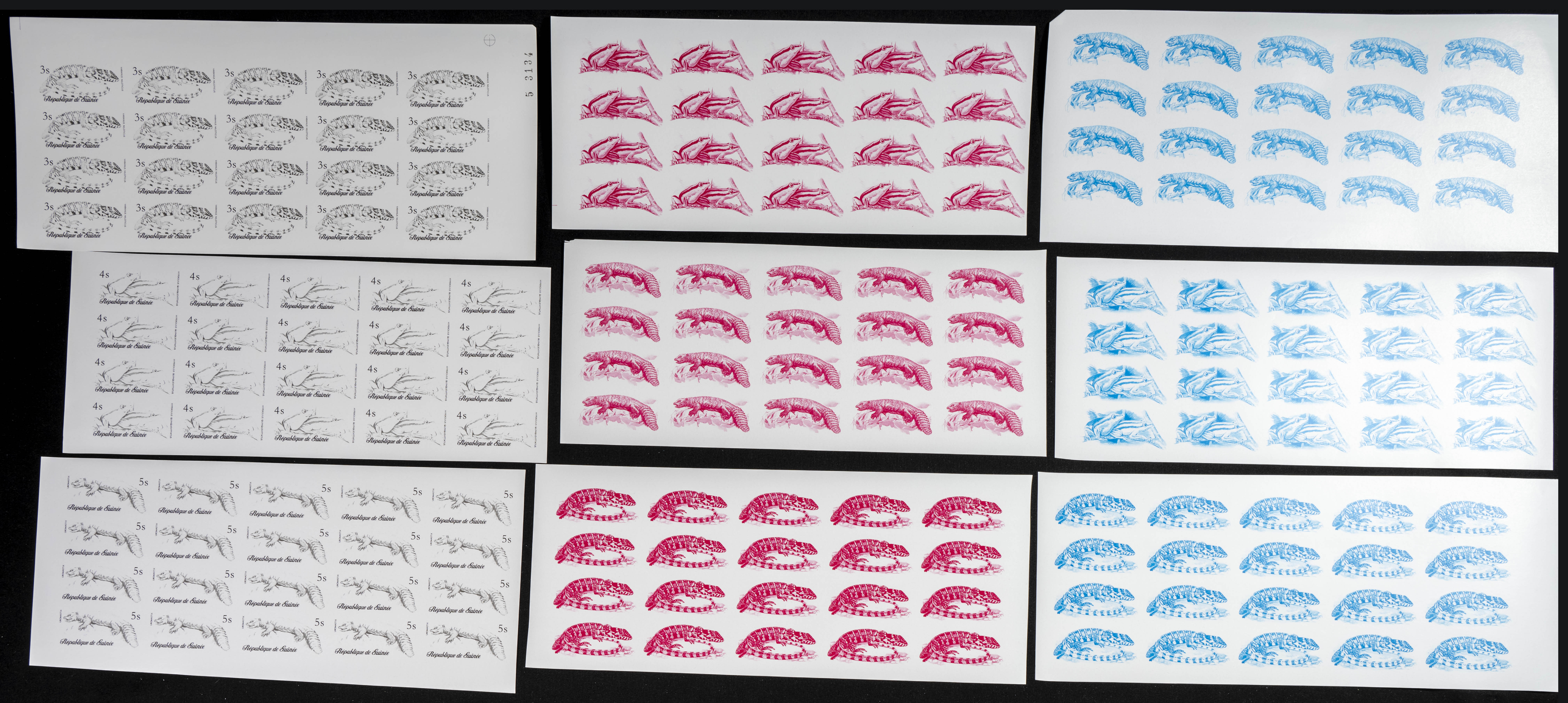 ★★Yvert 596/03. 1977. Reptiles. Group of progressive plate proofs of the set. TO EXAM.