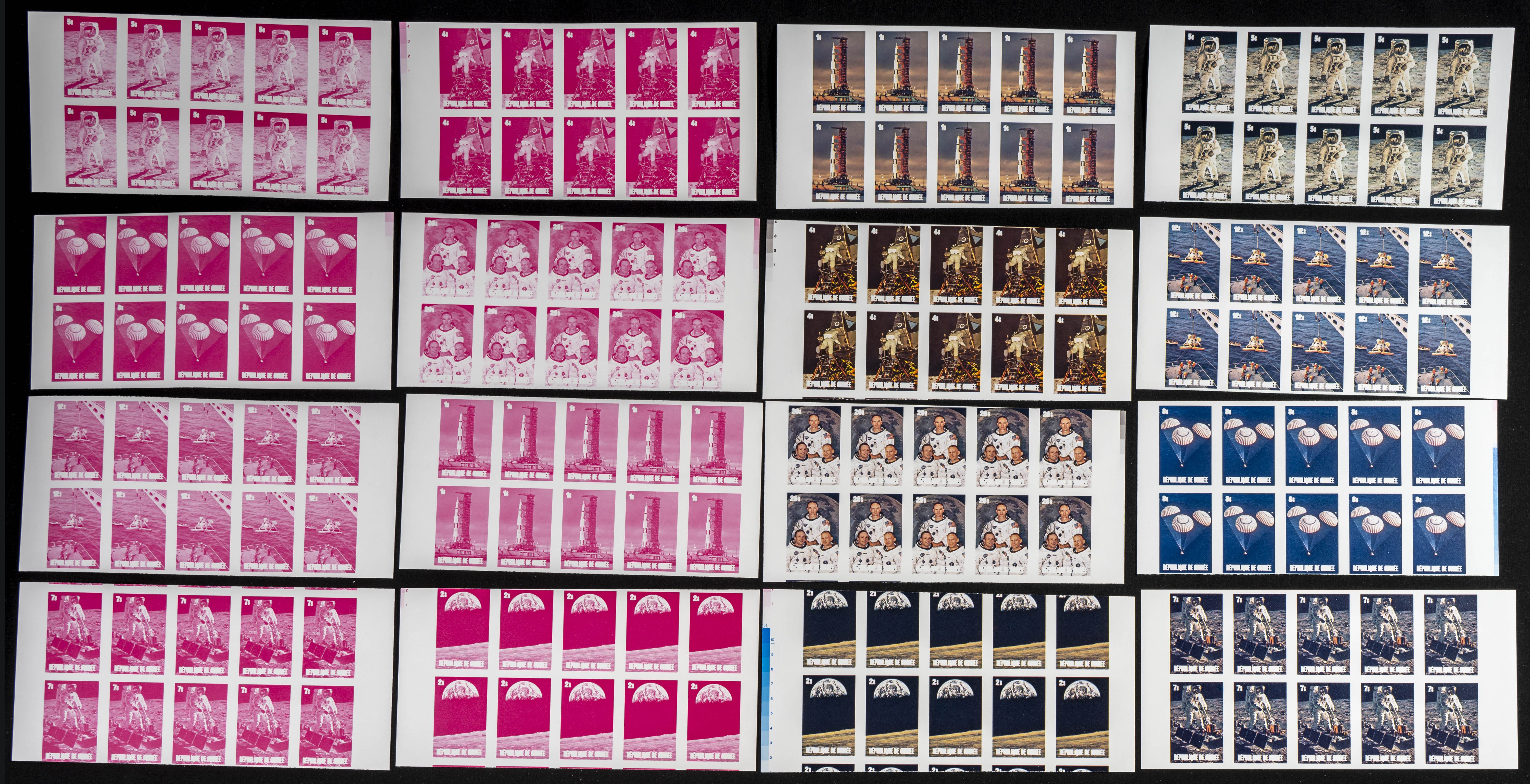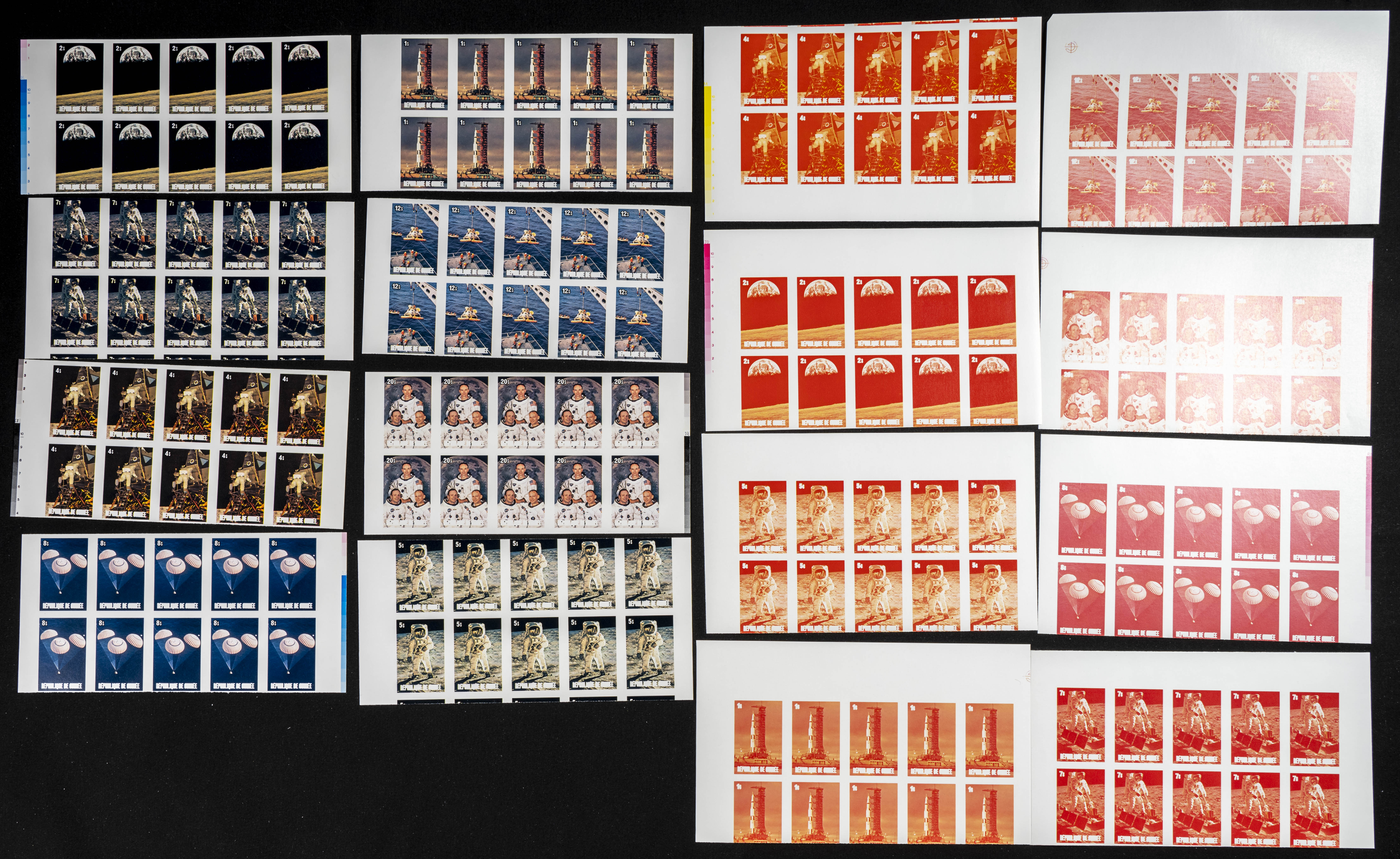 ★★Yvert 671/78. 1980. Moonlanding anniversary. Group of progressive plate proofs of the set. TO EXAM.