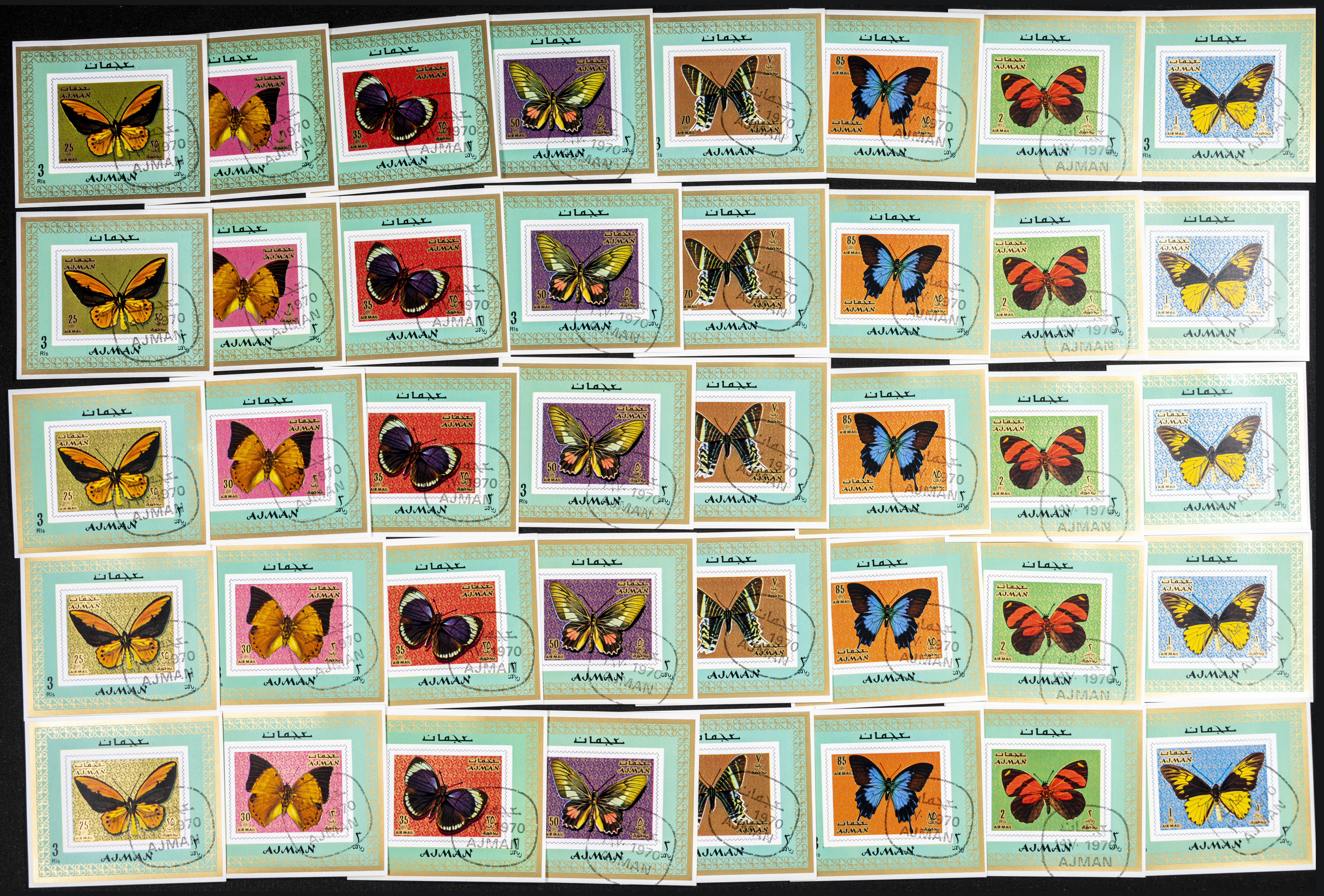 . 1971. Butterflies. Group of complete set IMPERFORATED on individual sheets. (Michel: 747/54). TO EXAM.