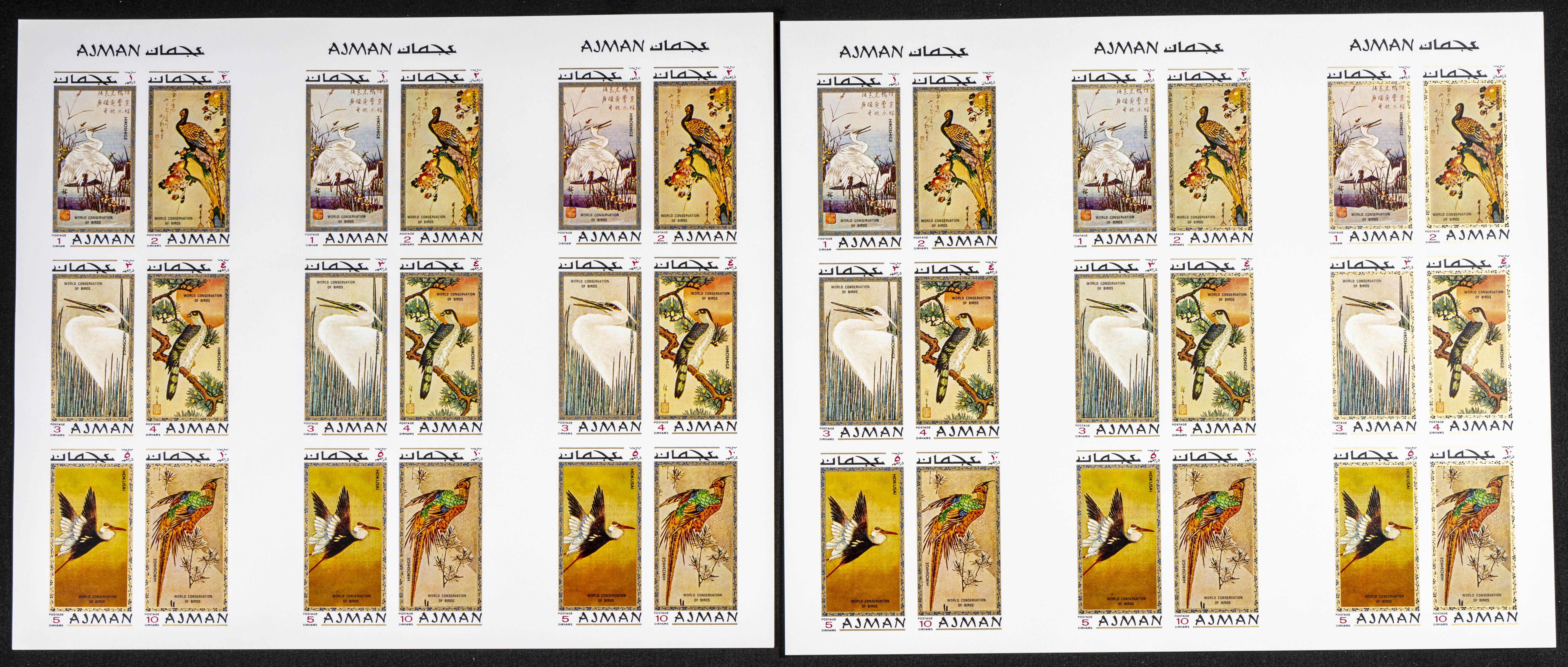 ★★ . 1971. Exotic birds, paintings. Group of IMPERFORATED sets. (Michel: 809/16). TO EXAM.