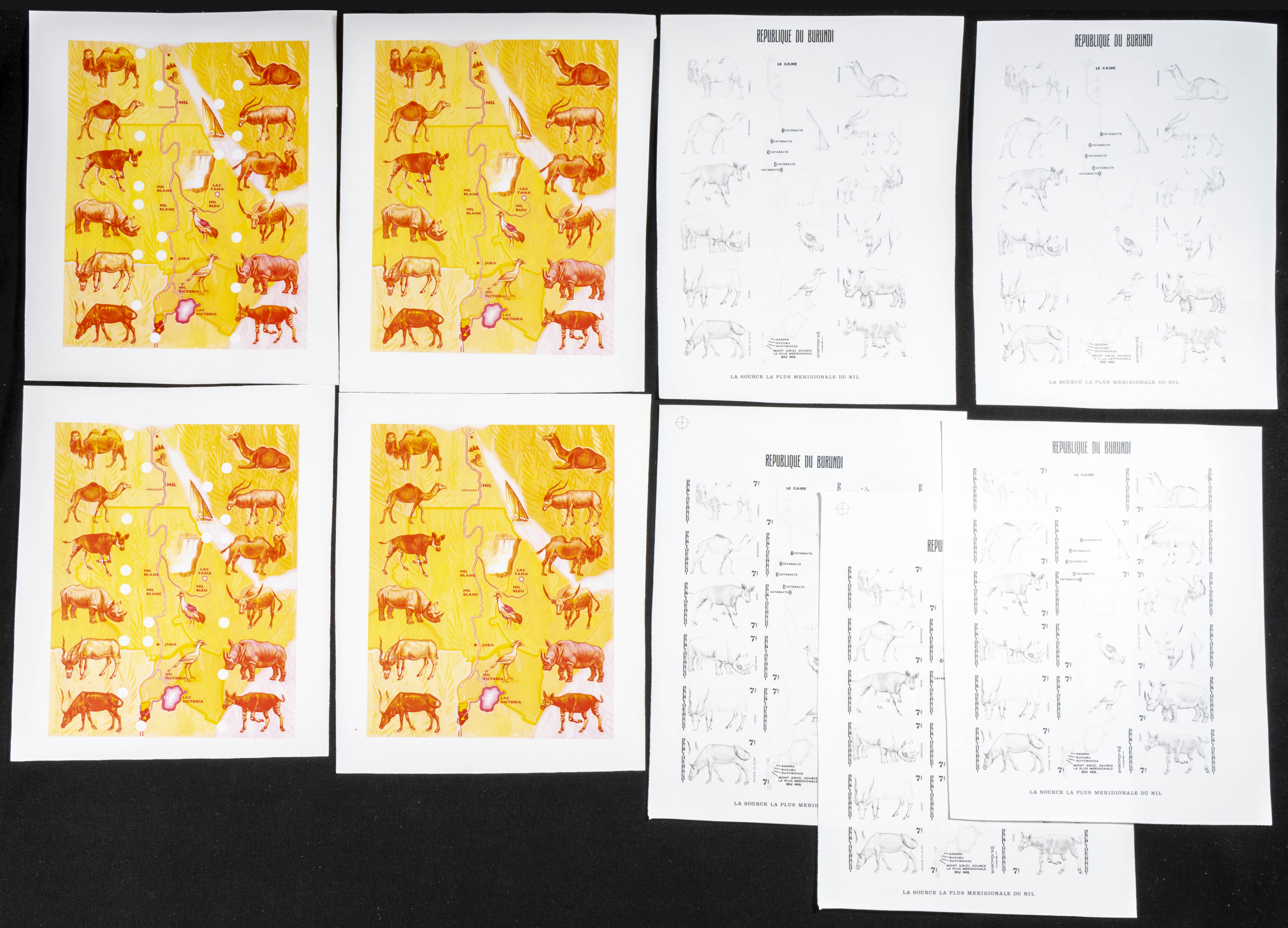 ★★Yvert 377/94. 1970. Nile delta fauna. Group of progressive plate proofs of the set. TO EXAM.