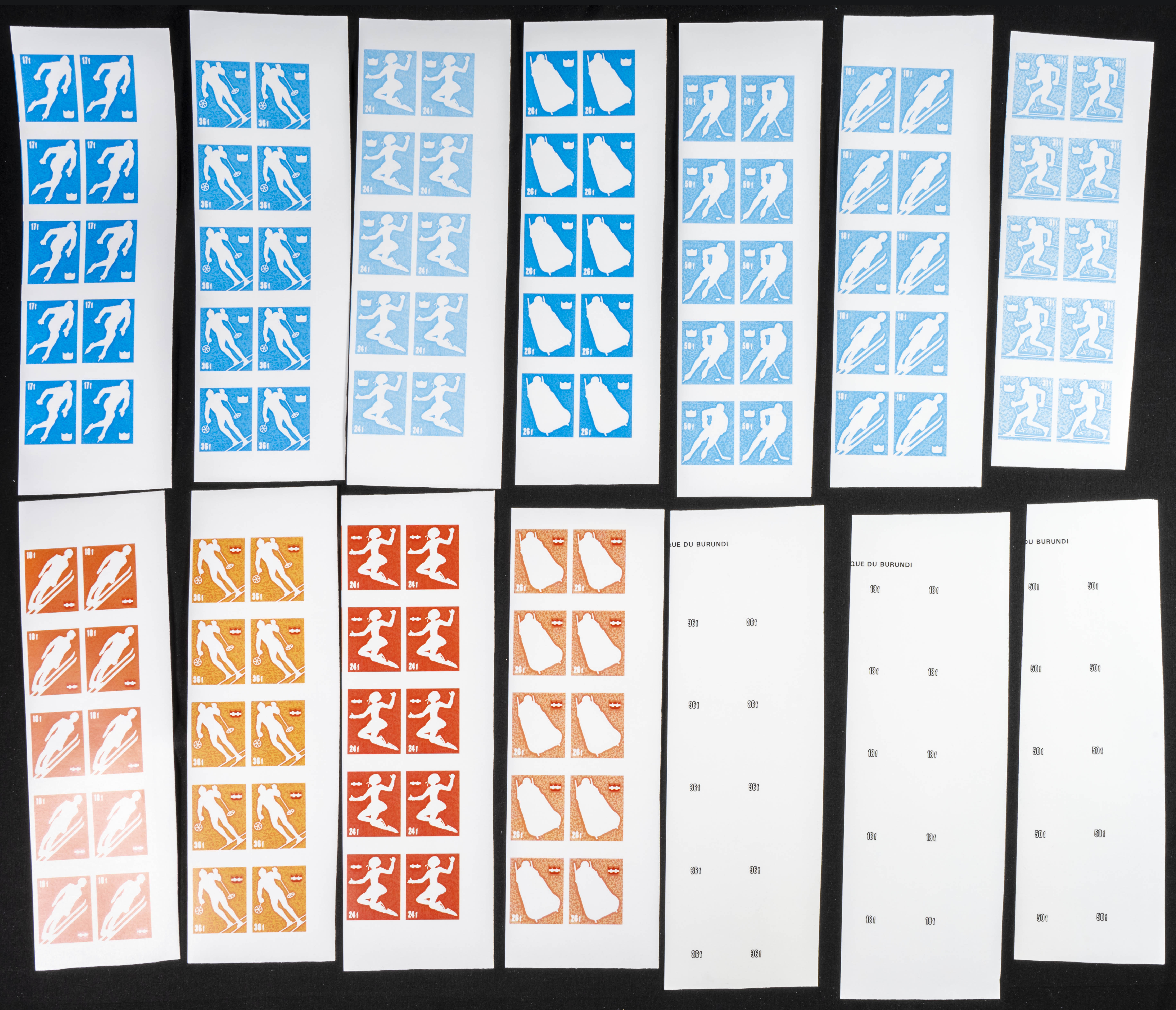 ★★Yvert A420/22. 1976. Olympic Winter Games-Insbruc æ76. Group of progressive plate proofs of the set. TO EXAM.