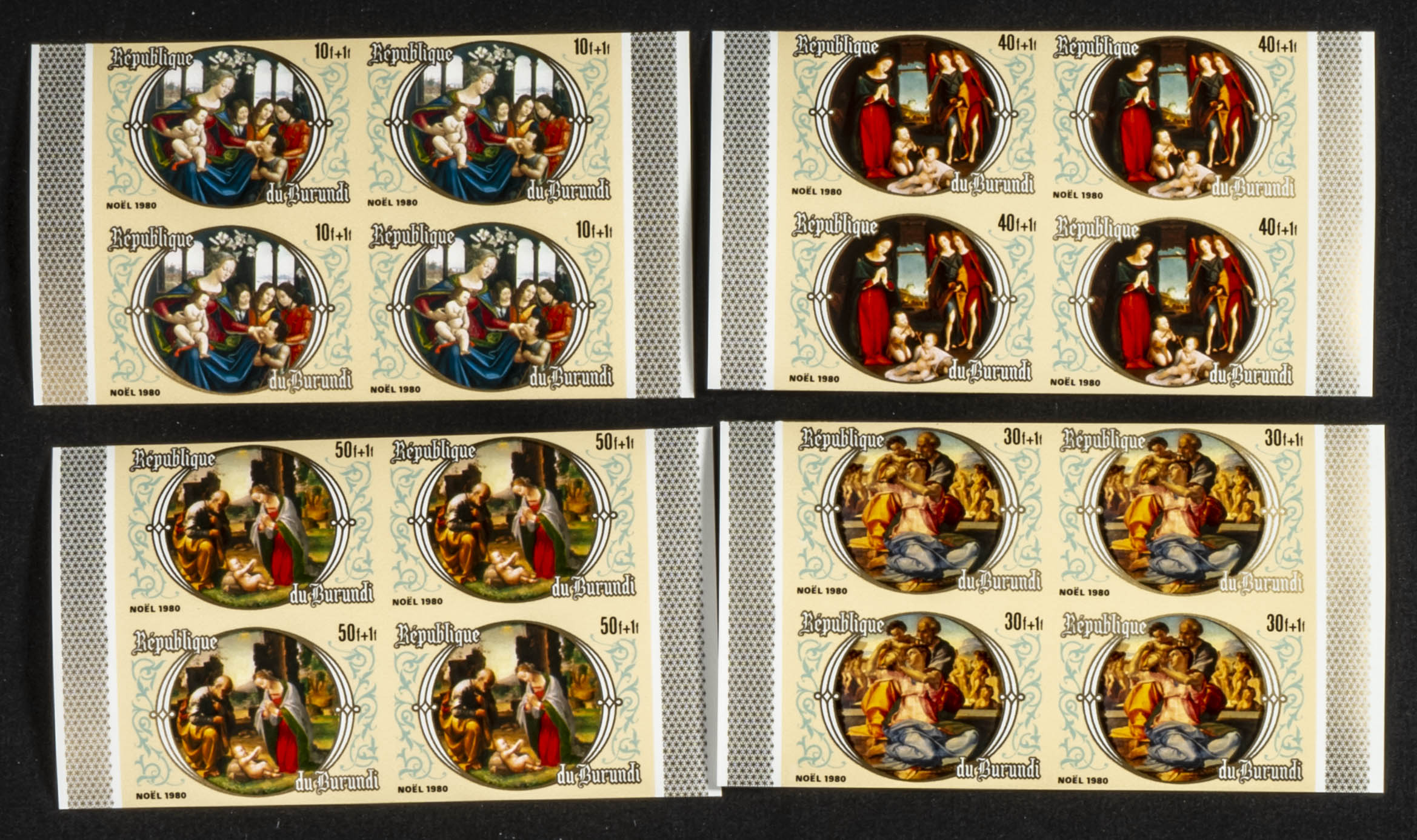 ★★Yvert 844/47. 1981. Christmas (1980). Group of IMPERFORATED sets. TO EXAM.