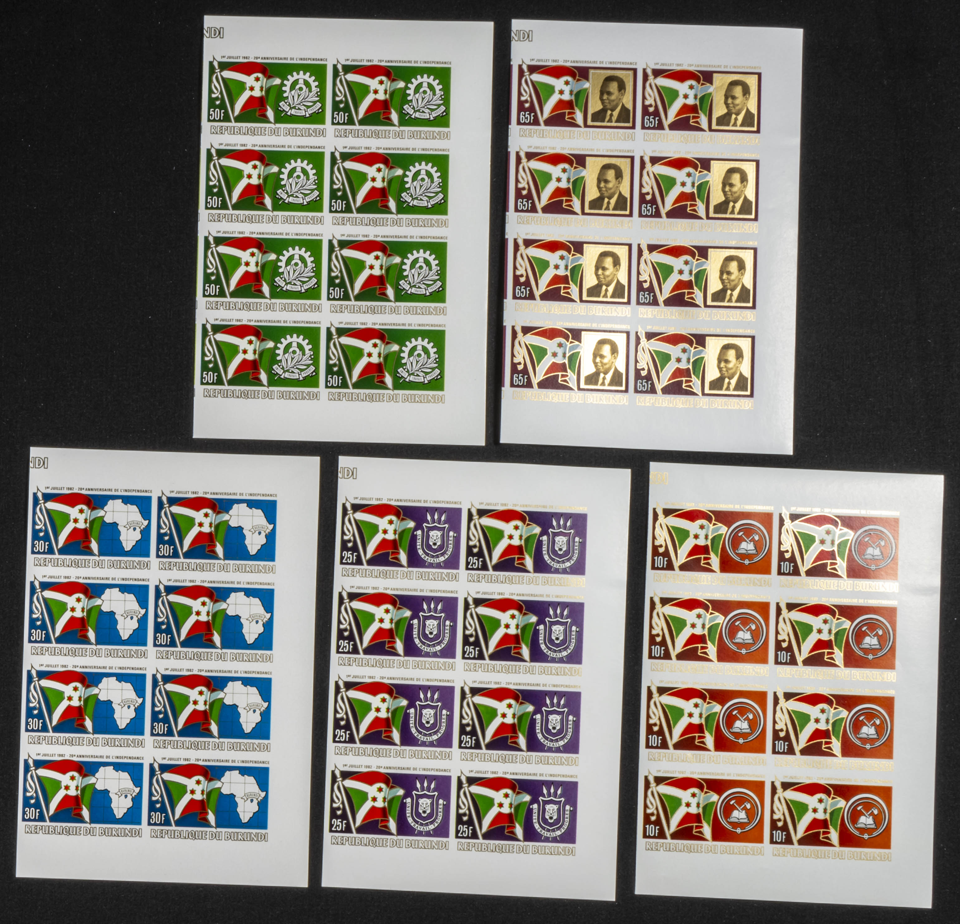★★Yvert 877/81. 1982. 20º aniv independance. Group of IMPERFORATED sets. TO EXAM.