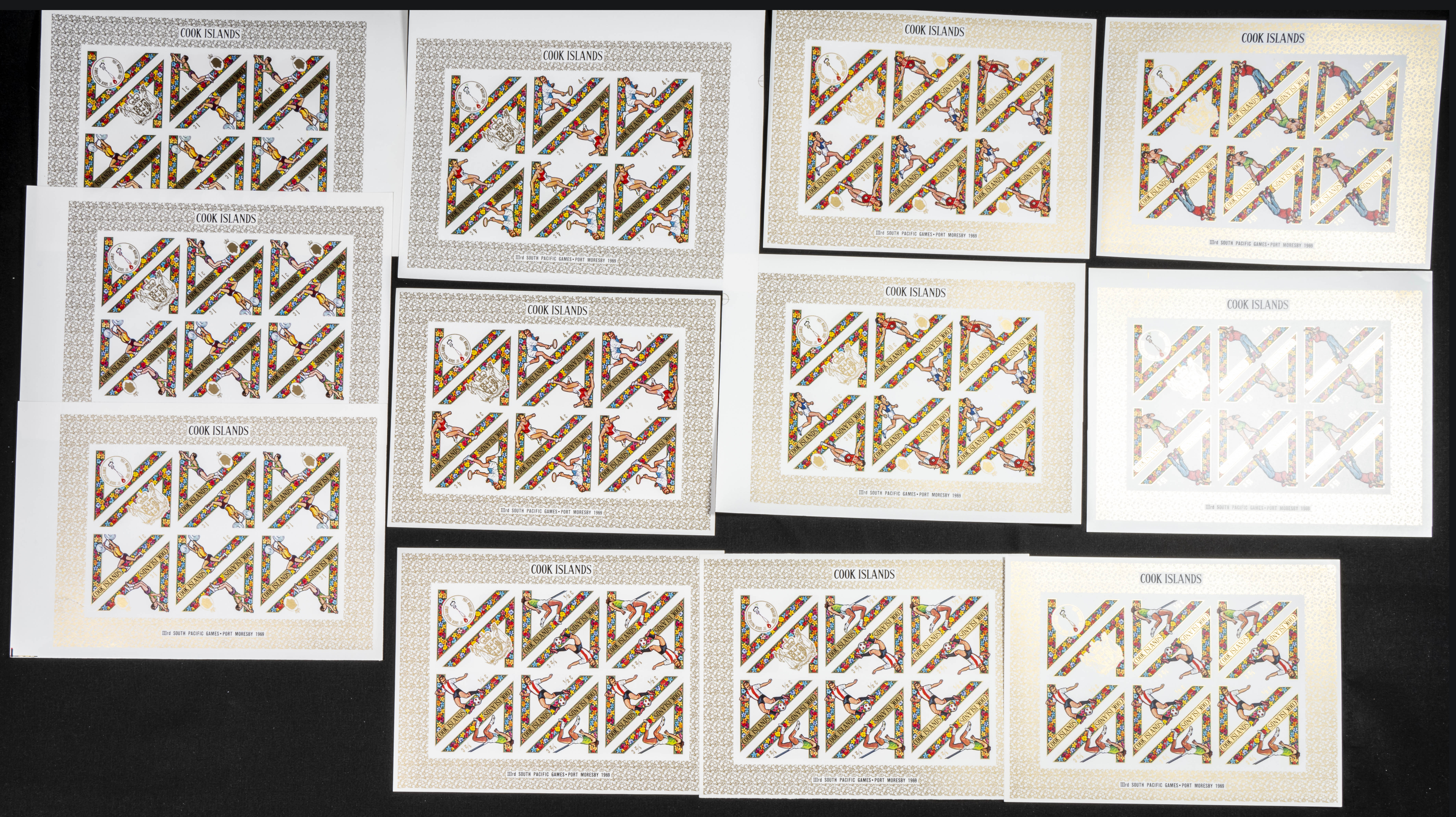 ★★Yvert 203/12. 1969. South Pacific games. Group of IMPERFORATED sets. TO EXAM.