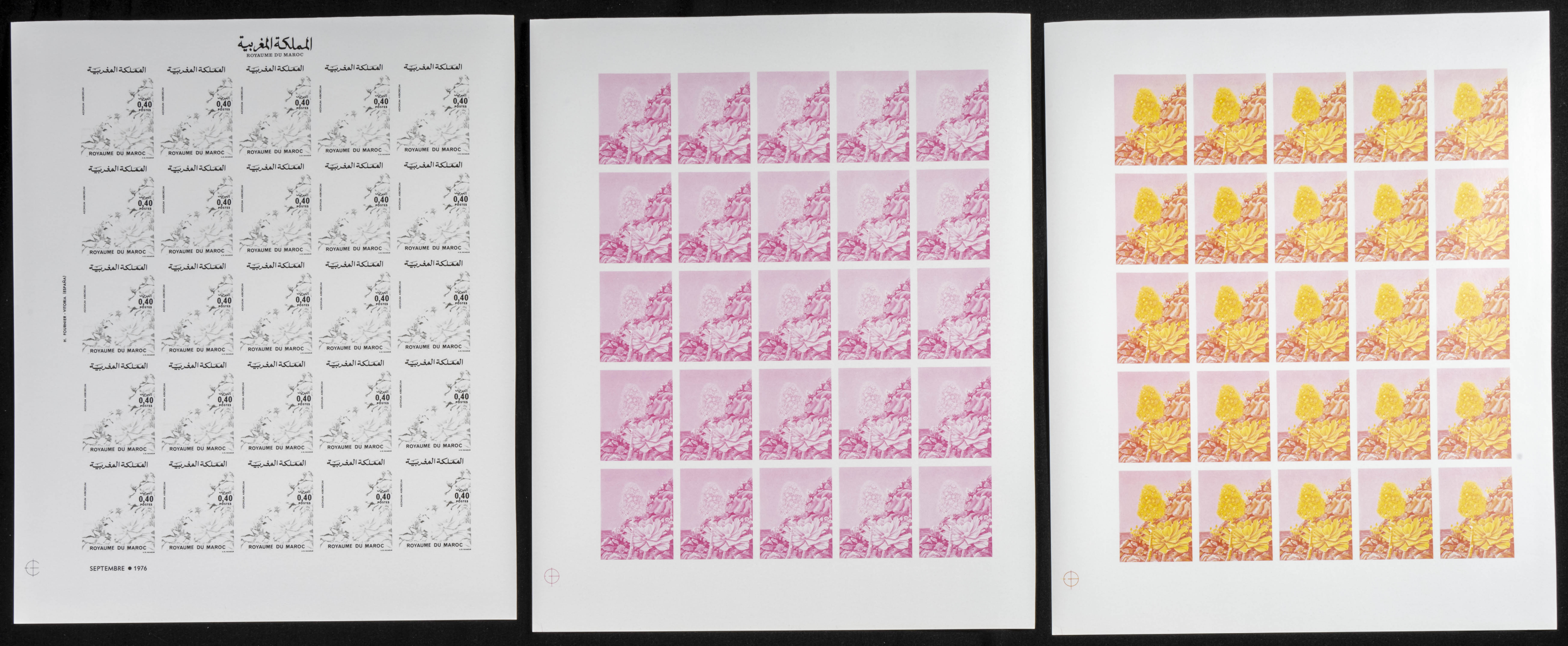 ★★Yvert 785/87. 1977. Flowers. Group of progressive plate proofs of the set. TO EXAM.