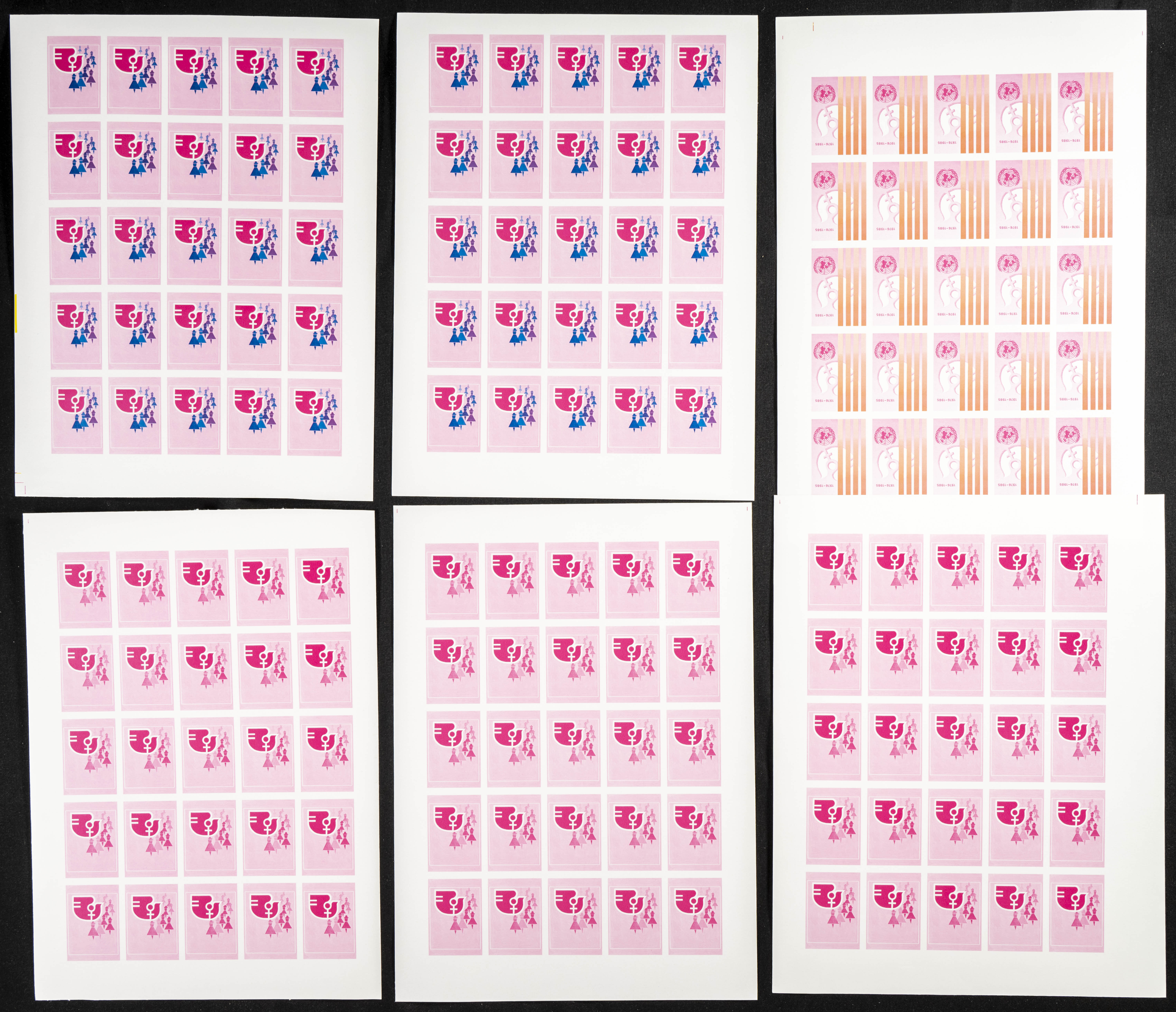 ★★Yvert 856/57. 1980. U.N.O. woman decade. Group of progressive plate proofs of the set. TO EXAM.