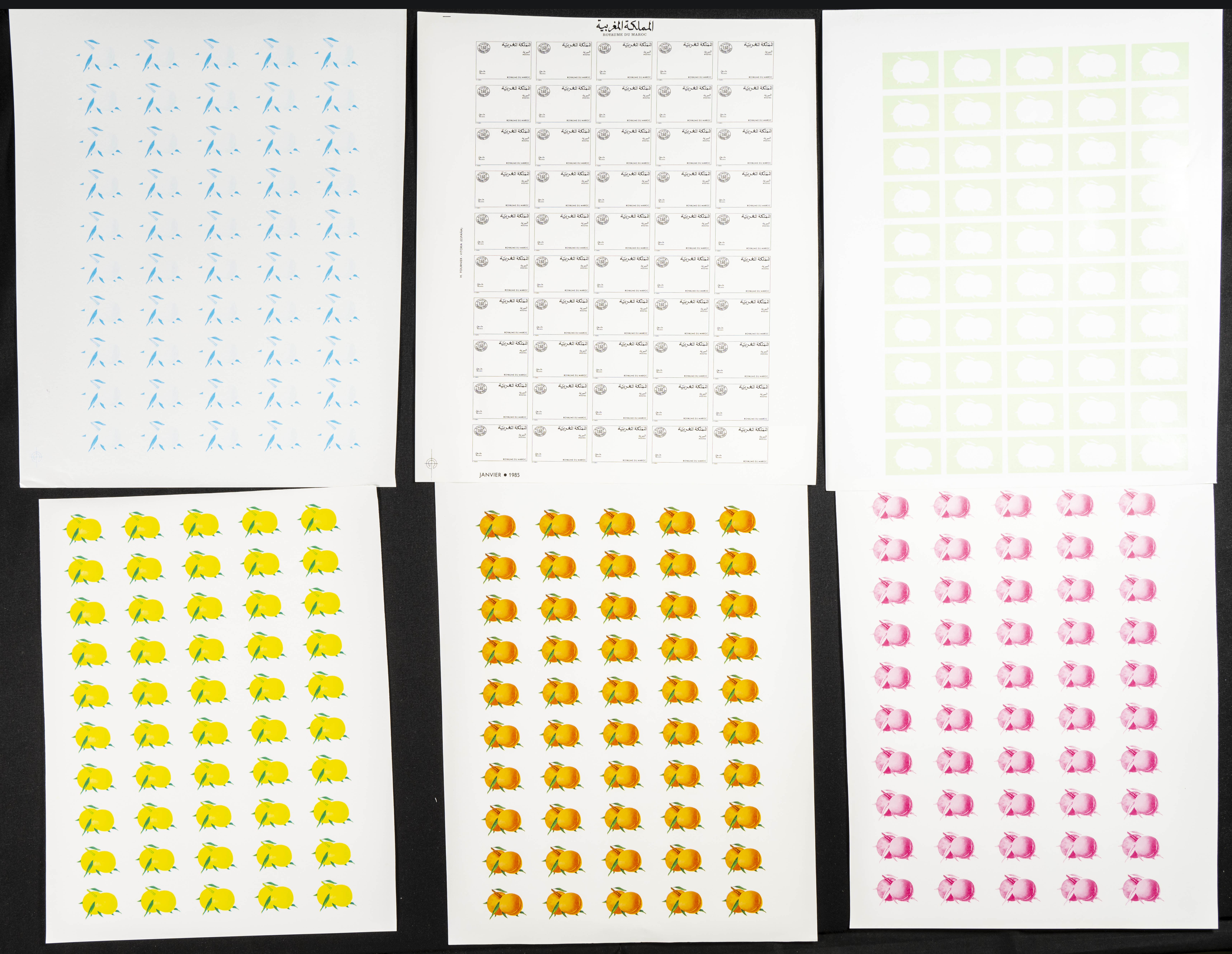 ★★Yvert T68. 1985. Postage due, fruits. Group of progressive plate proofs of the set. TO EXAM.